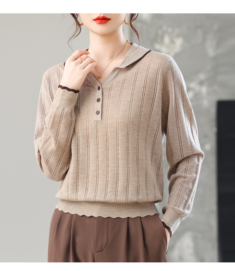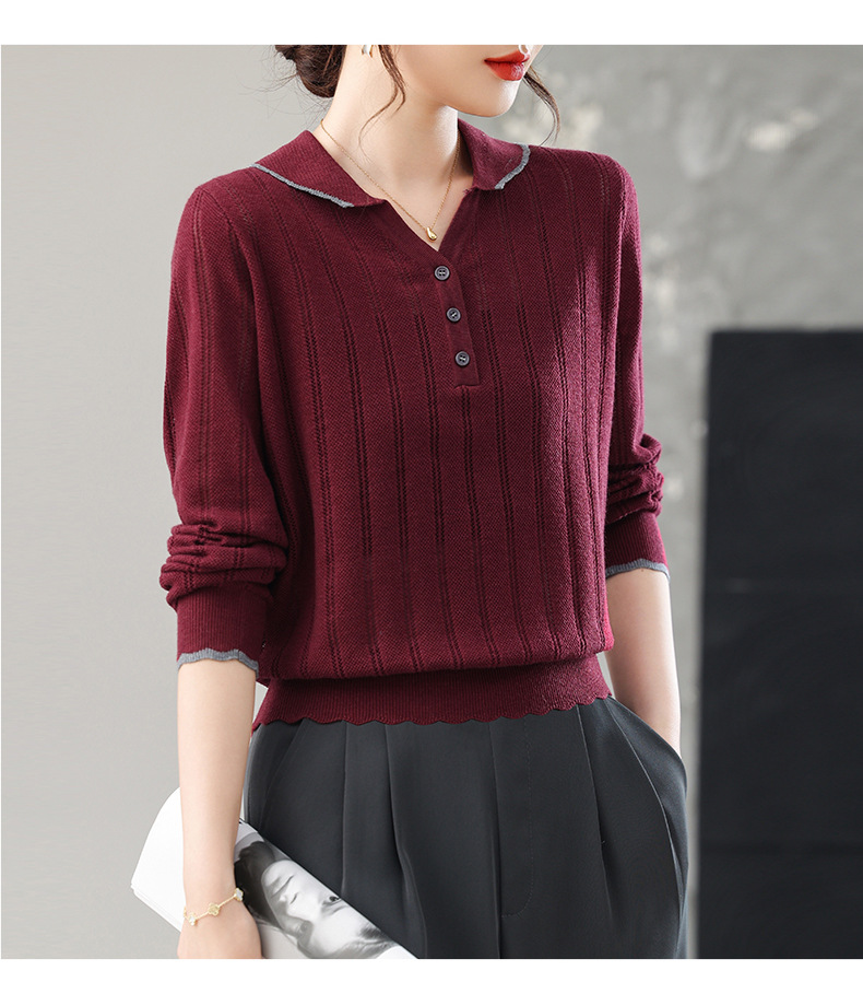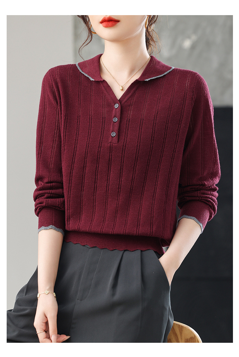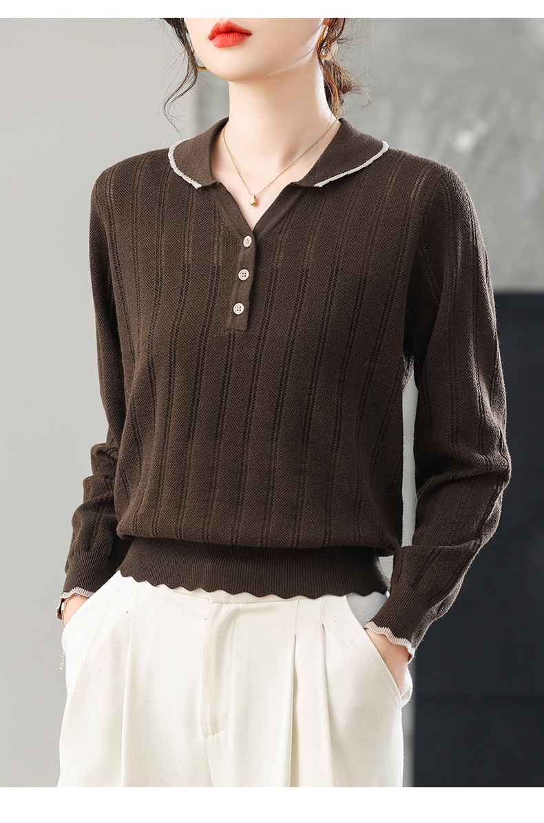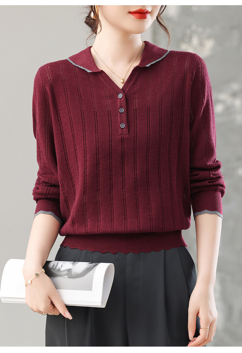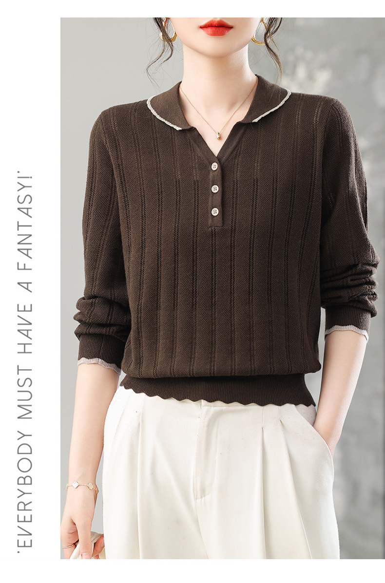 CC早秋薄款镂空针织衫polo领上衣秋装2025新款女装洋气打底毛衣