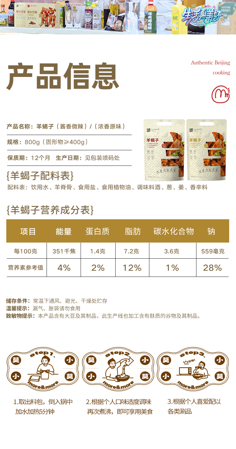 LD 莫小小莫 羊蝎子原汤火锅 加热即食 方便火锅 酱香微辣