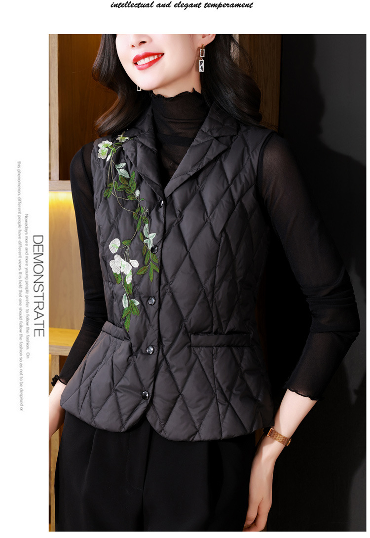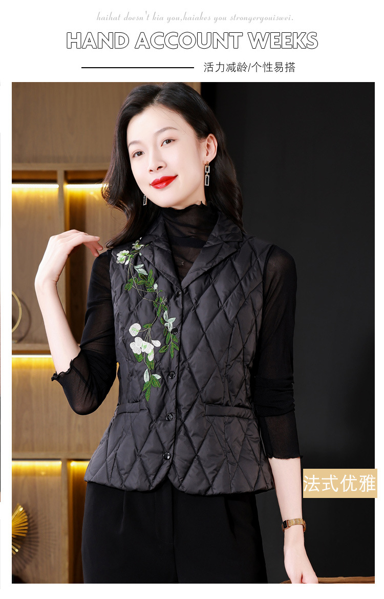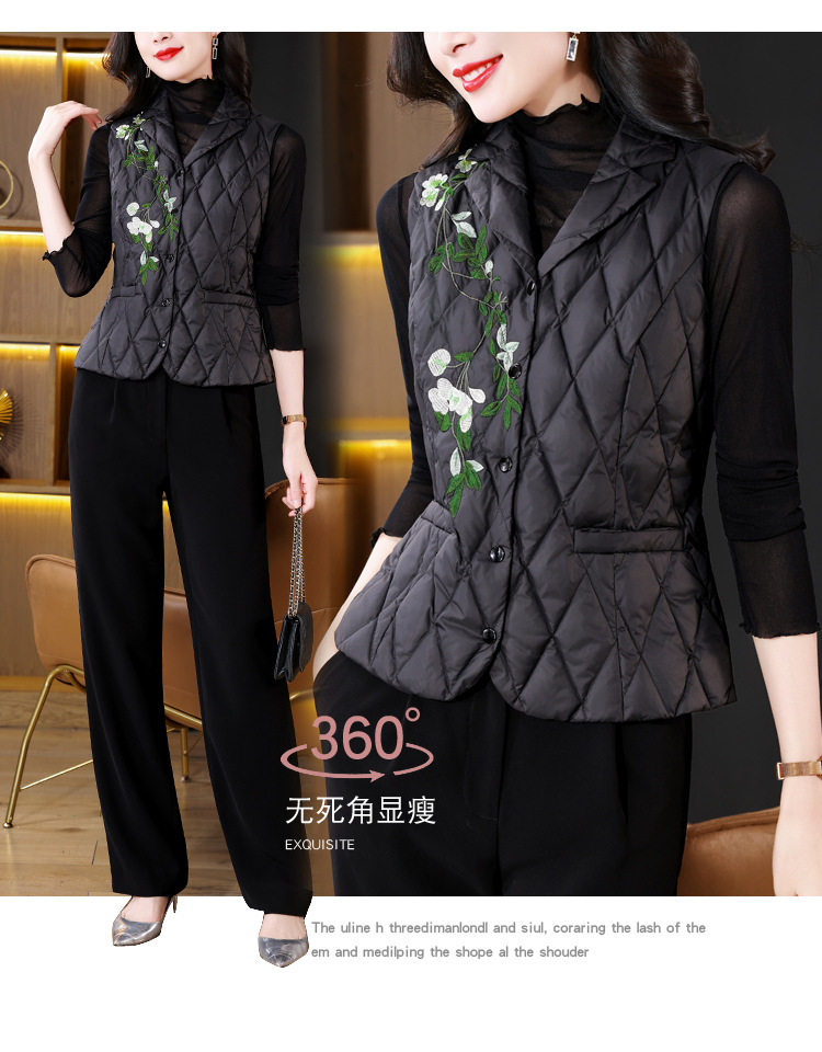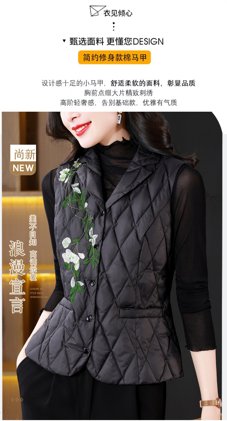 KQLB43N1659 2025秋冬重工刺绣西装领棉服马甲外套女气质修身打底棉马夹
