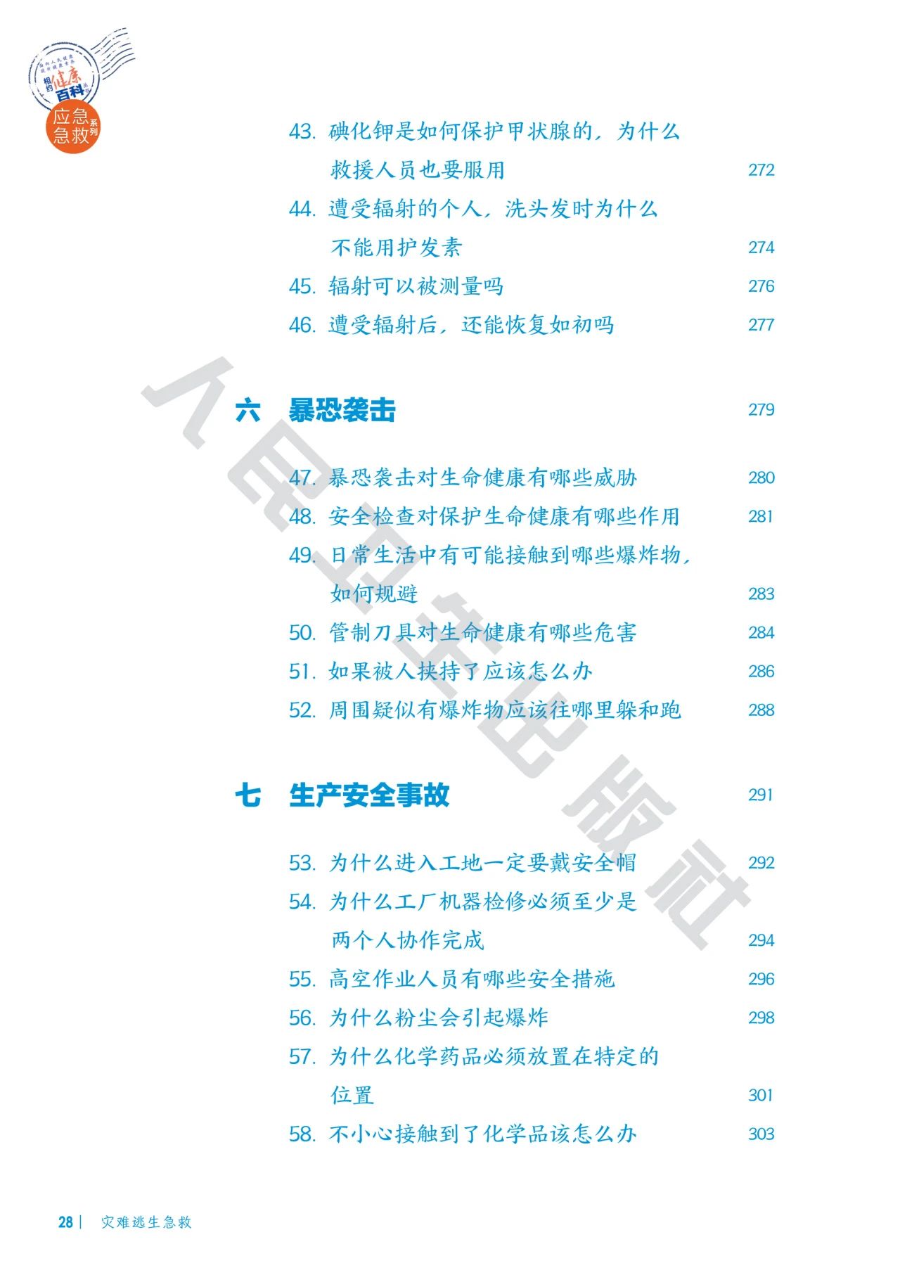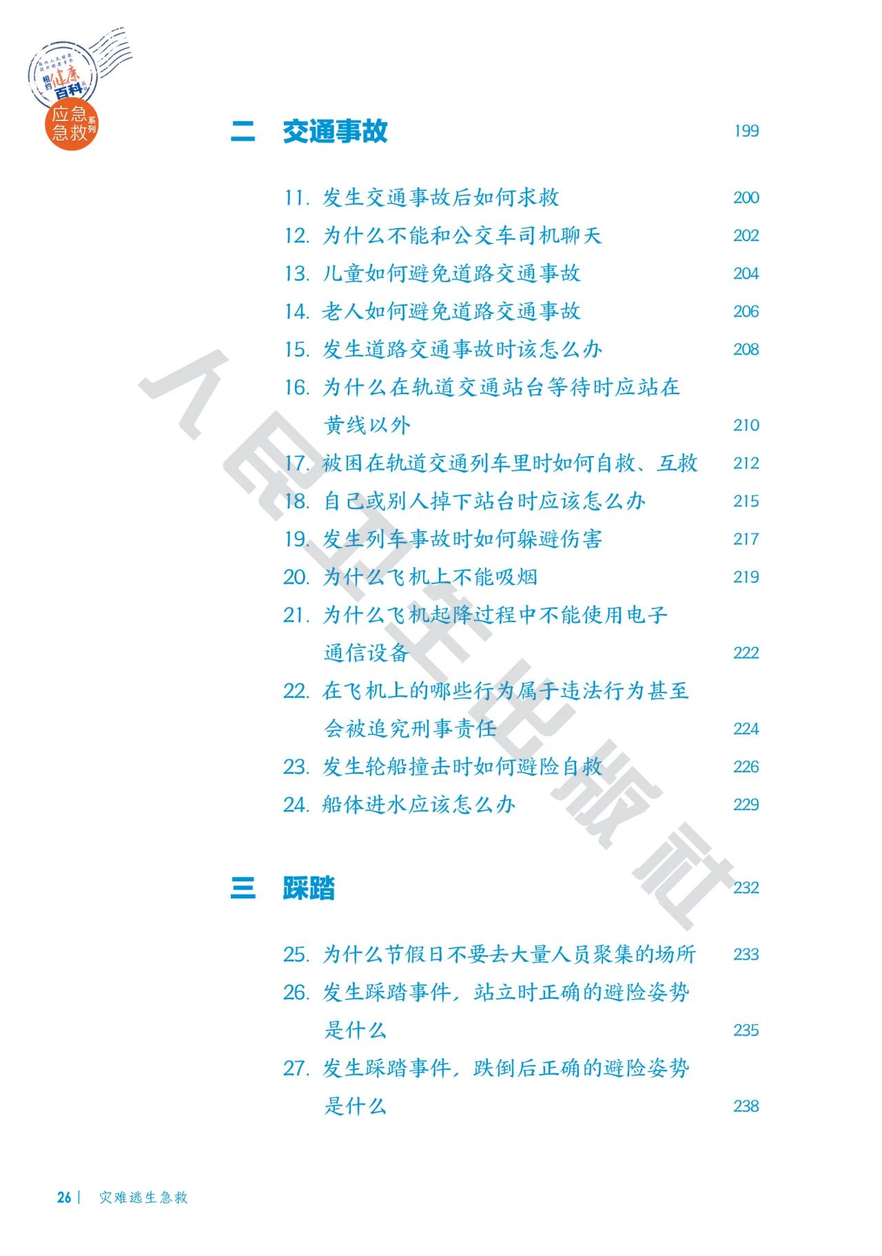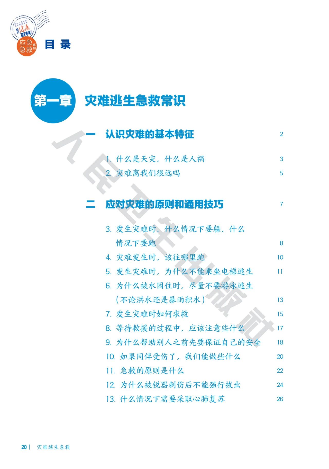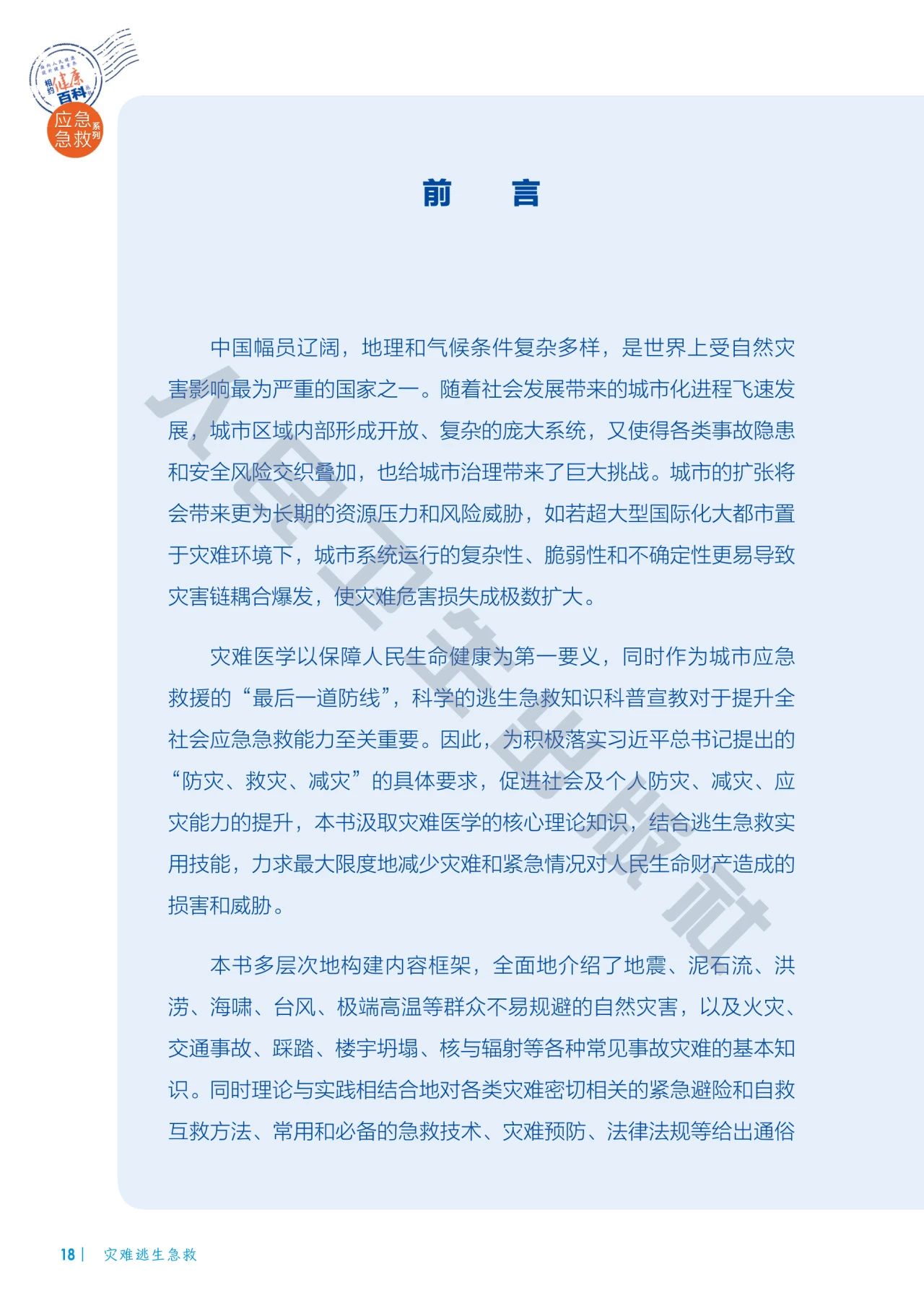 。第一章为灾难逃生急救常识,介绍应对灾难的原则