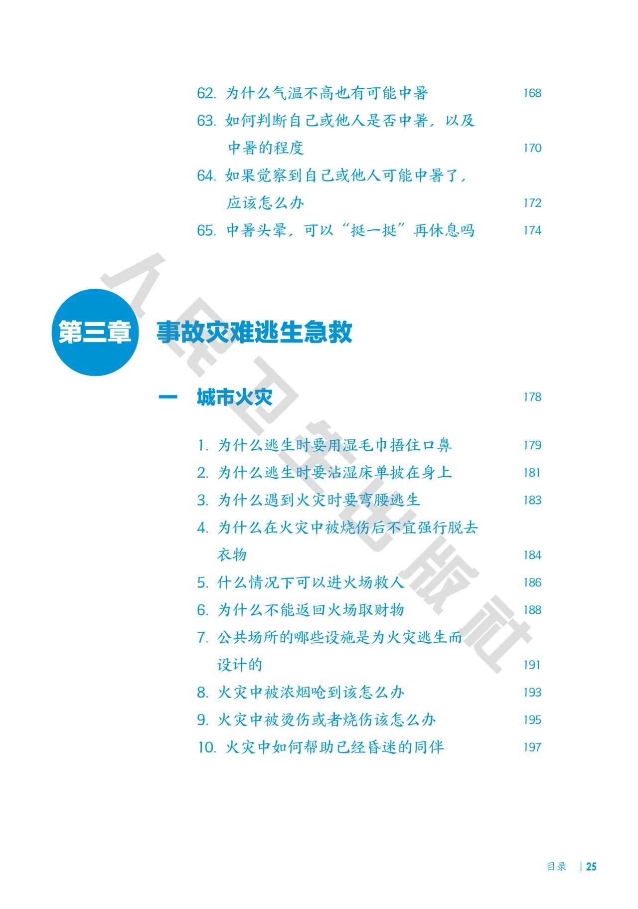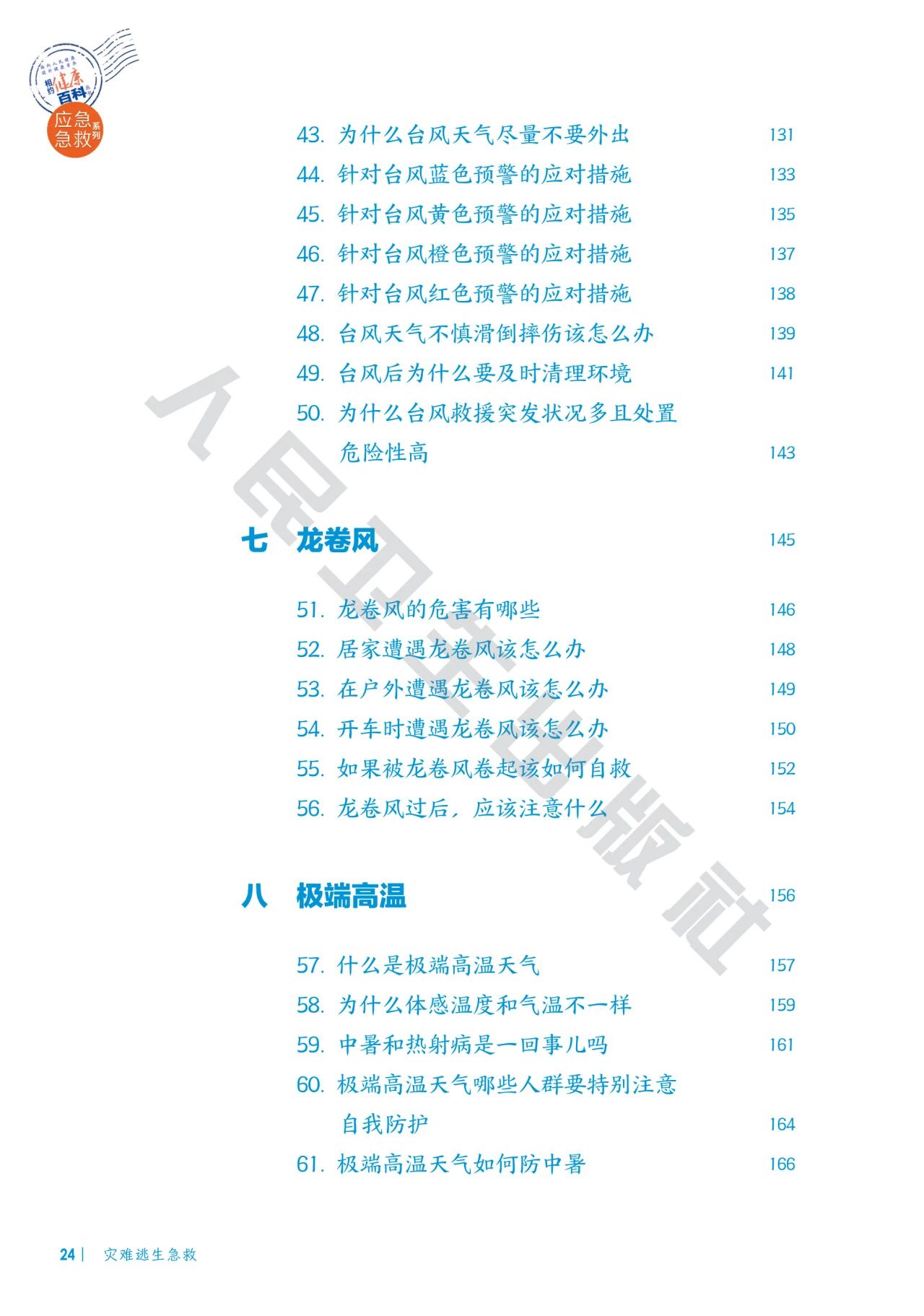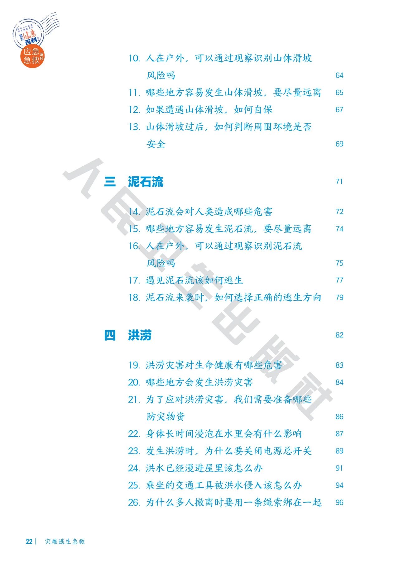 。第一章为灾难逃生急救常识,介绍应对灾难的原则