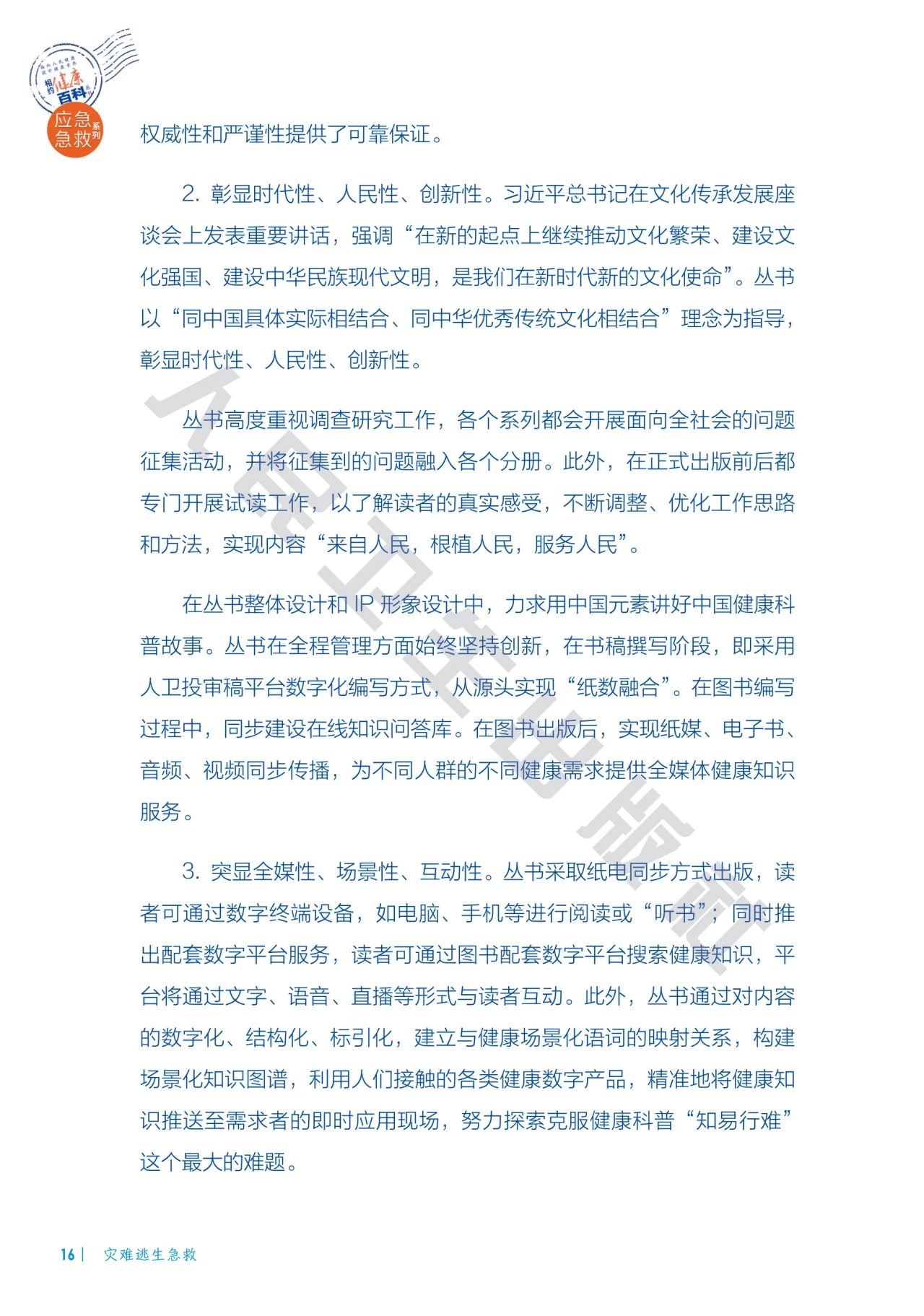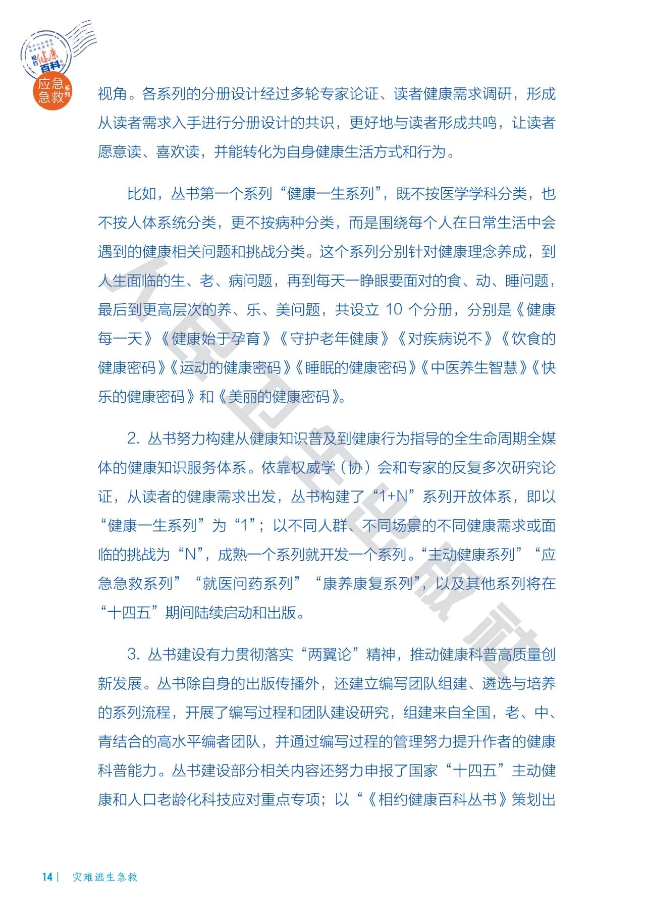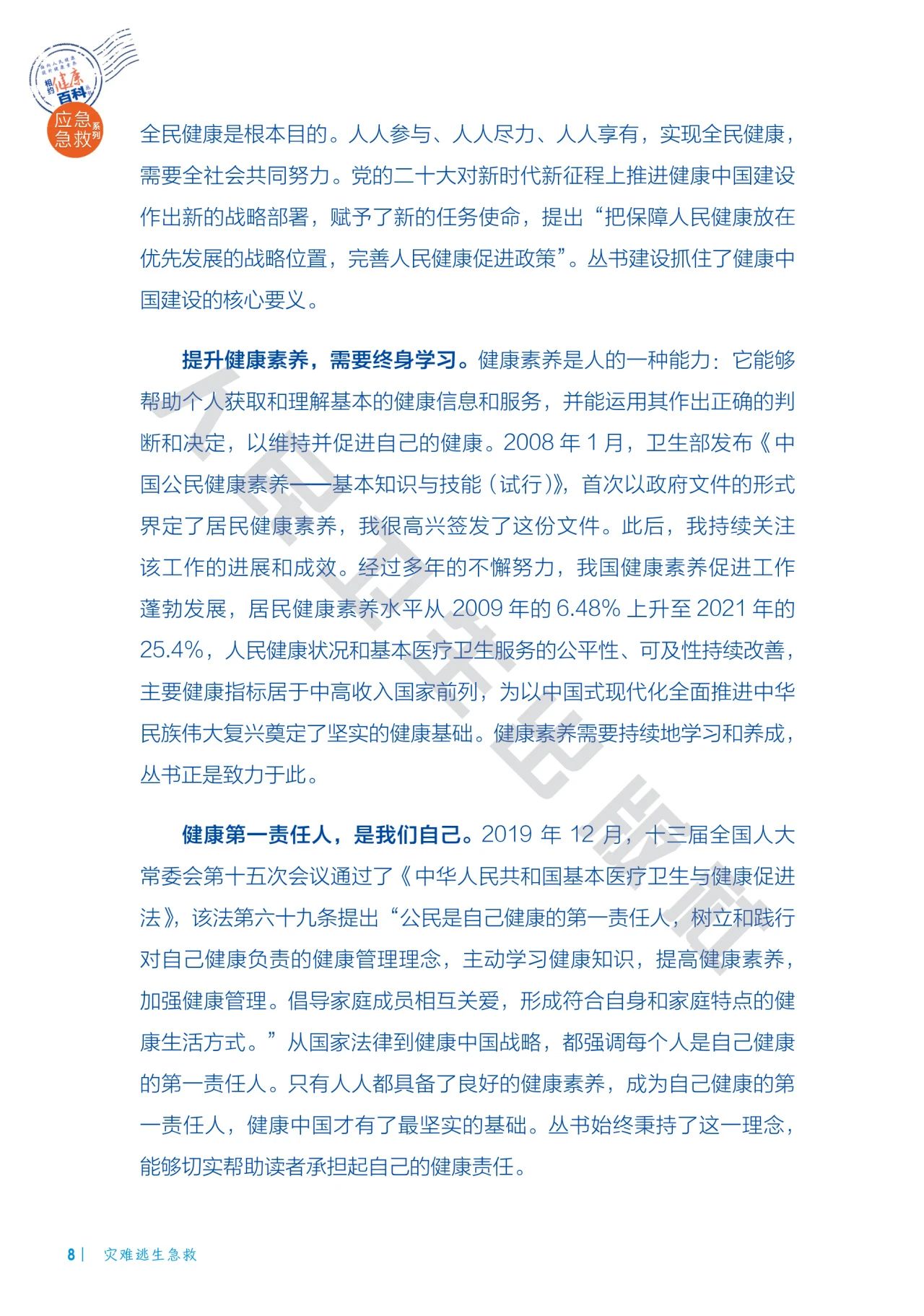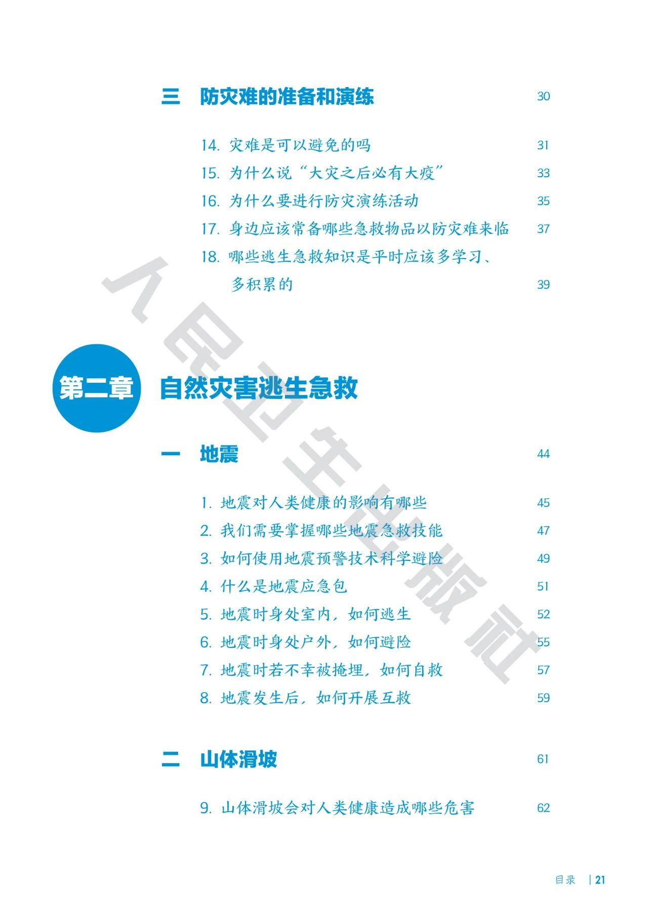 。第一章为灾难逃生急救常识,介绍应对灾难的原则