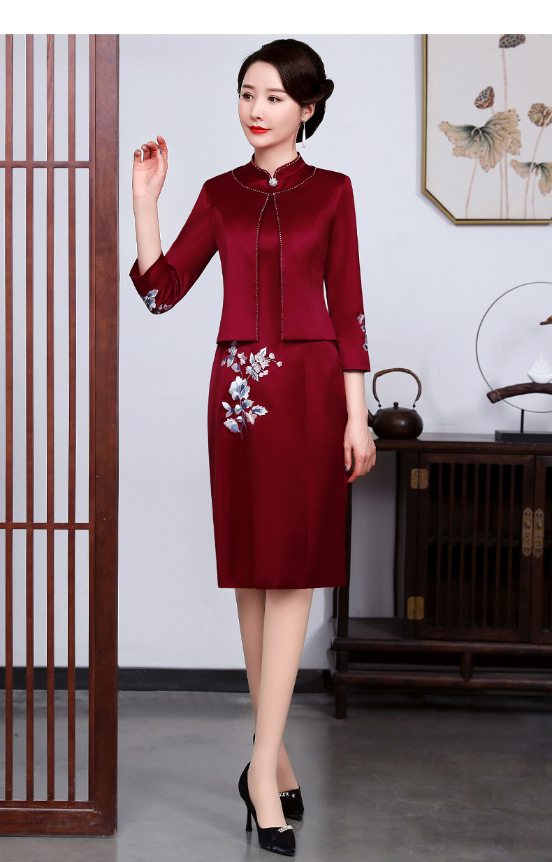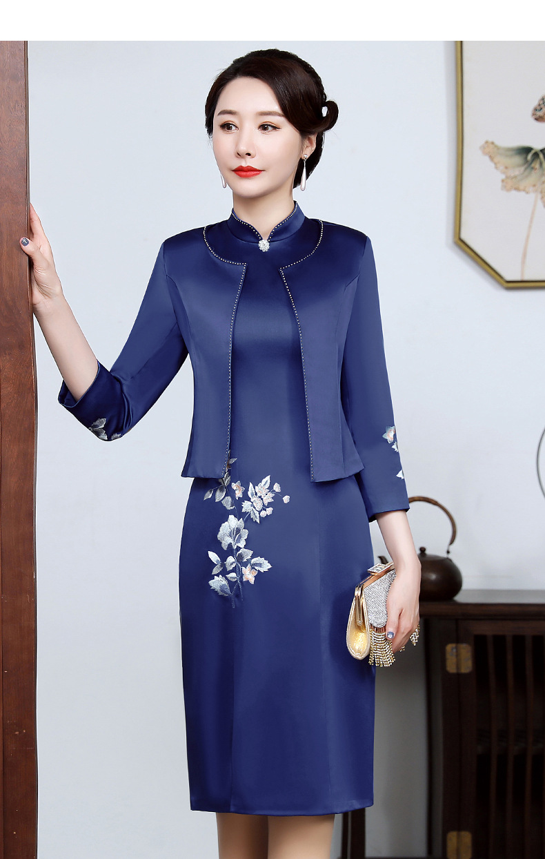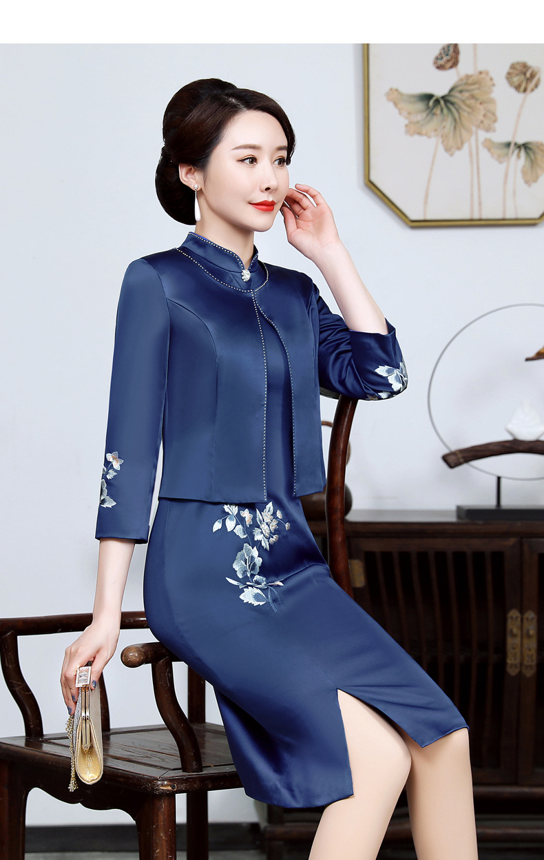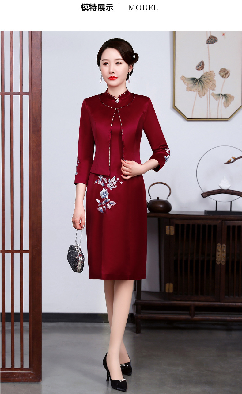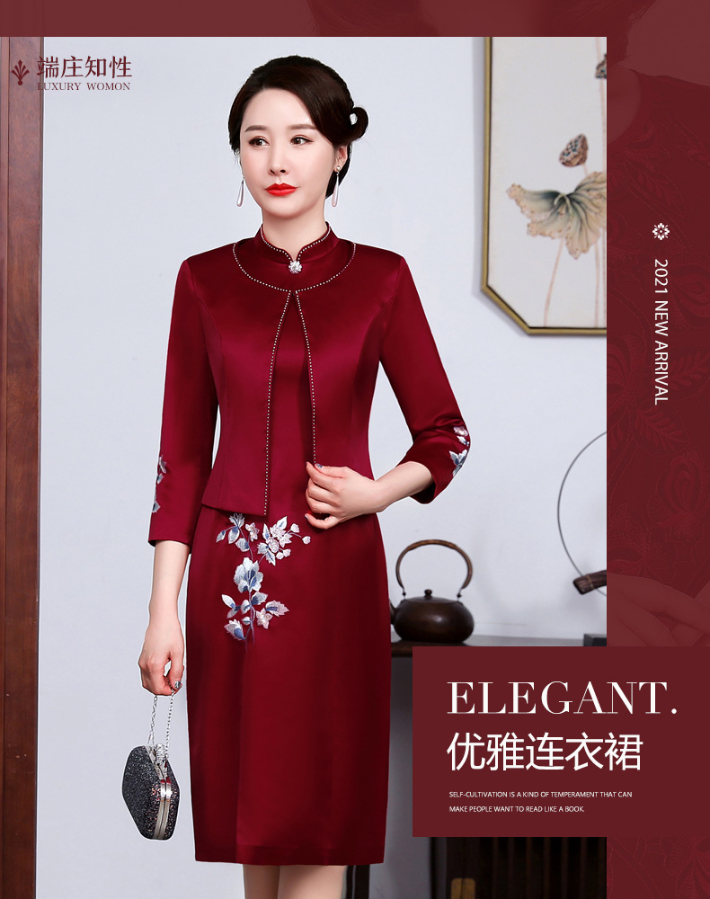 上海旗袍厂JC-JY5031春装新款气质两件套连衣裙结婚母亲装婚宴妈妈礼服喜婆婆旗袍