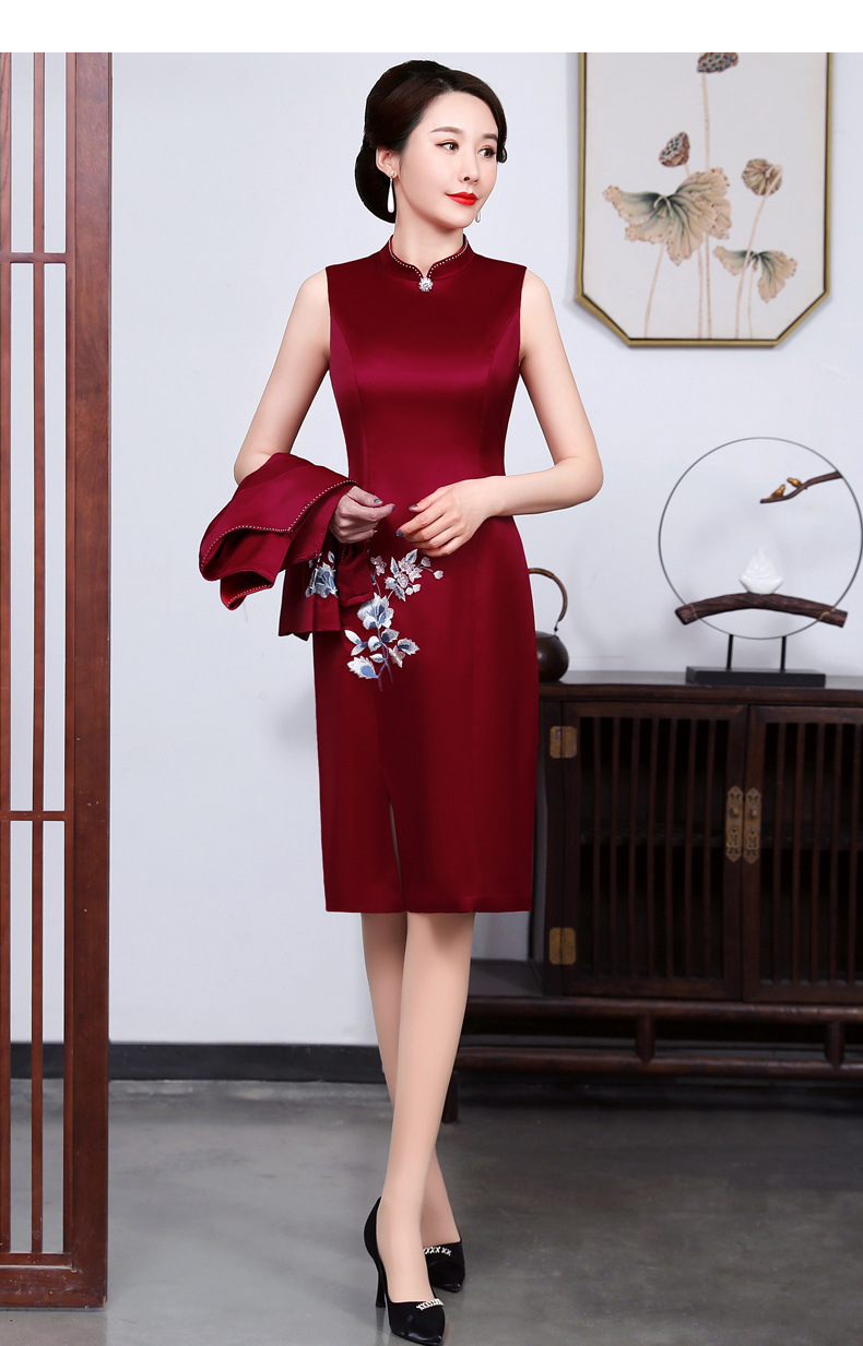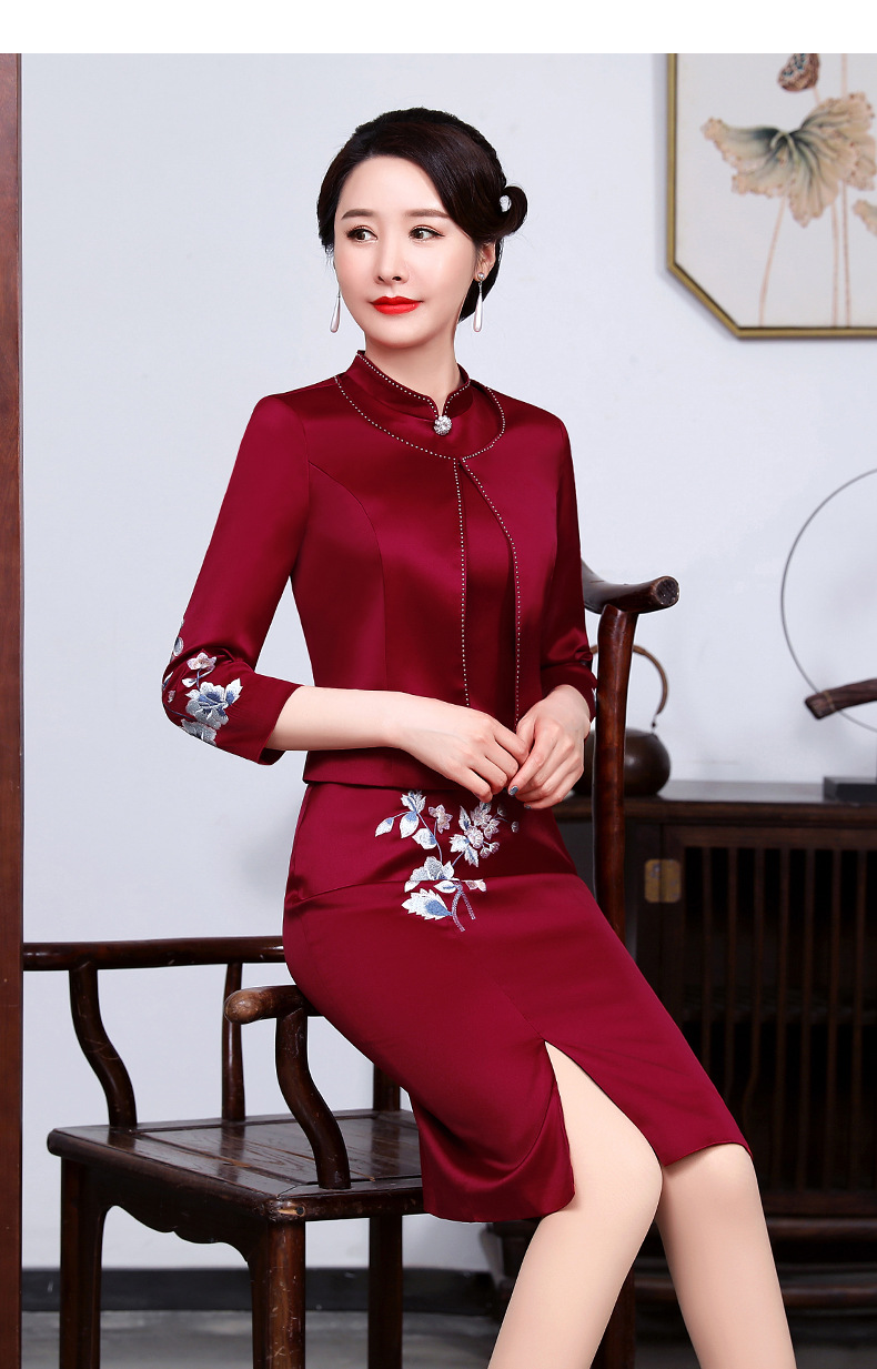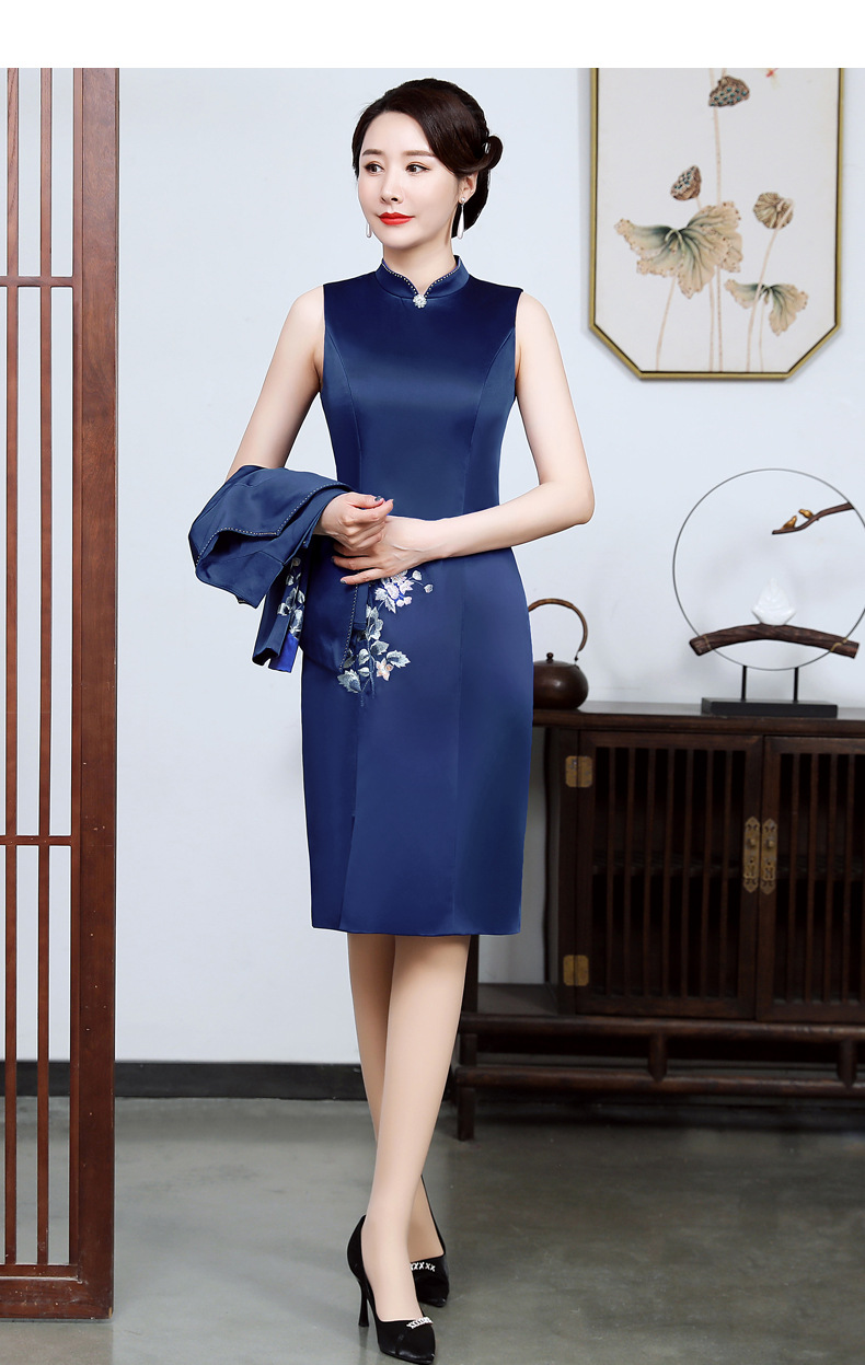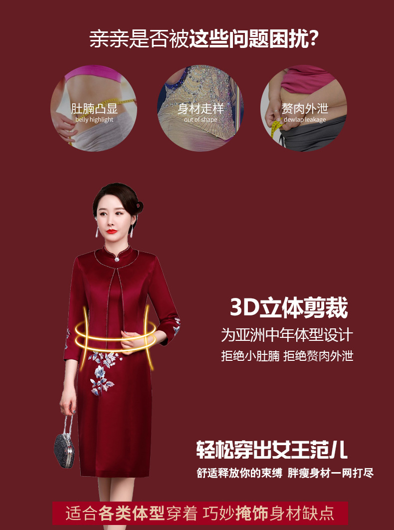 上海旗袍厂JC-JY5031春装新款气质两件套连衣裙结婚母亲装婚宴妈妈礼服喜婆婆旗袍