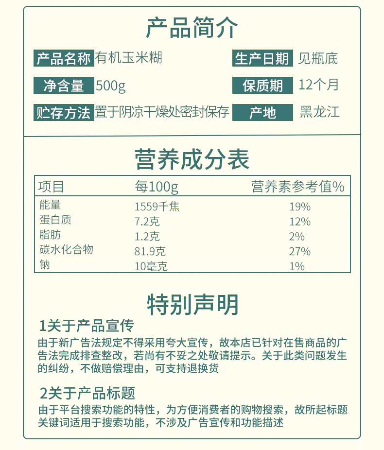 品名:有机玉米湖 规格1:500g/罐*2罐 规格2:500g/罐*3罐;拍几份发几个包裹,不一定能同时到达,请耐心等待; 发货地/产地:黑龙江 包装方式:罐装 物流信息:默认中通/圆通/邮政快递,不支持指定快递 发货区域:新疆、西藏不发;北京、上海、深圳、海南+1元; 物流详情:周六、周日及节假日除外,正常48小时内发货,到货时间约为2~5天,请耐心等待 售后说明:收到货后有质量问题,在24小时内都可以拍照(坏品+快递单面箱子一起拍)上传,申请按坏品比例理赔或联系客服,生鲜食品性质特殊,不支持7天无理由退换货;因地址错误,手机号联系不上,拒收等造成的损失无法售后,请理解; |
