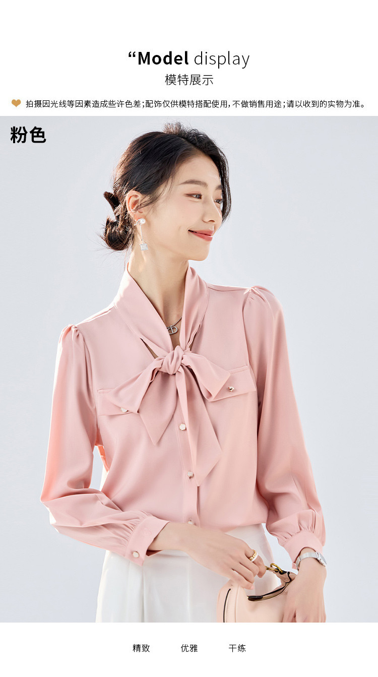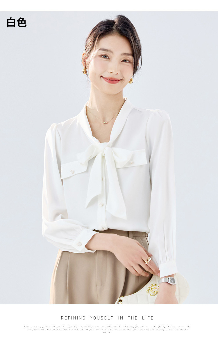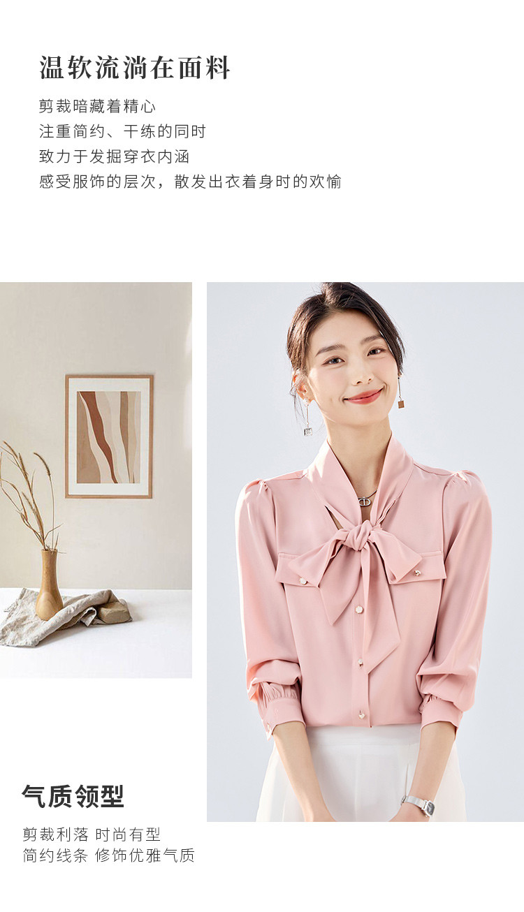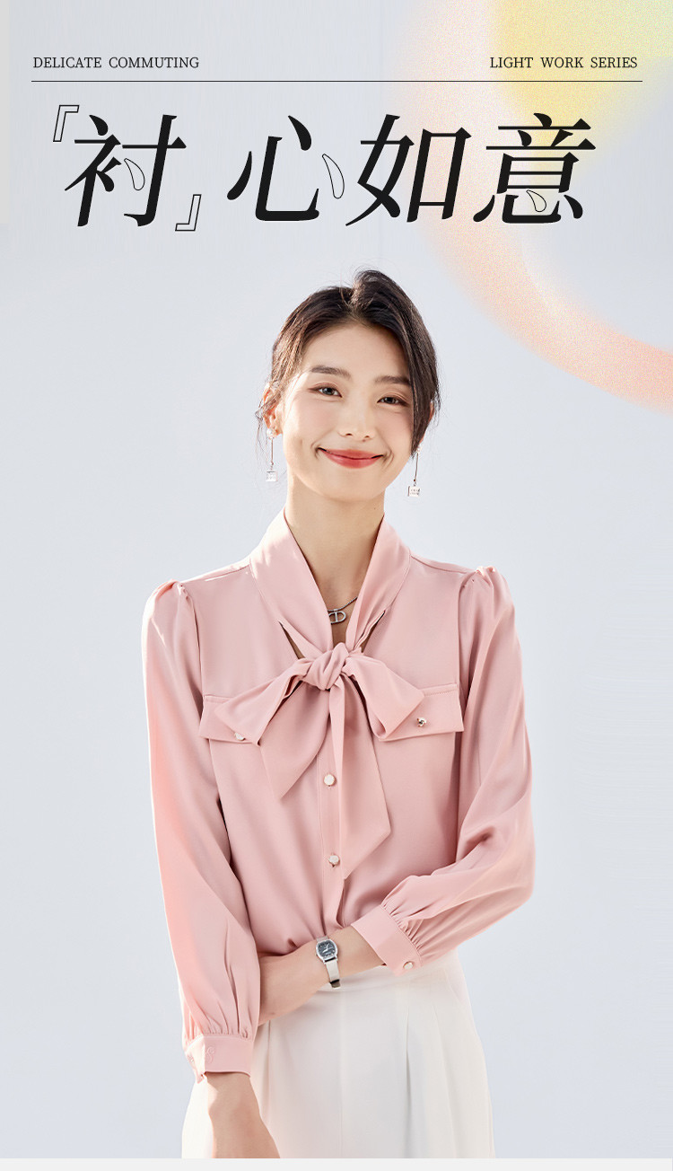 【系带领结】罗蒙女士长袖衬衫商务通勤舒适优雅简约大气衬衫女