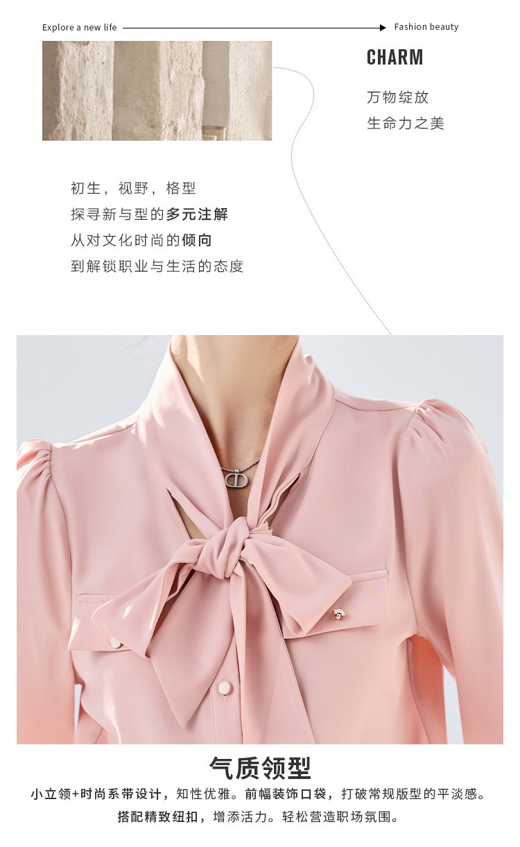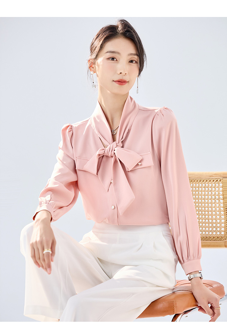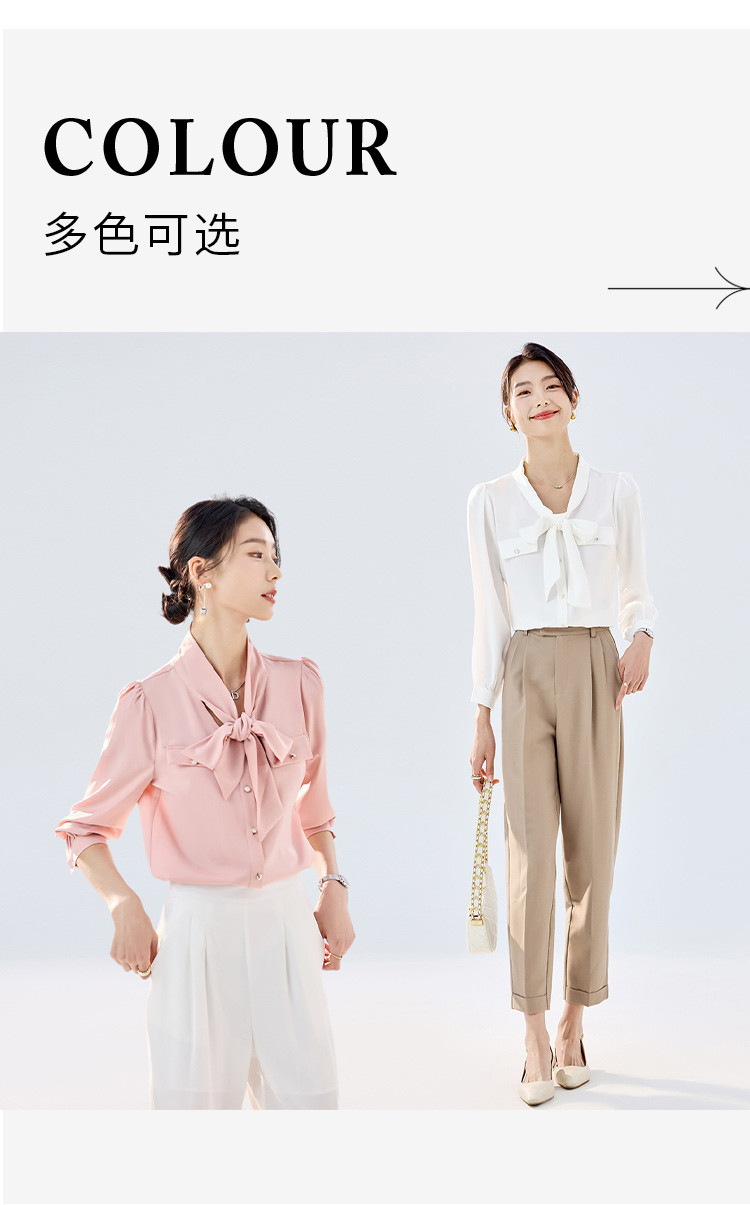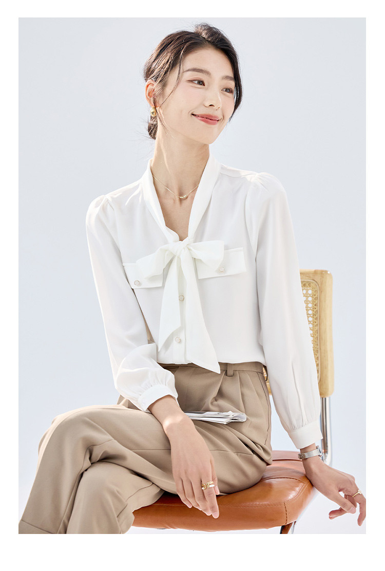 【系带领结】罗蒙女士长袖衬衫商务通勤舒适优雅简约大气衬衫女