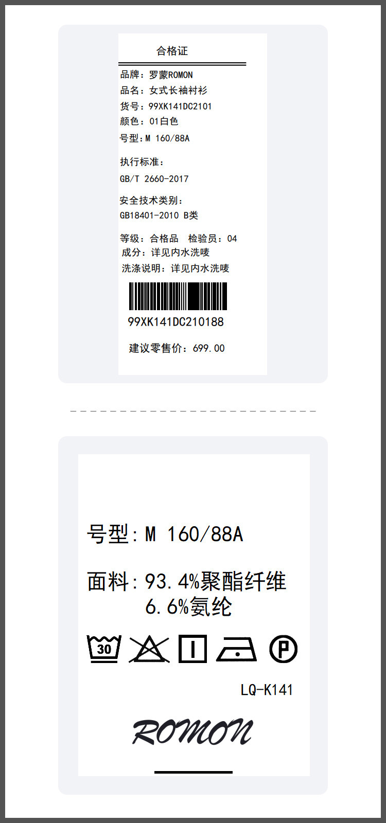93.4%聚酯纤维 6.6%氨纶