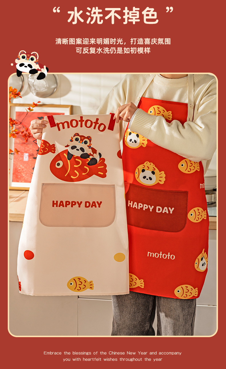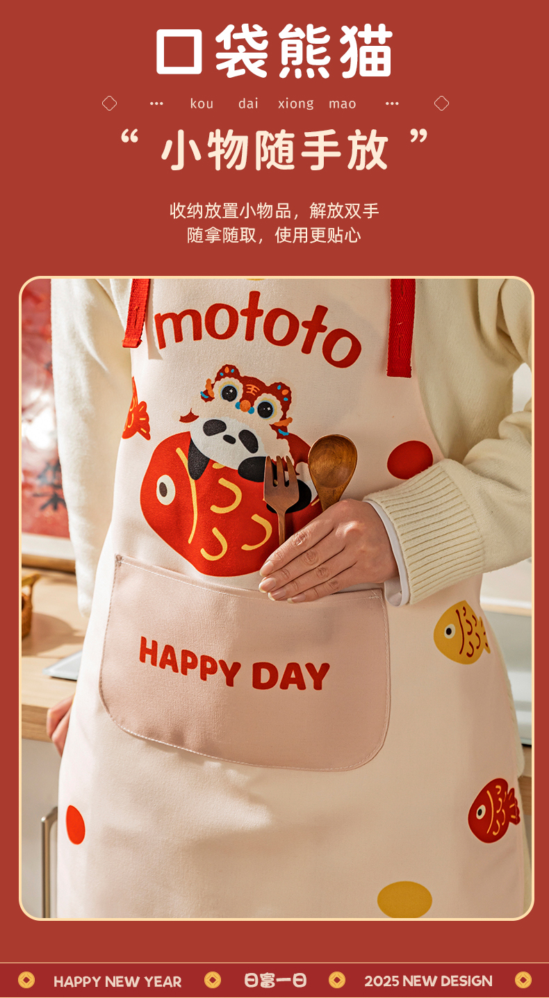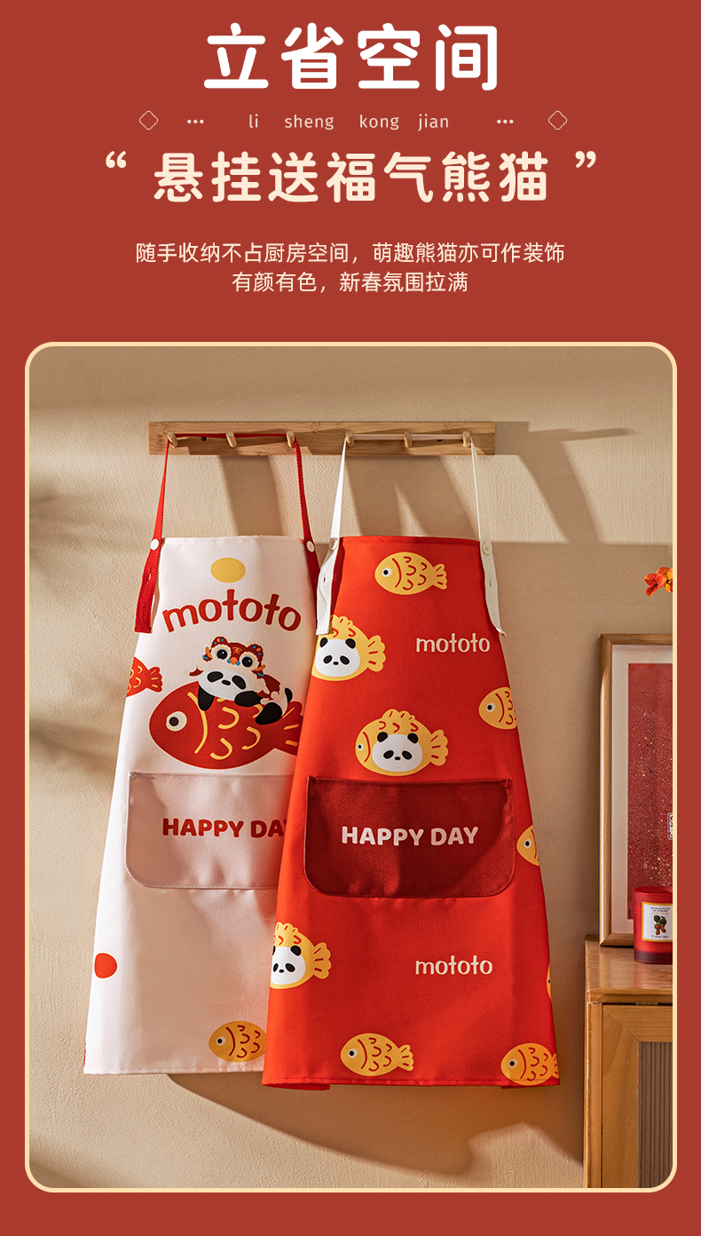 摩登主妇mototo新年熊猫围裙2024新款厨房家用可爱女防水防油罩衣