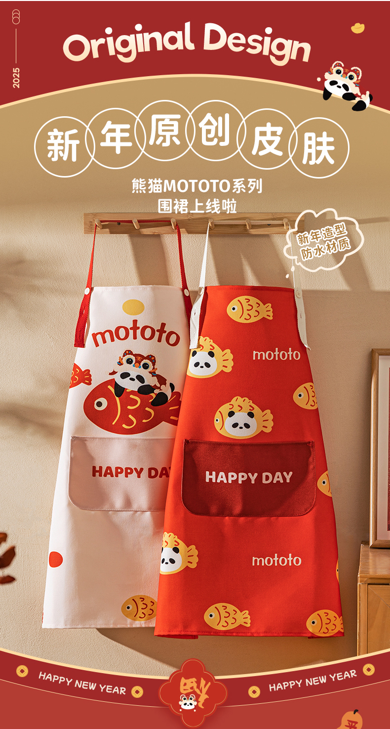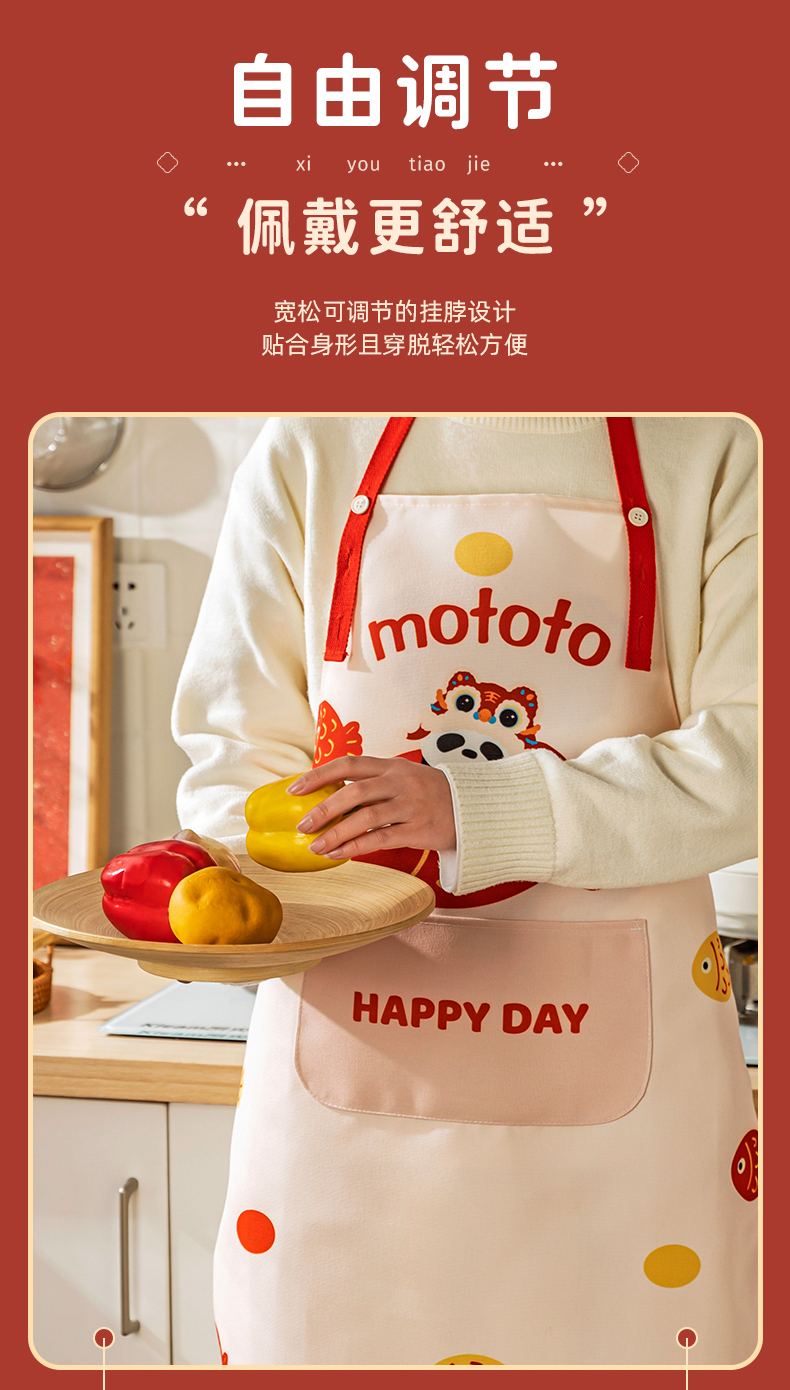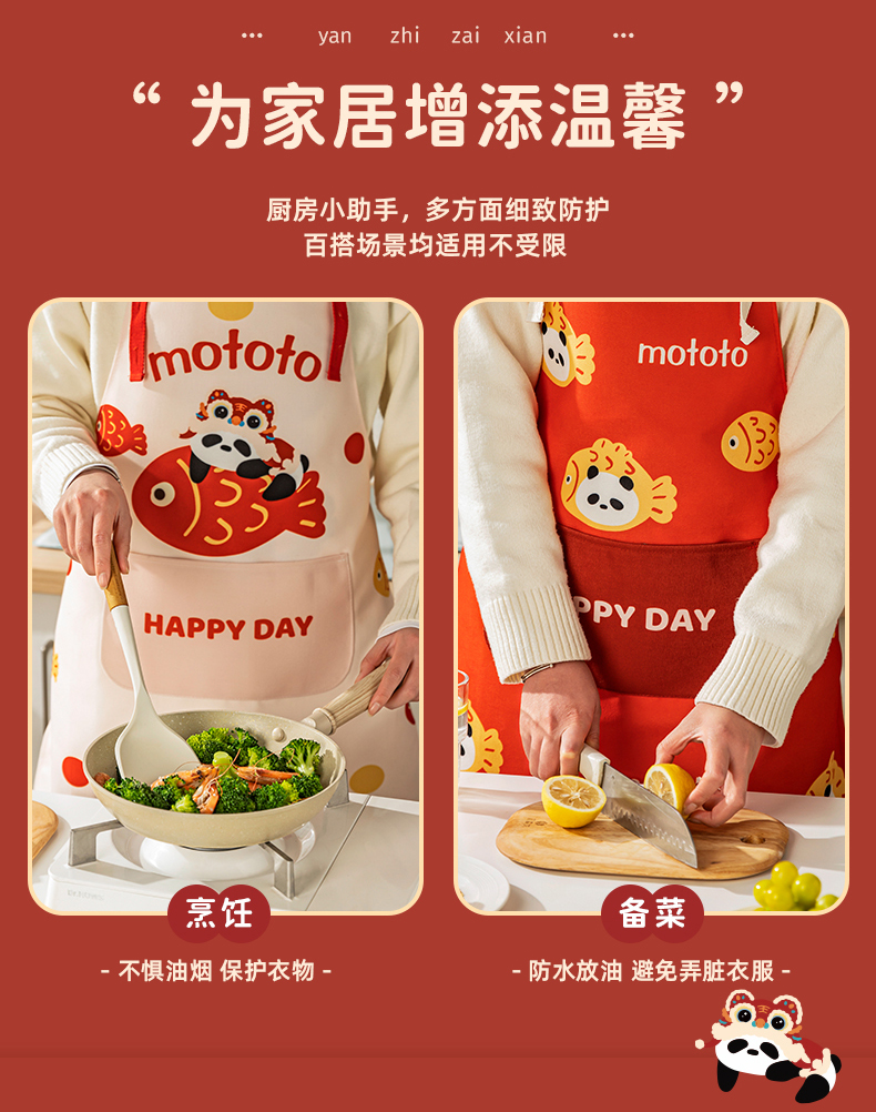 摩登主妇mototo新年熊猫围裙2024新款厨房家用可爱女防水防油罩衣