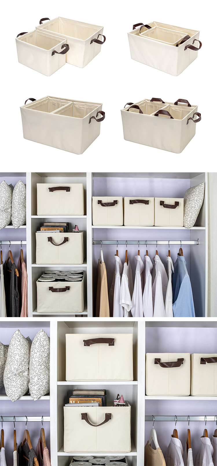 【5折清仓】【自营】新品高质感家庭收纳荔枝纹PU提手丝滑内衬加厚牛津布铁架框收纳箱