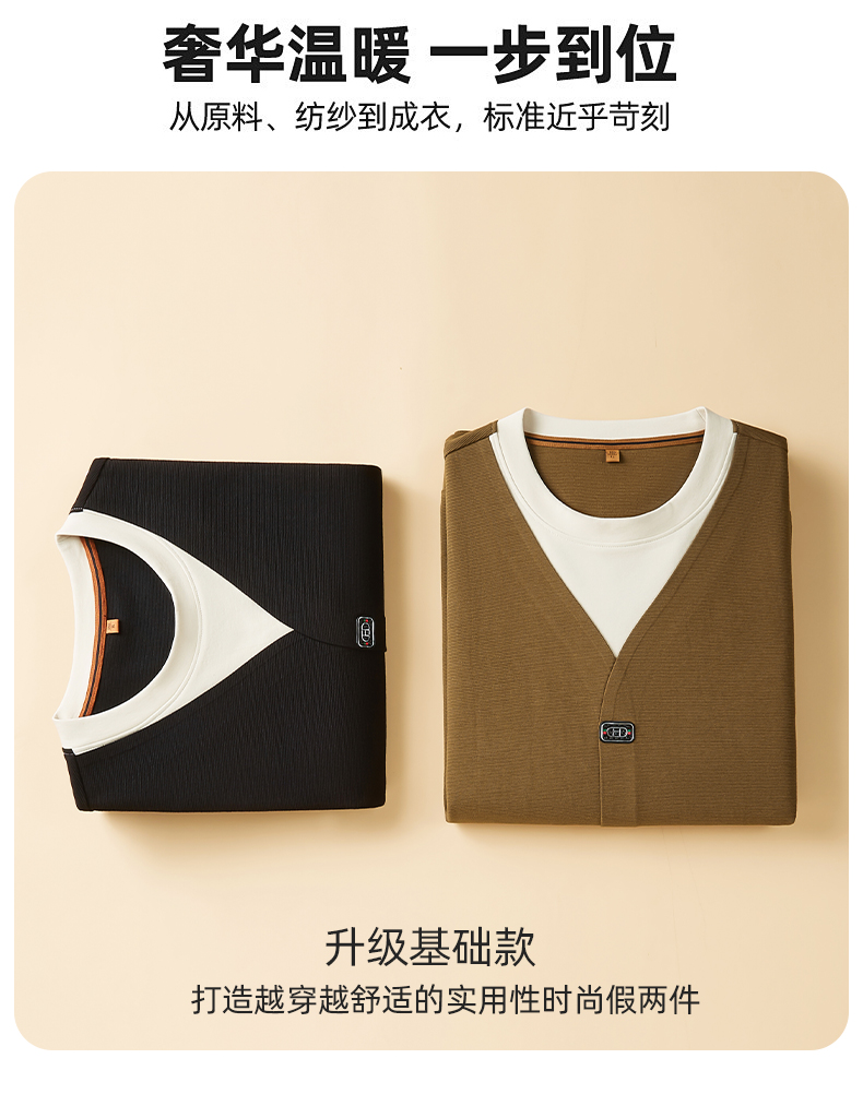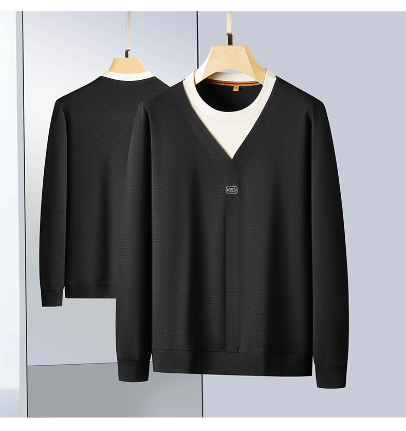 【假两件】【新款DDP】大依优型大码男士假两件圆领长袖卫衣商务休闲上衣加肥加大胖子舒适