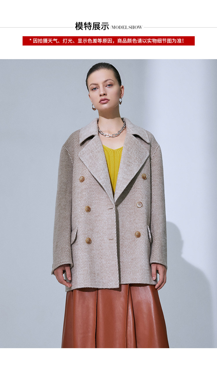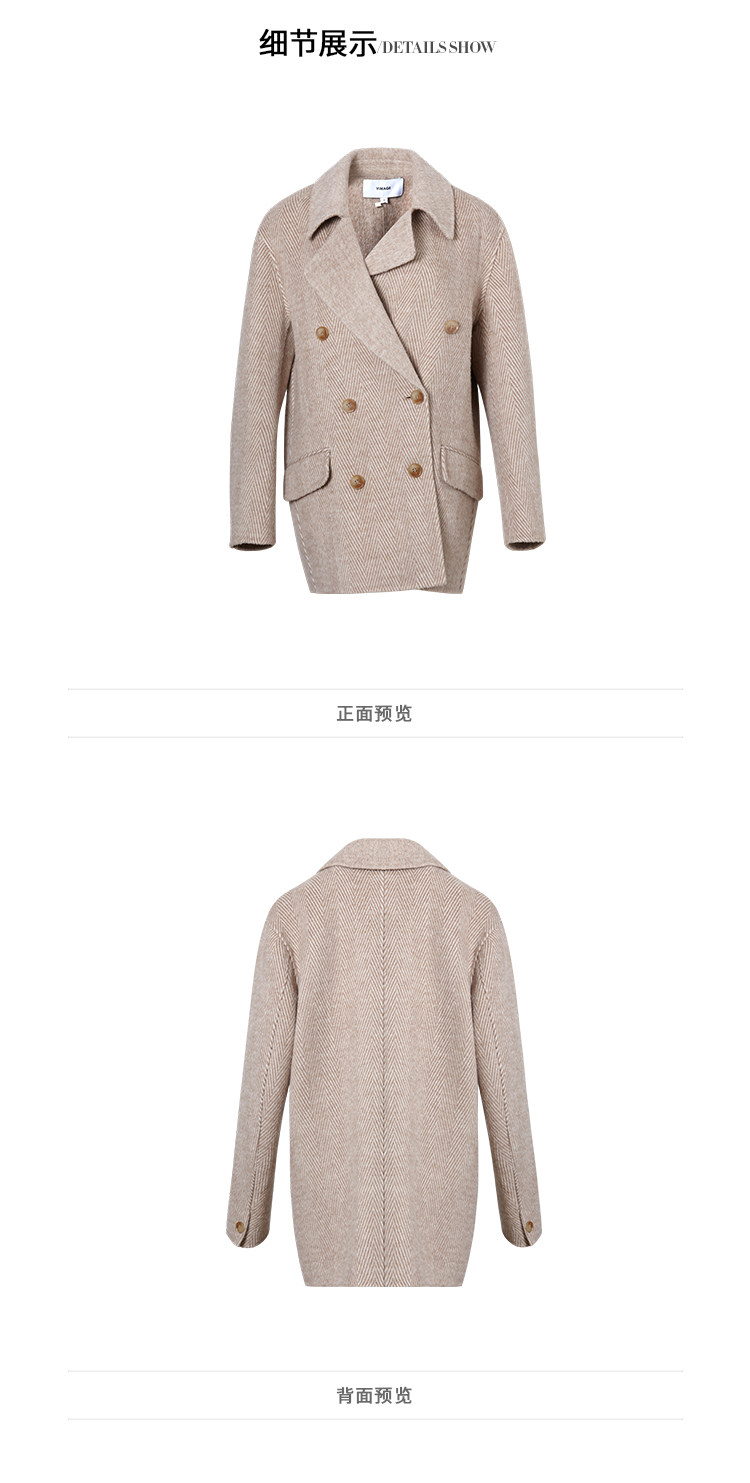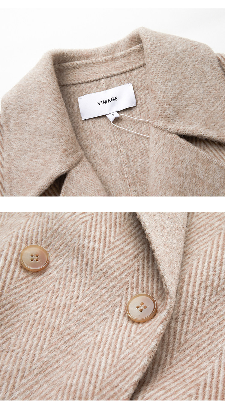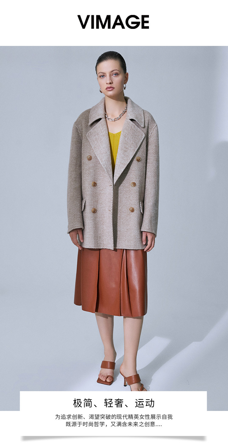 VIMAGE纬漫纪春季新款气质翻领时尚双排扣直筒显瘦羊毛呢外套V1514101