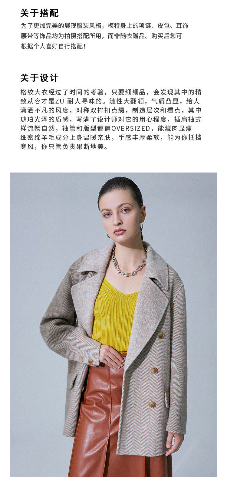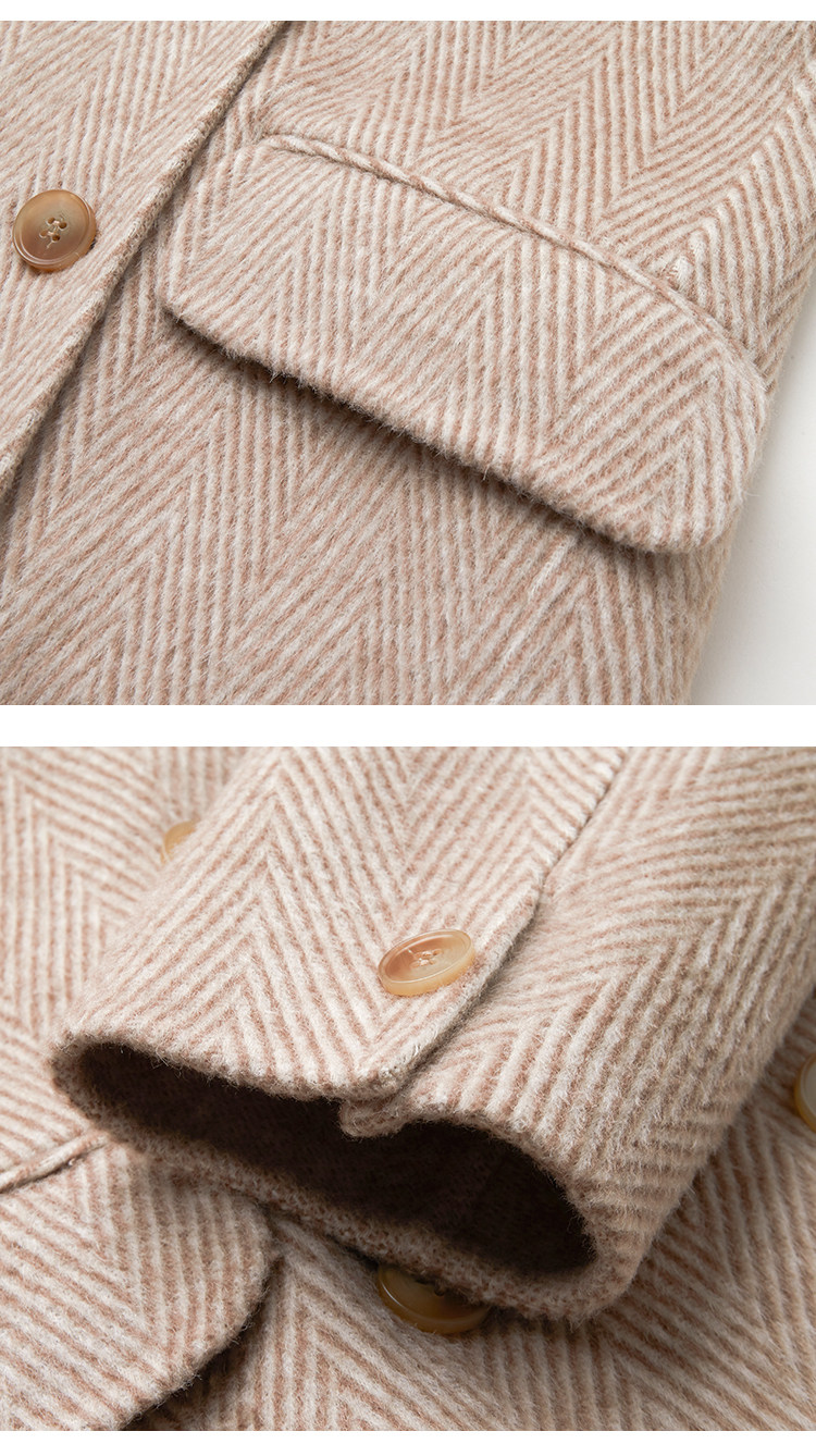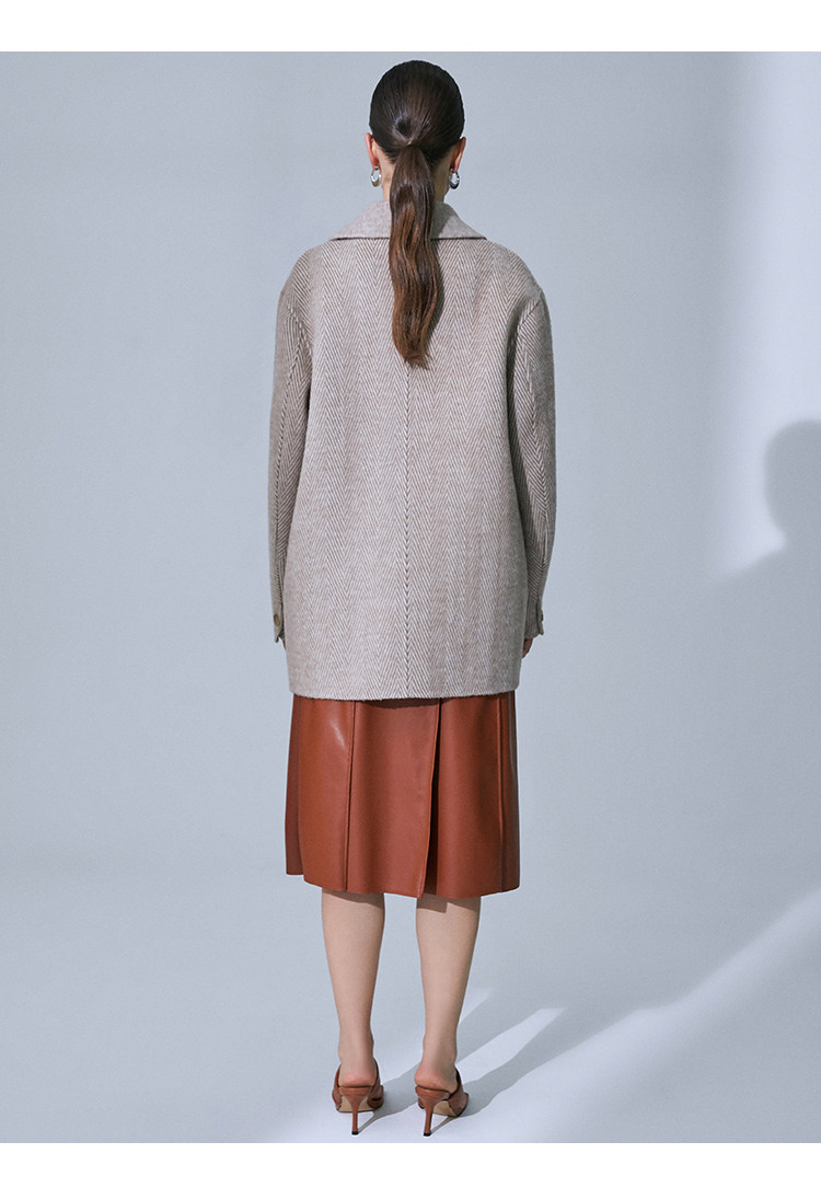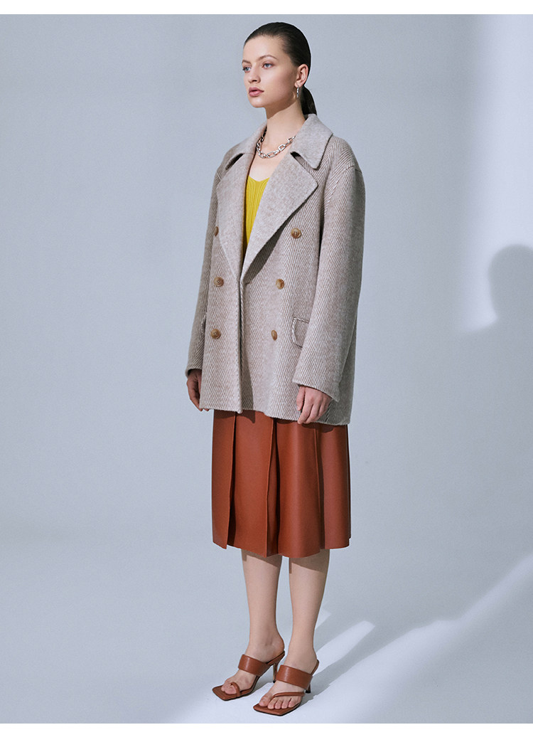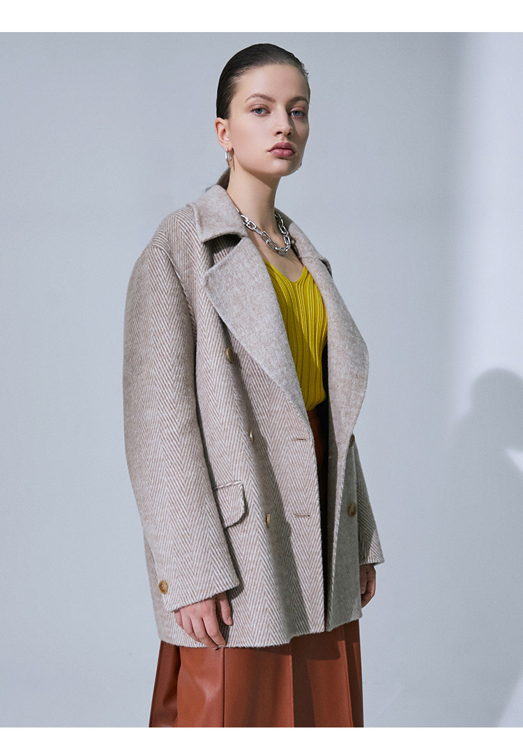 VIMAGE纬漫纪春季新款气质翻领时尚双排扣直筒显瘦羊毛呢外套V1514101