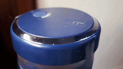 单看外观与普通喝水用的随行杯没什么差别,不同的是,在杯盖内隐藏有电机与食品级不锈钢(SUS301材质)一字刀头的一体式设计,实相当于一个便携mini榨汁机。