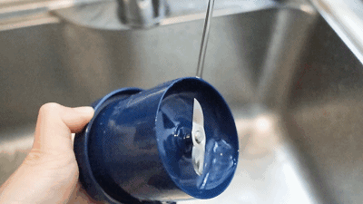 ▽双击开关之后,刀片已经开始旋转,打开被子后看到的就是停止的刀片