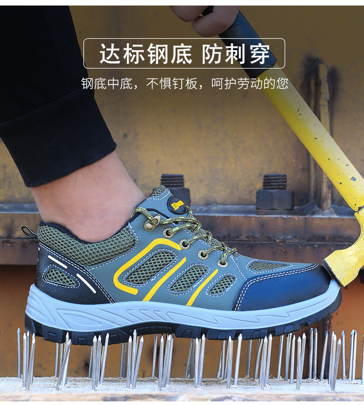 劳保鞋男钢包头防砸防刺穿夏季透气实心底耐油耐酸碱防臭舒适工作鞋