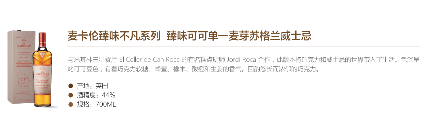 麦卡伦 Macallan 臻味不凡系列(臻味可可、臻味非凡、琥珀奇境 自然幻境 凤凰茶语)单一麦芽威士忌