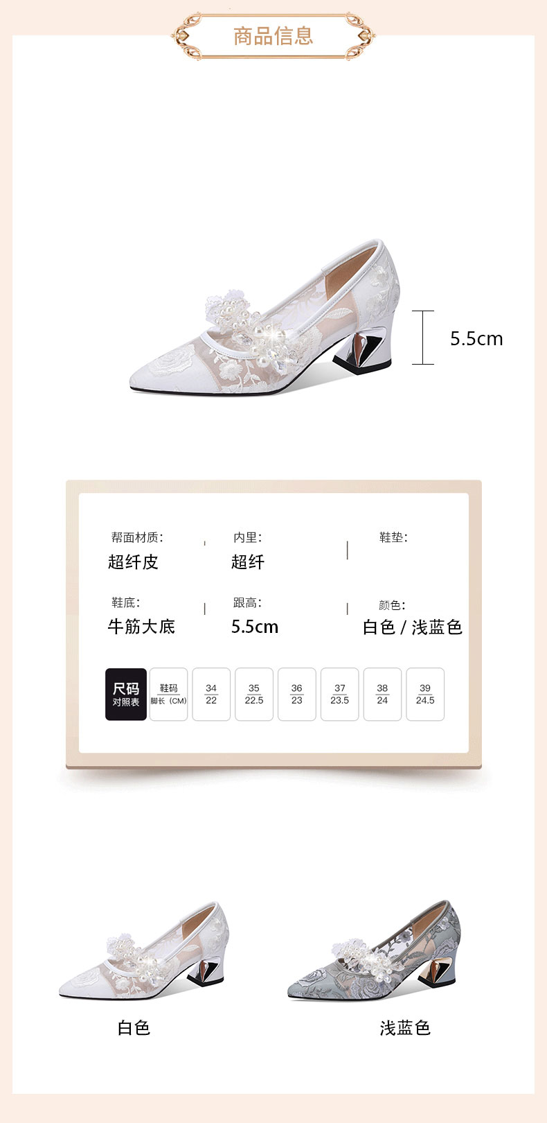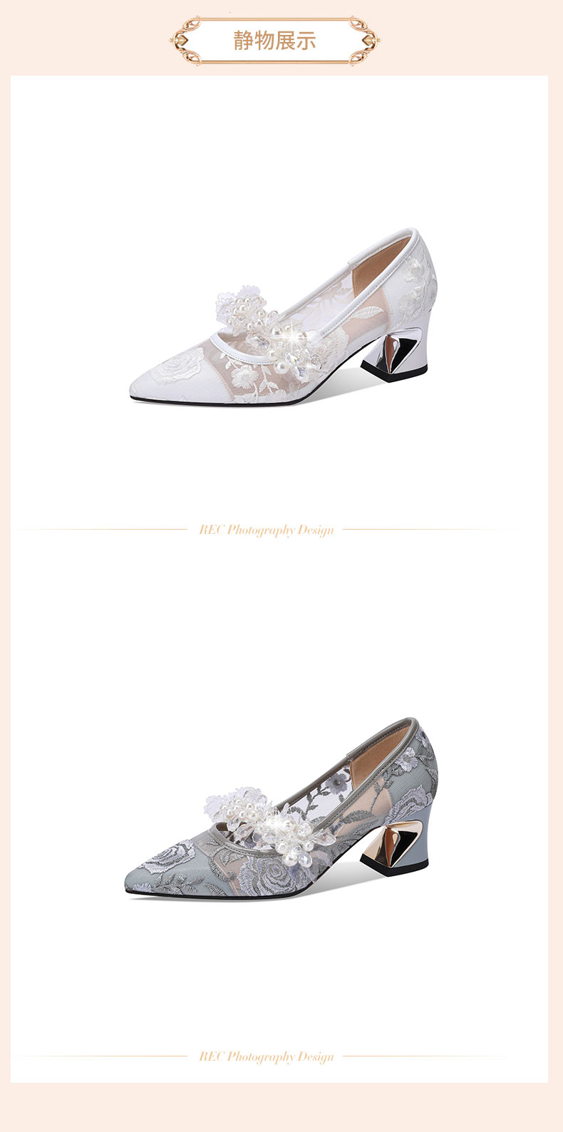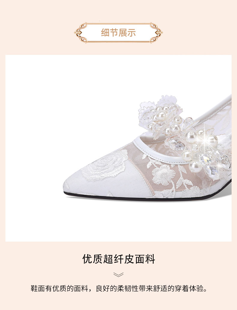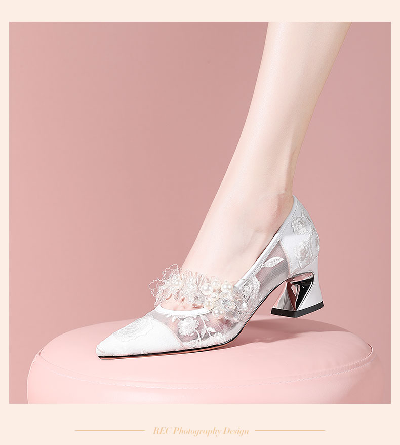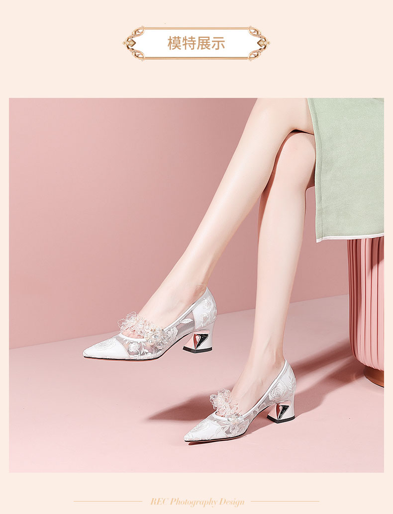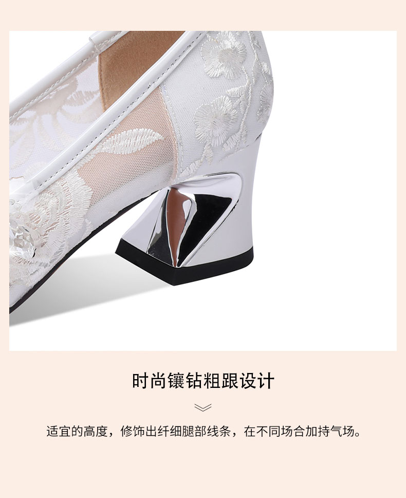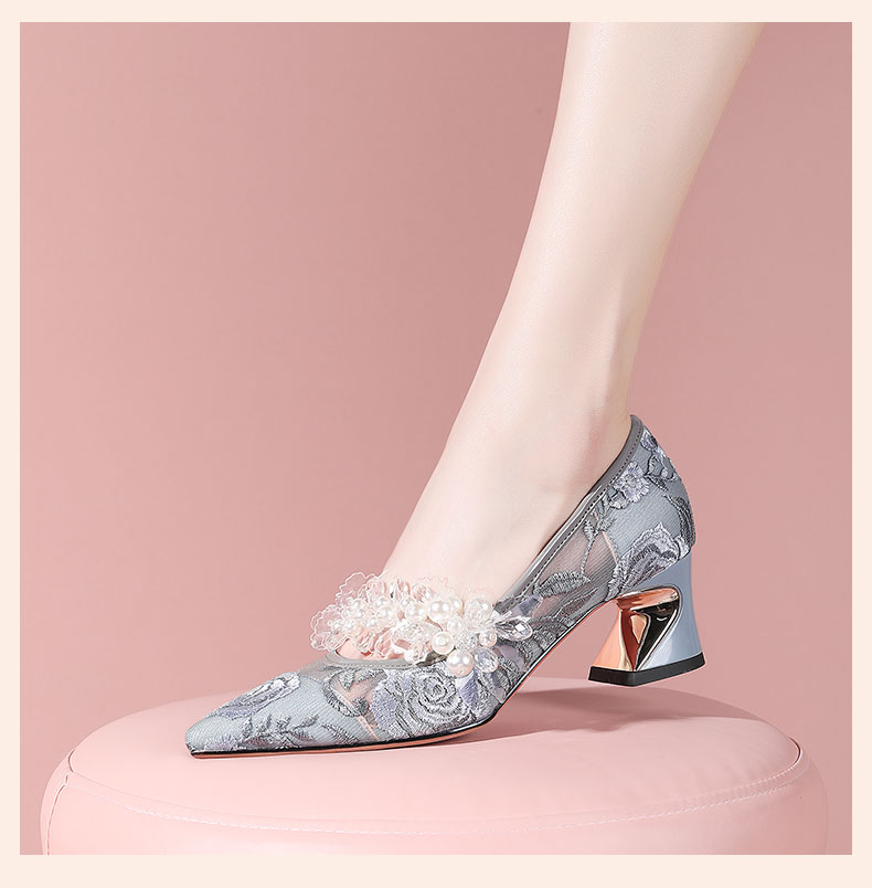 网纱时尚水钻花朵粗跟浅口单鞋,春秋尖头中高跟女瓢鞋YSML-A060-K751-4