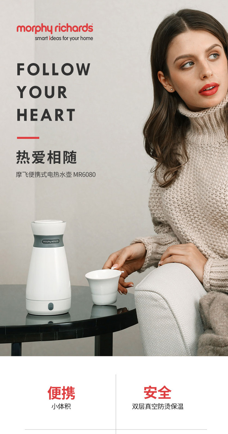 助力砍价 英国摩飞便携式烧水壶全自动小型家用旅行保温大容量电茶壶