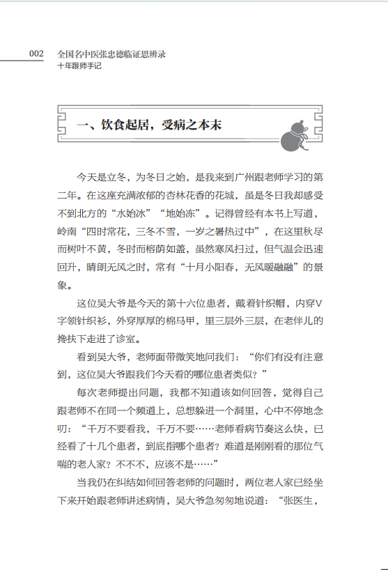 本书是作者跟诊全国名中医张忠德的十年跟诊记录,共包含二十种常见疾病,感冒、咳嗽、哮喘、气喘、支气管扩张、鼻炎、咽喉疼痛、口腔溃疡、发热、痹病、肝病、痛经、食滞、便秘、淋证、失眠、湿疹、汗证、疳证、打鼾。此外,本书的一大特色为诊病、治病结合二十四节气,辨证论治,对症下药。