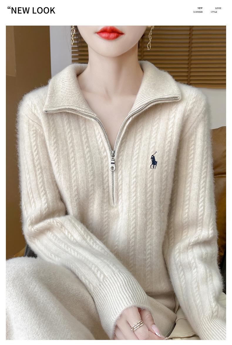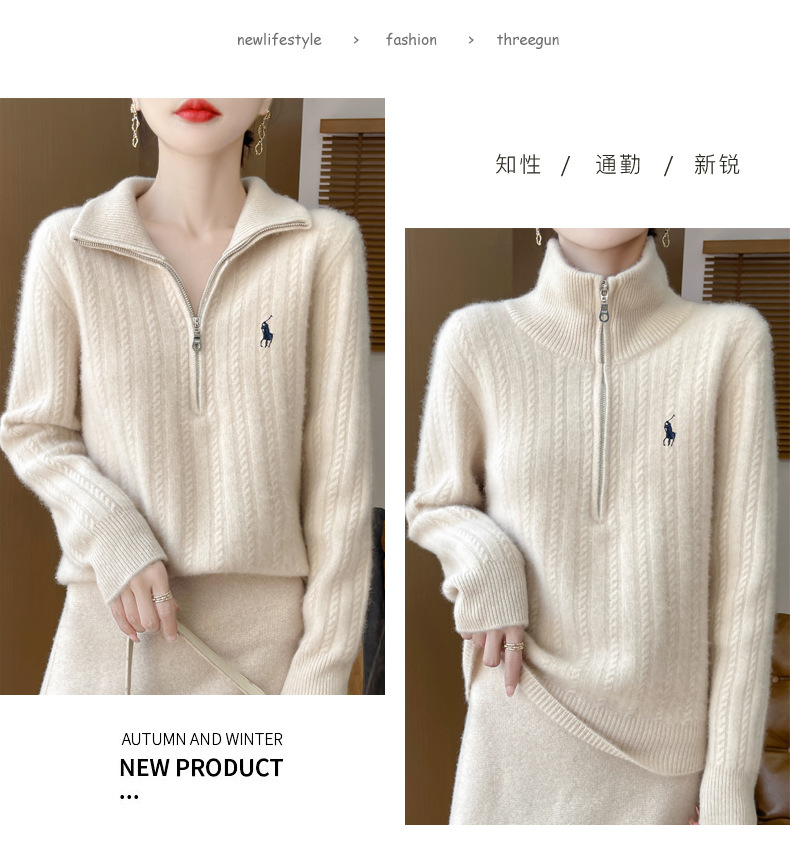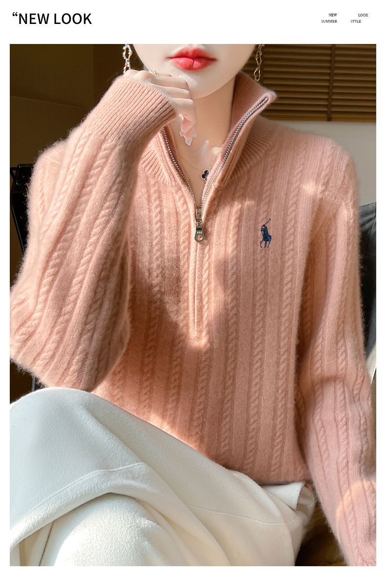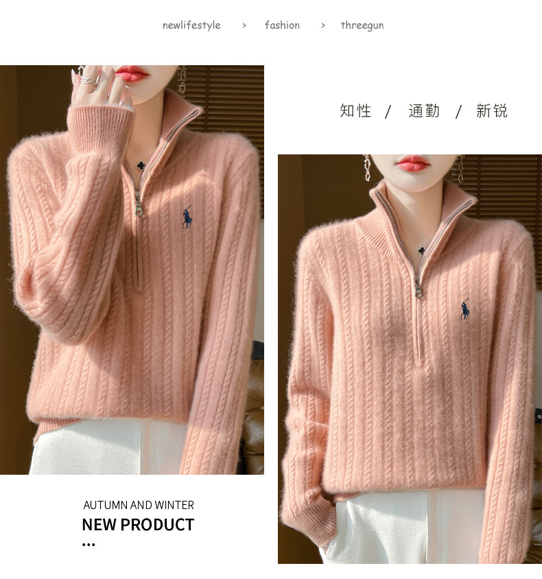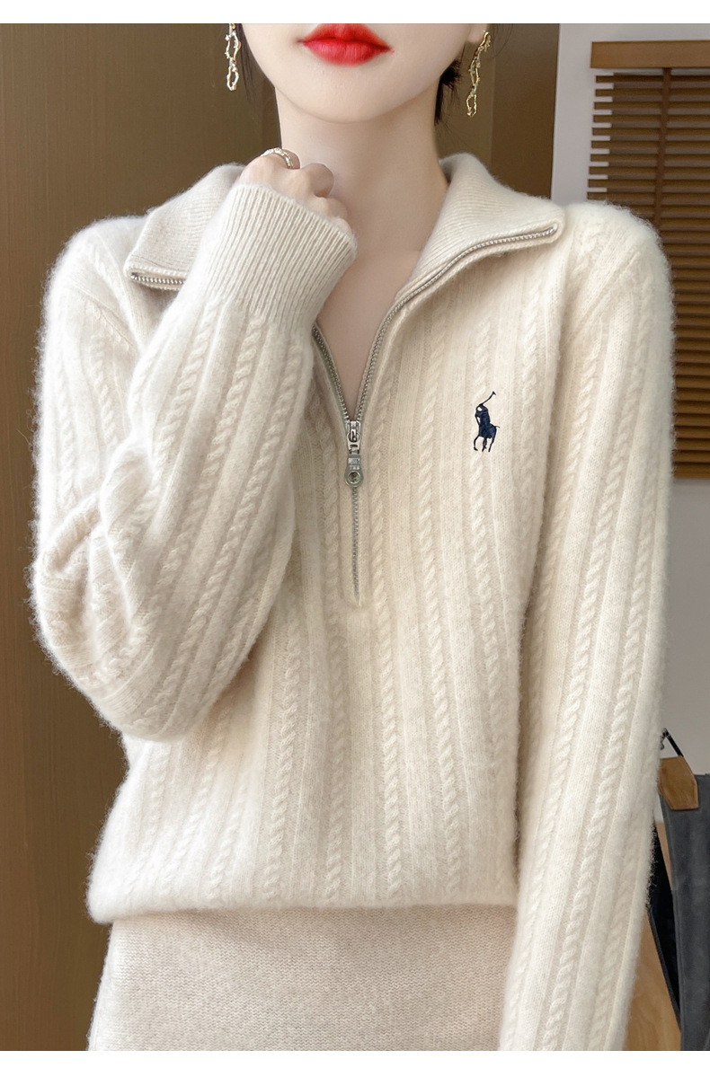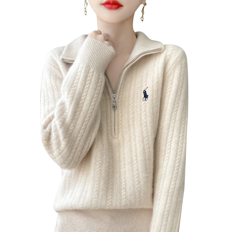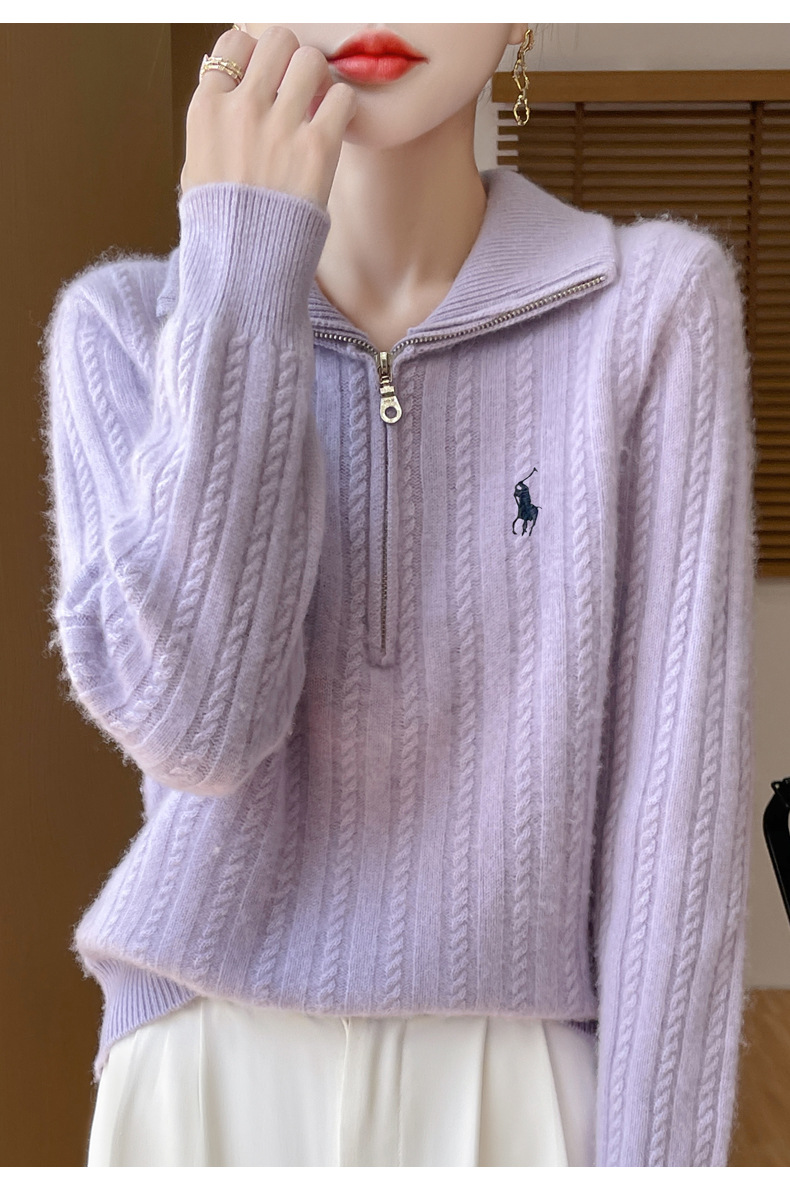 丁摩 100%纯羊毛衫女装针织毛衣开衫绞花刺绣女式羊毛衫NJR946