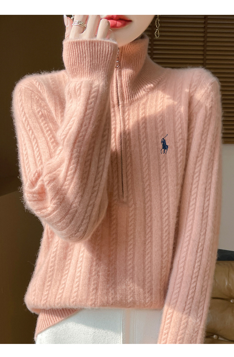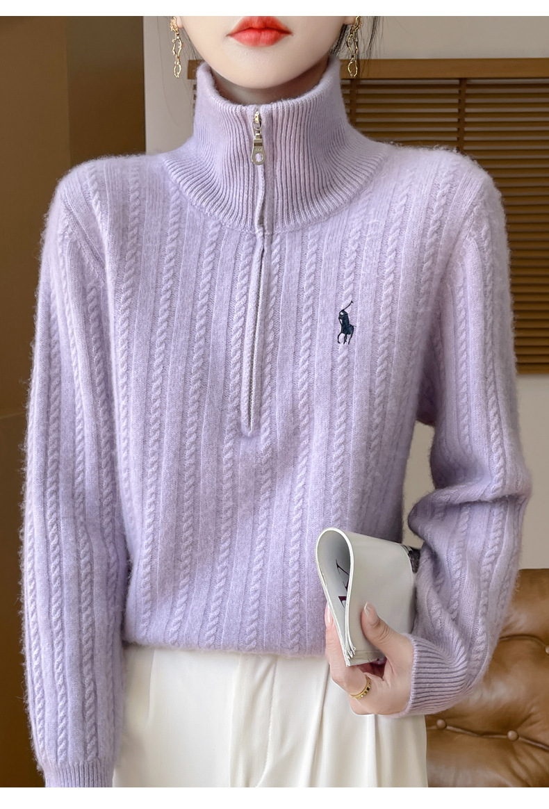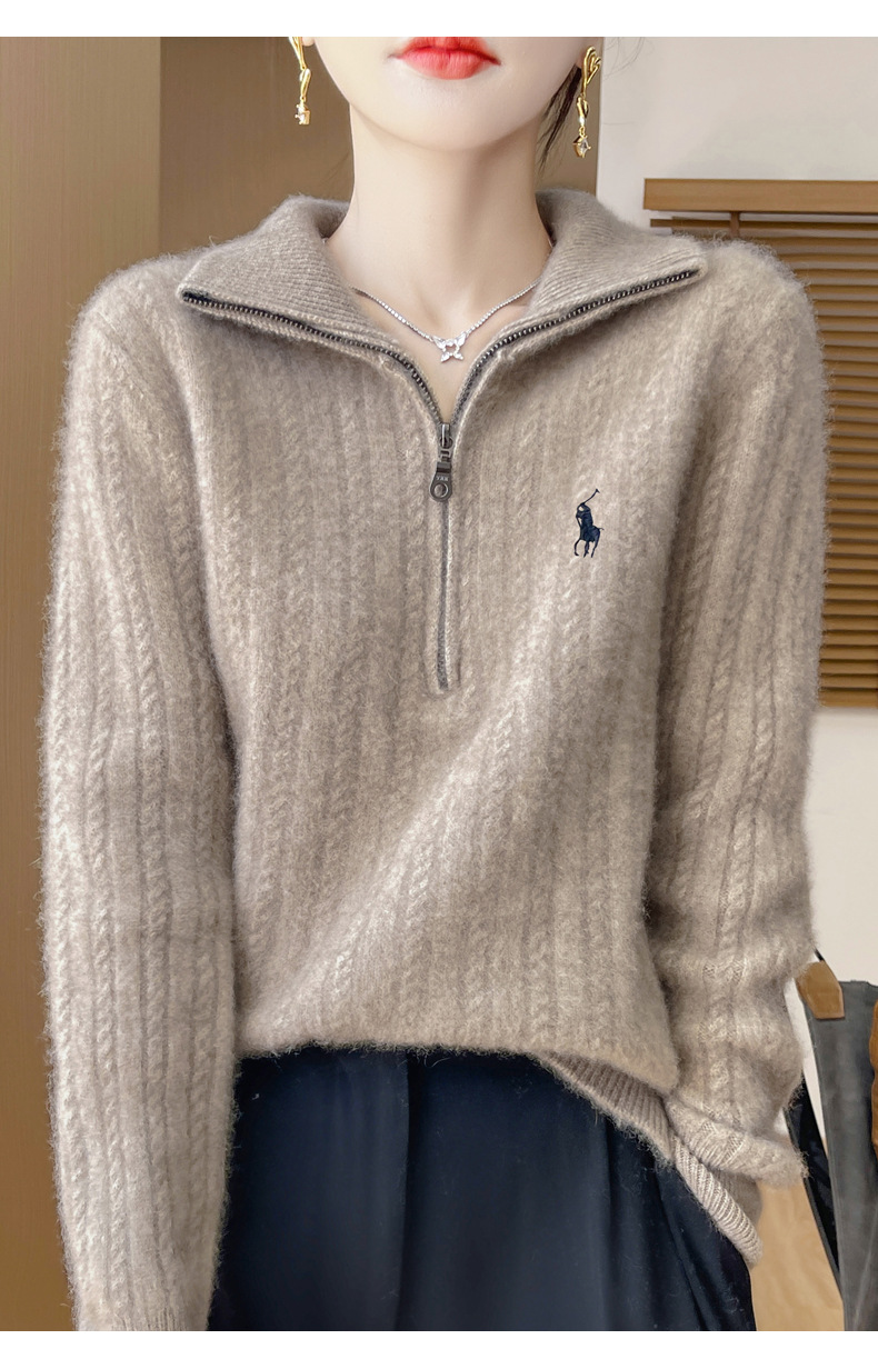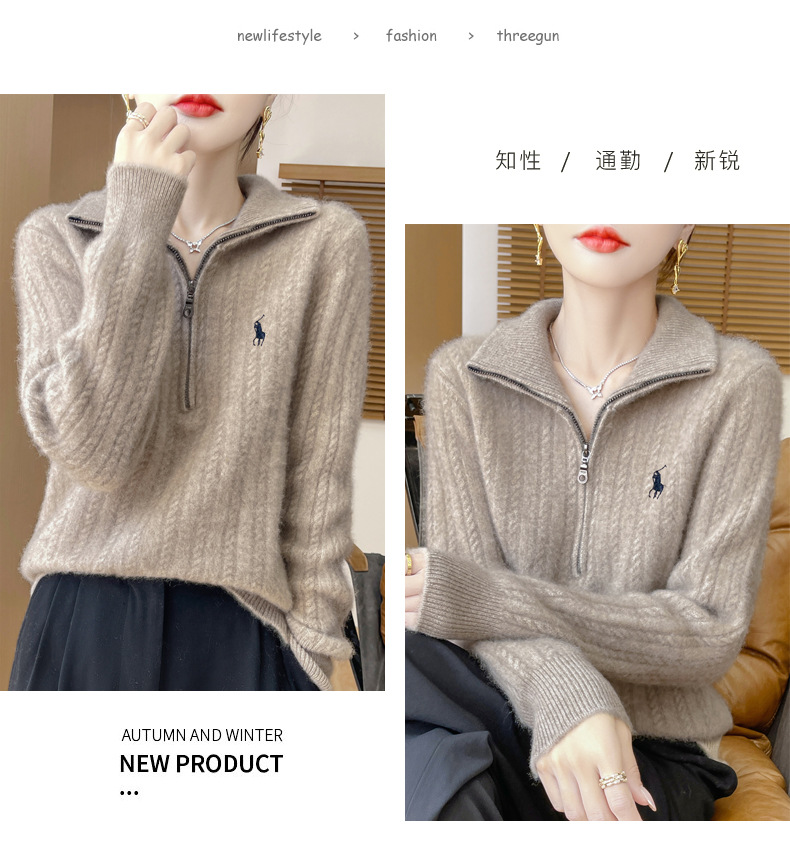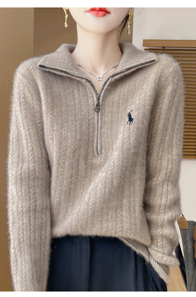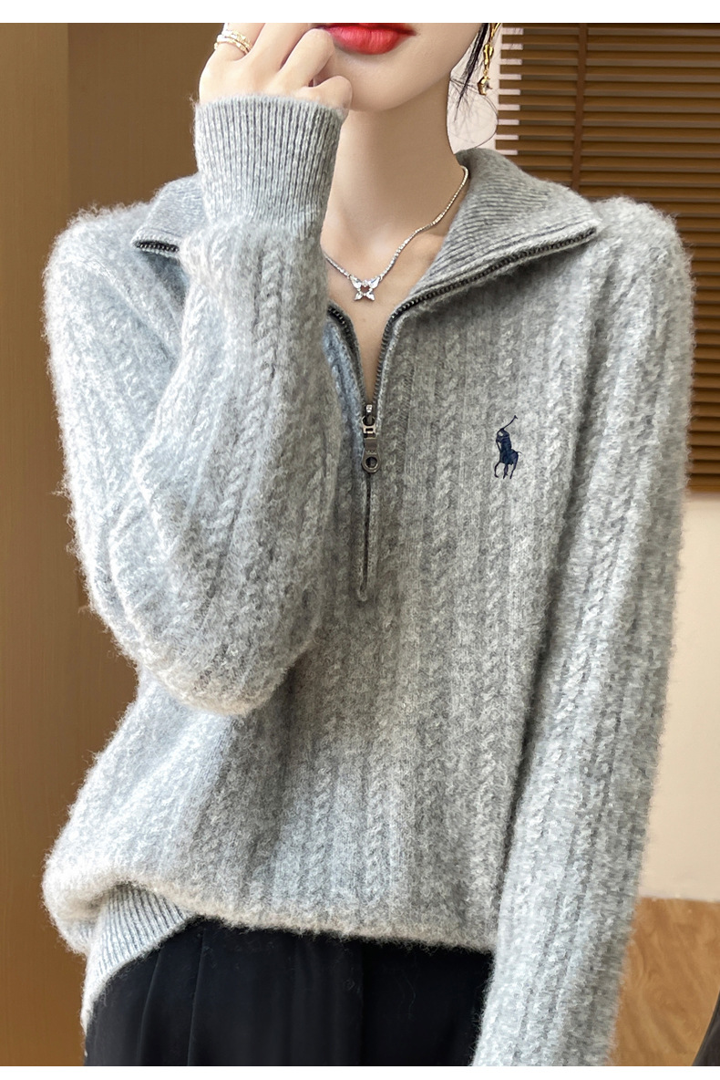 丁摩 100%纯羊毛衫女装针织毛衣开衫绞花刺绣女式羊毛衫NJR946