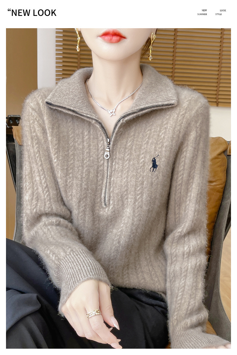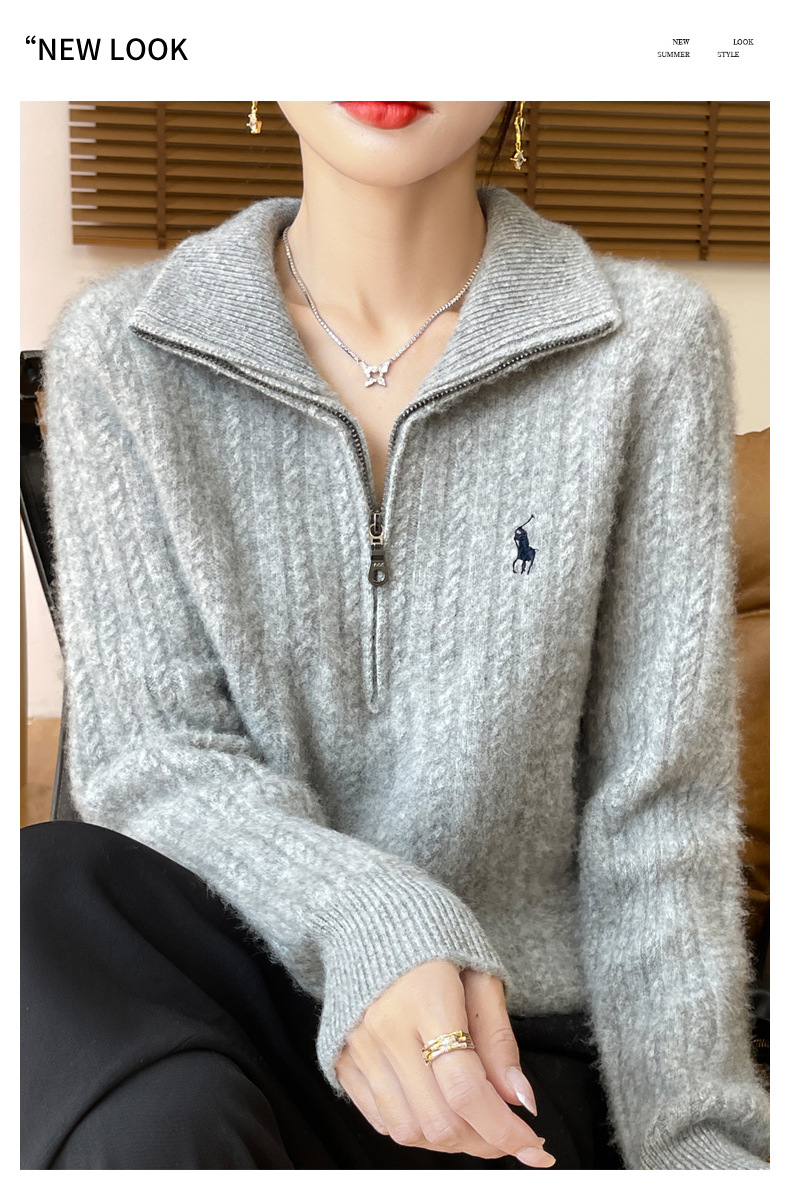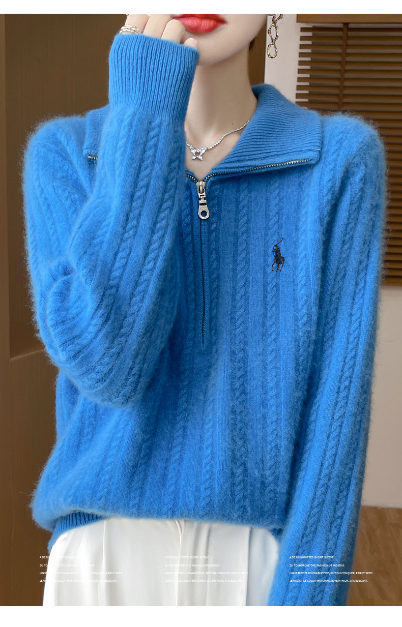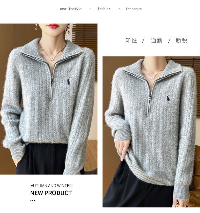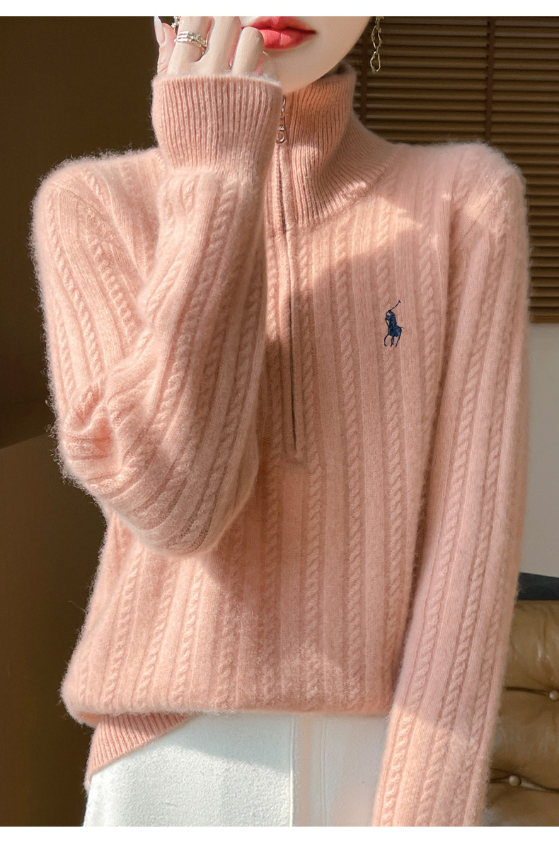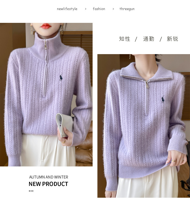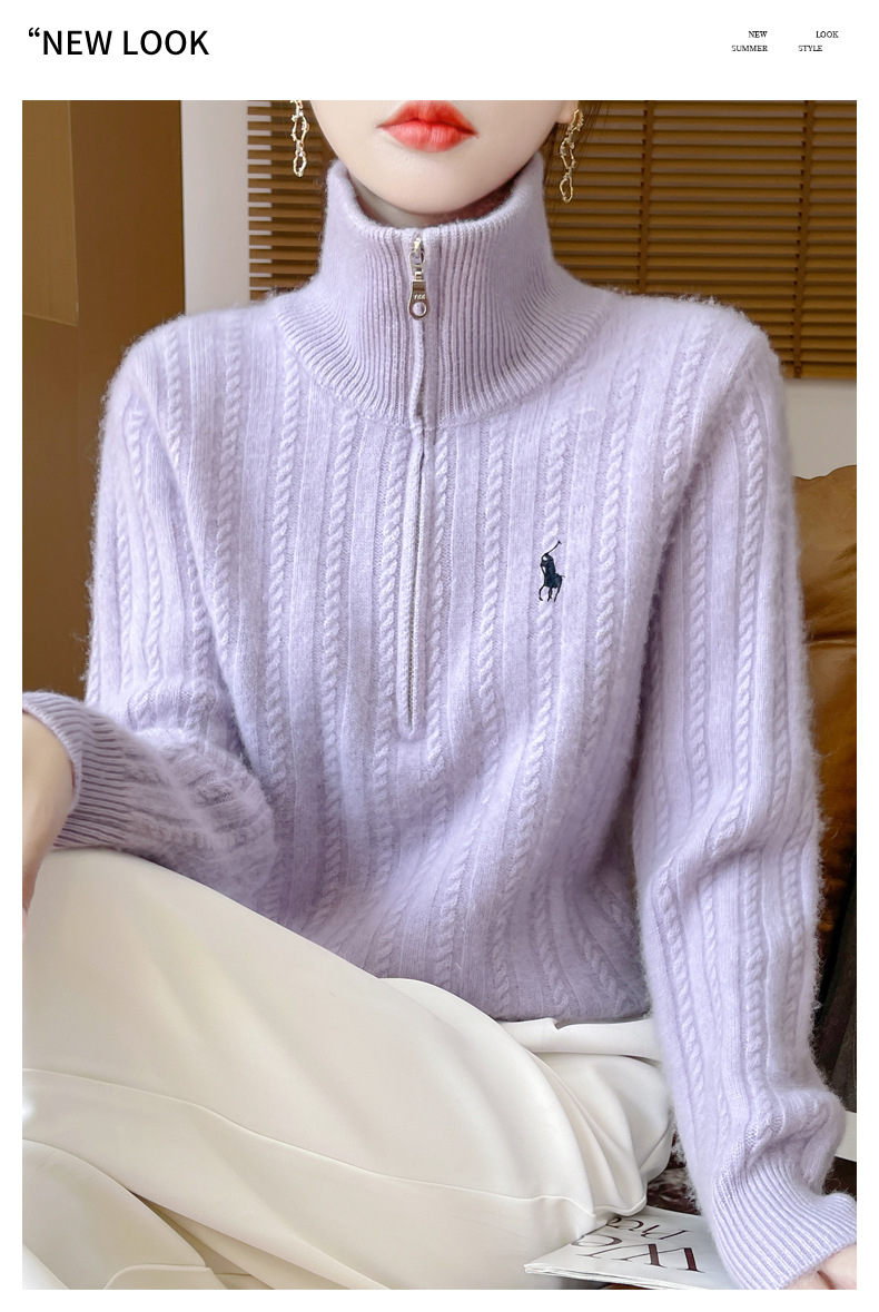 丁摩 100%纯羊毛衫女装针织毛衣开衫绞花刺绣女式羊毛衫NJR946