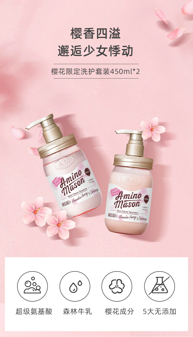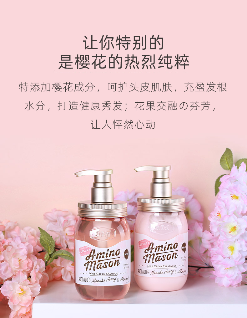 日本进口 Aminomason樱花滋养润泽保湿氨基酸洗发水/护发素450ml