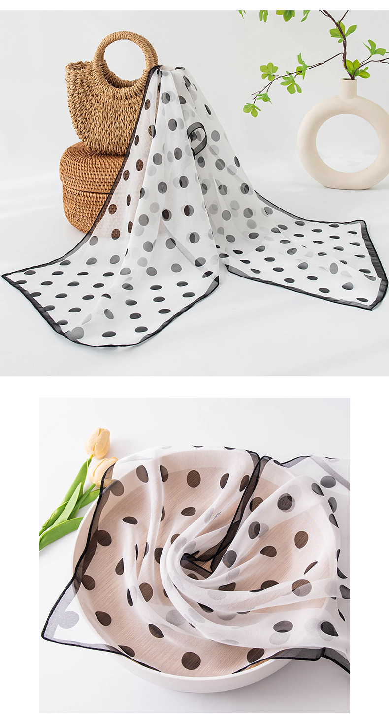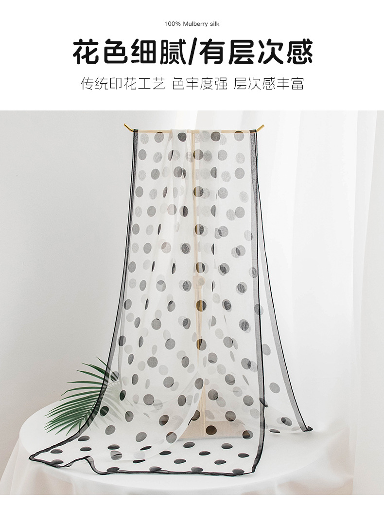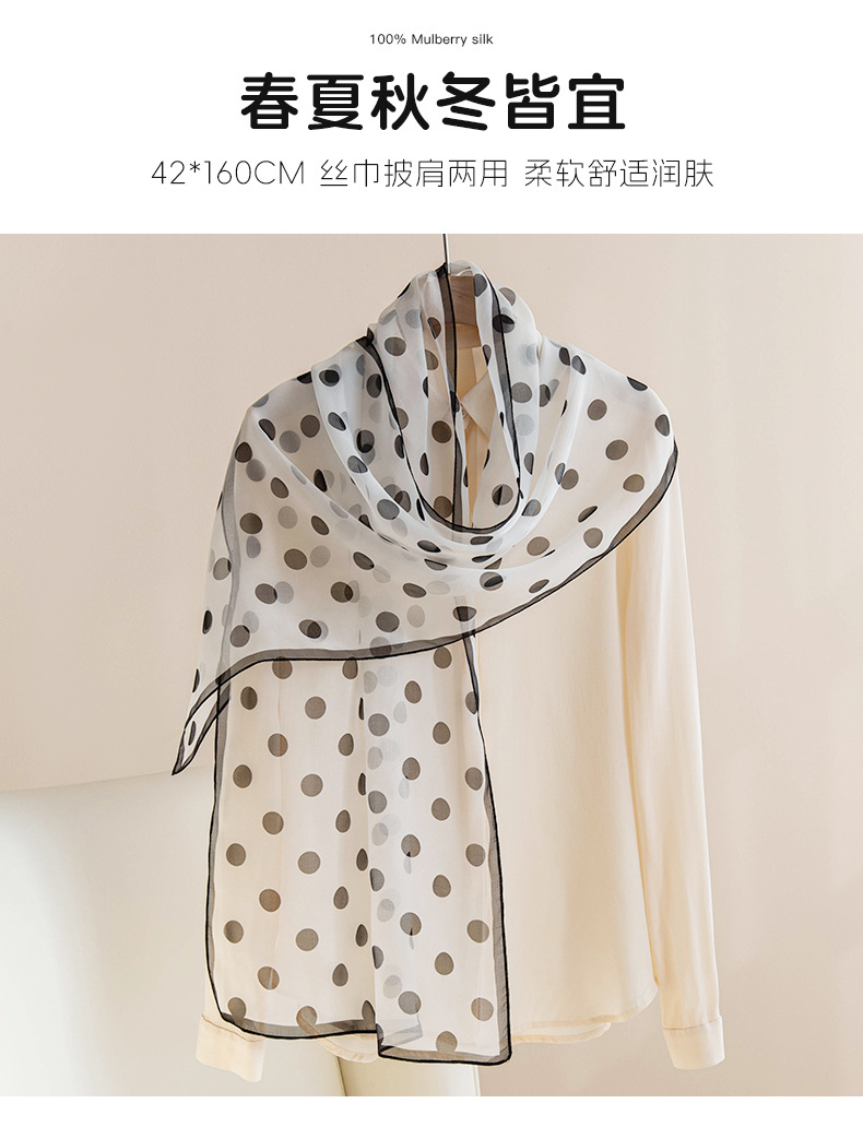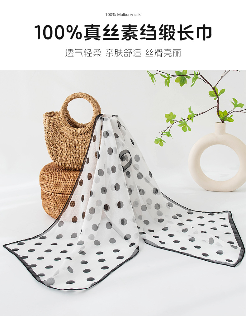 丁摩 高端法式桑蚕丝丝巾黑色波点丝巾真丝女长条高级感围巾披肩薄春夏5ZF-9606