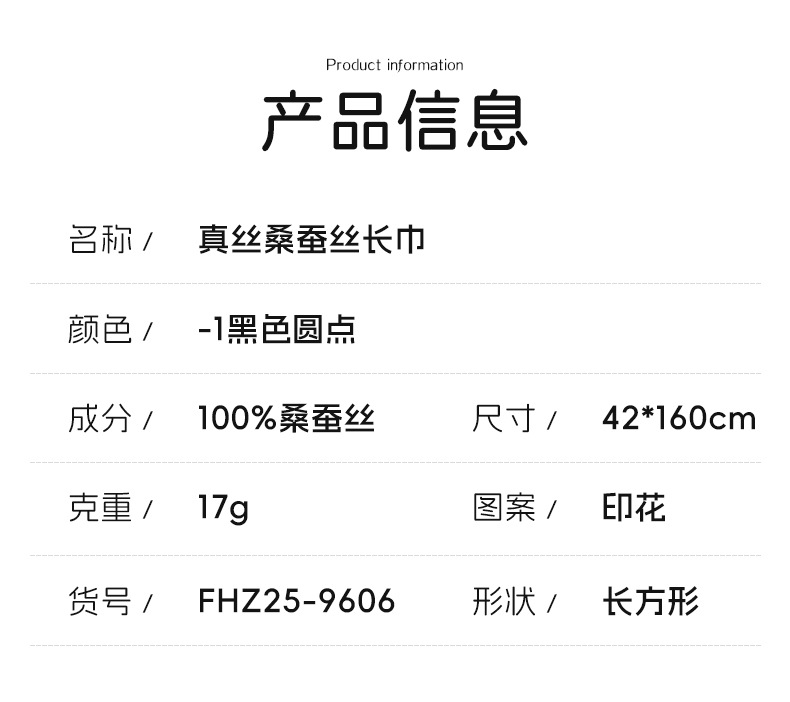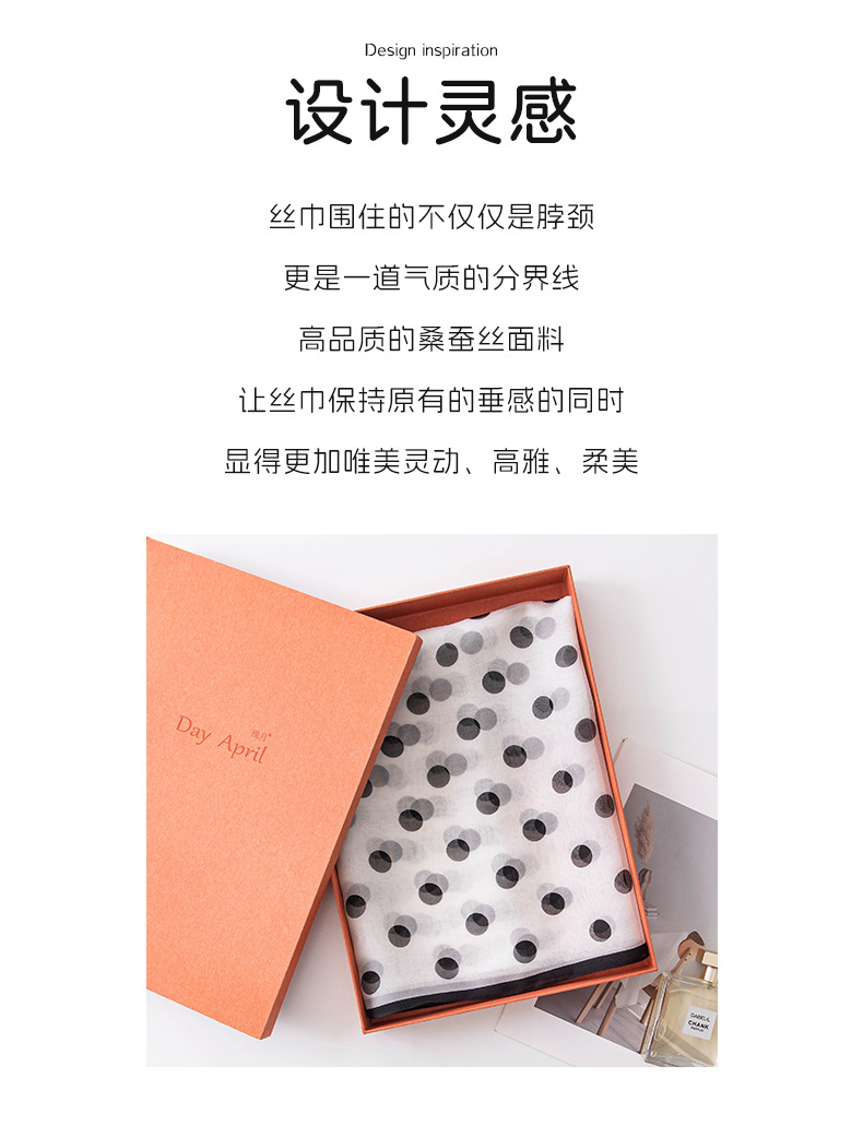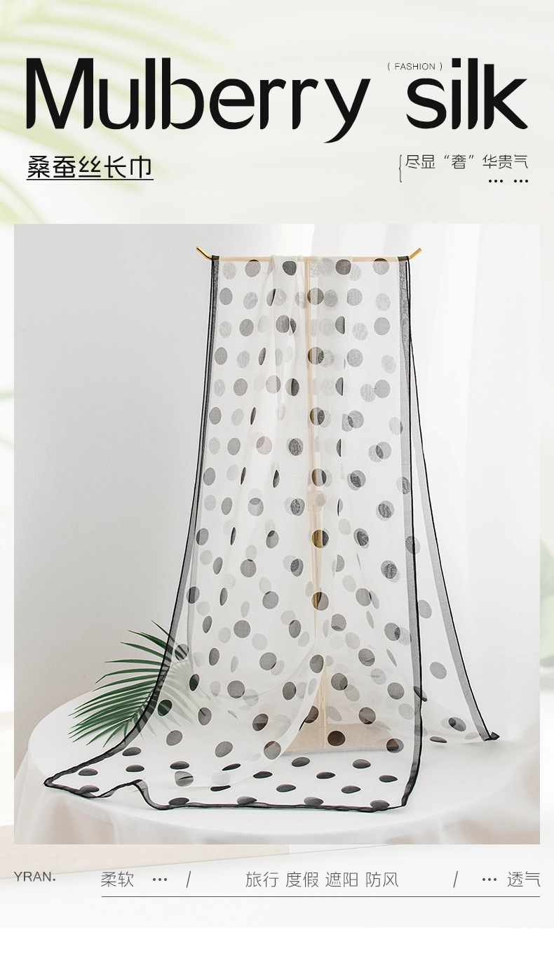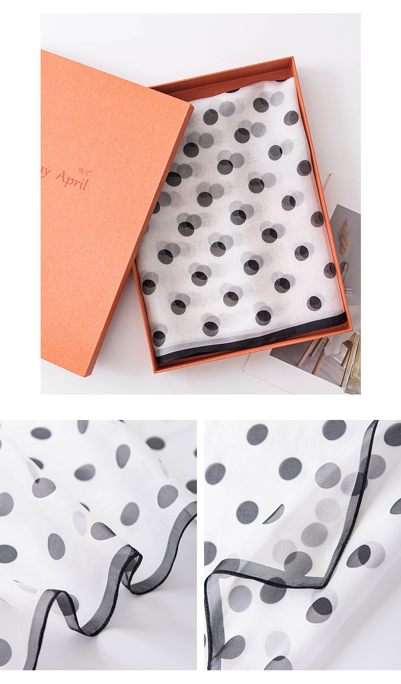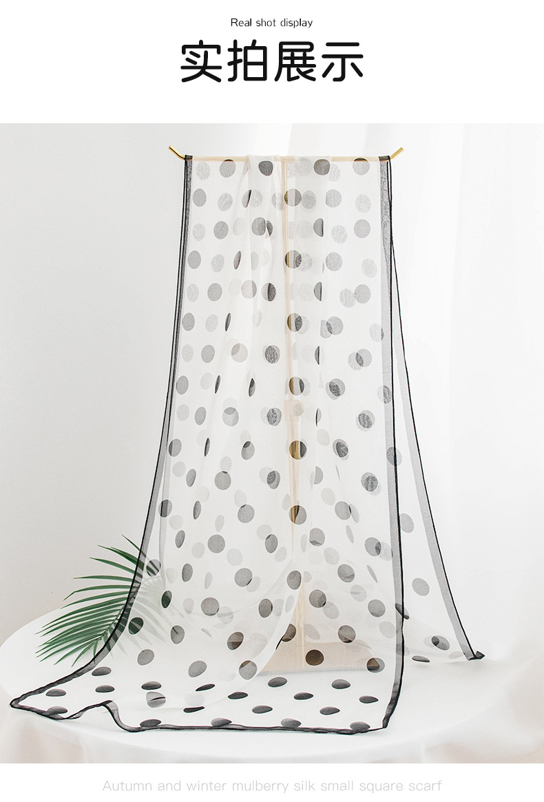 丁摩 高端法式桑蚕丝丝巾黑色波点丝巾真丝女长条高级感围巾披肩薄春夏5ZF-9606