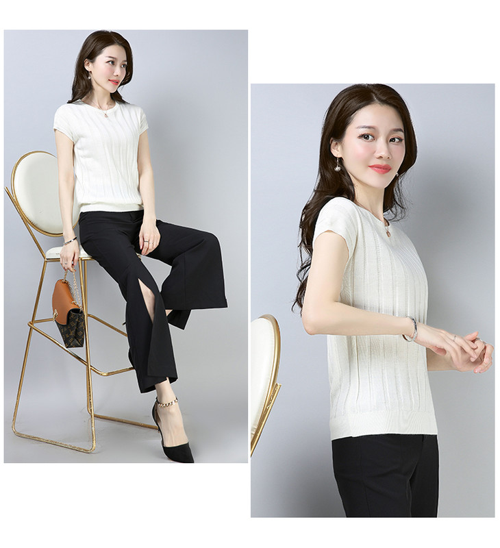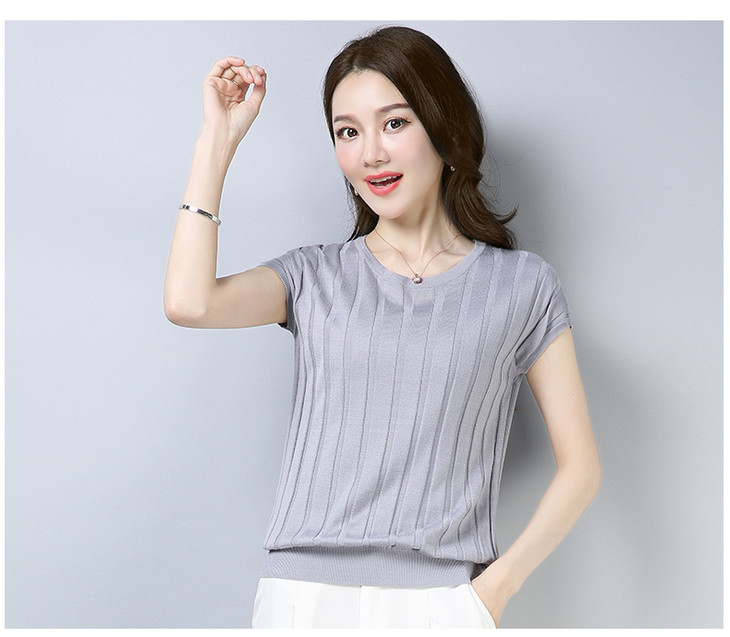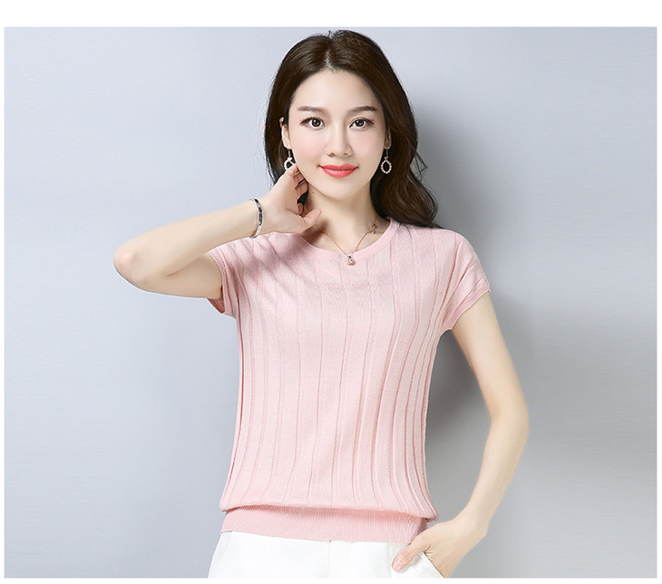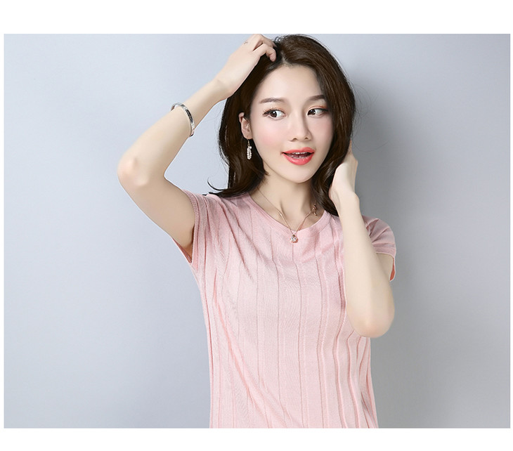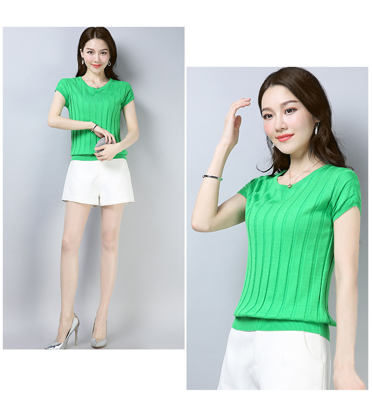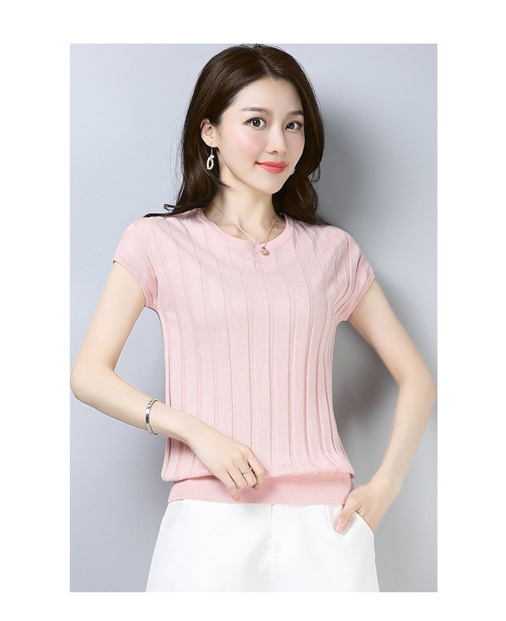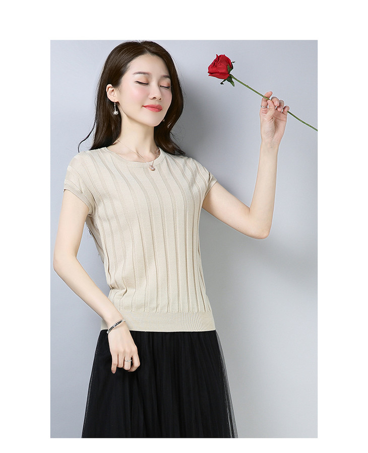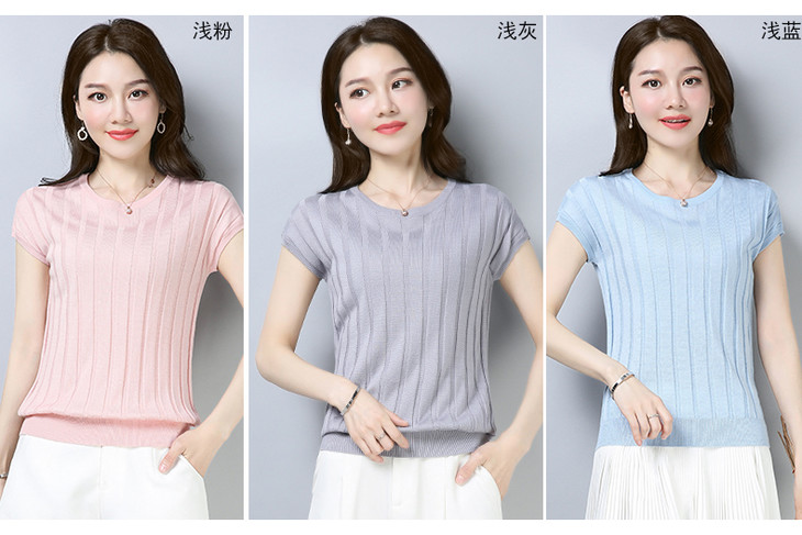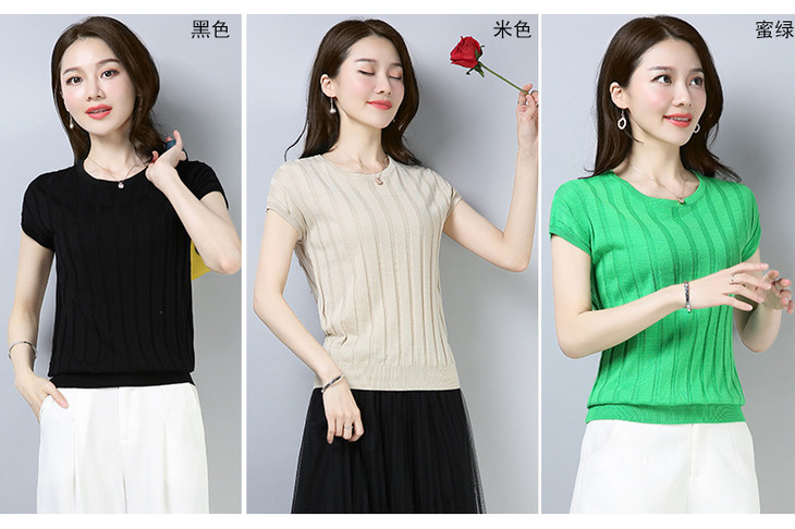 PY-39801 春夏季短袖t恤韩版新款冰丝针织衫套头打底衫T恤女上衣
