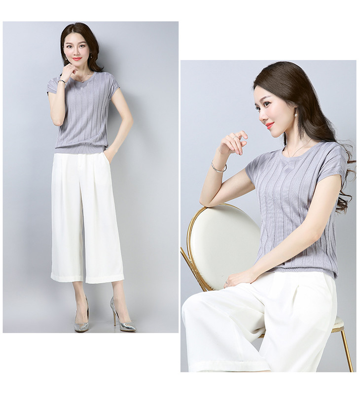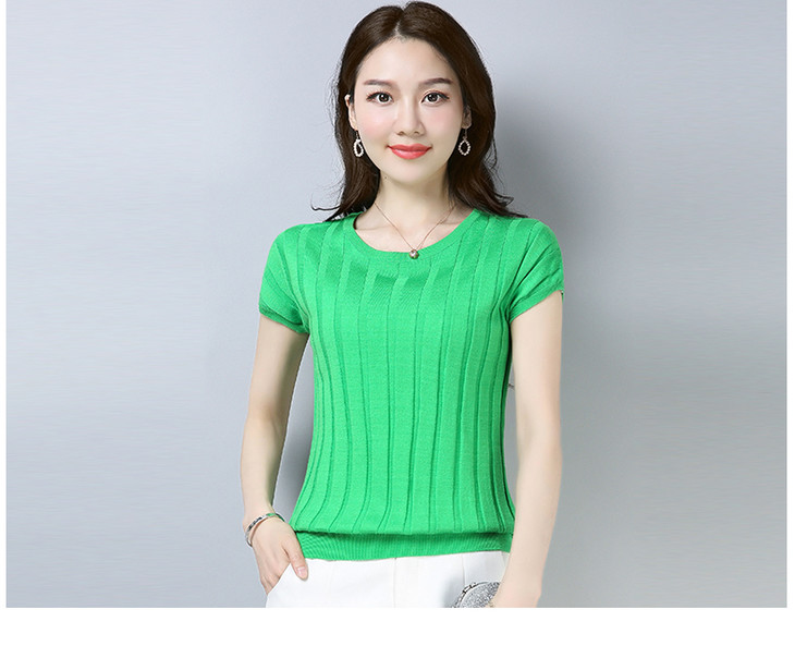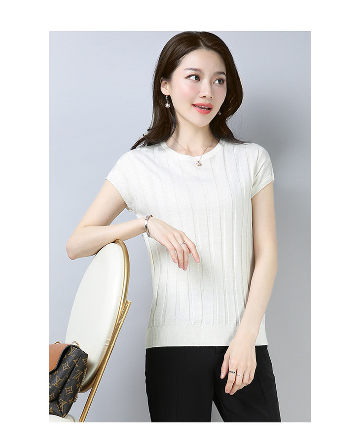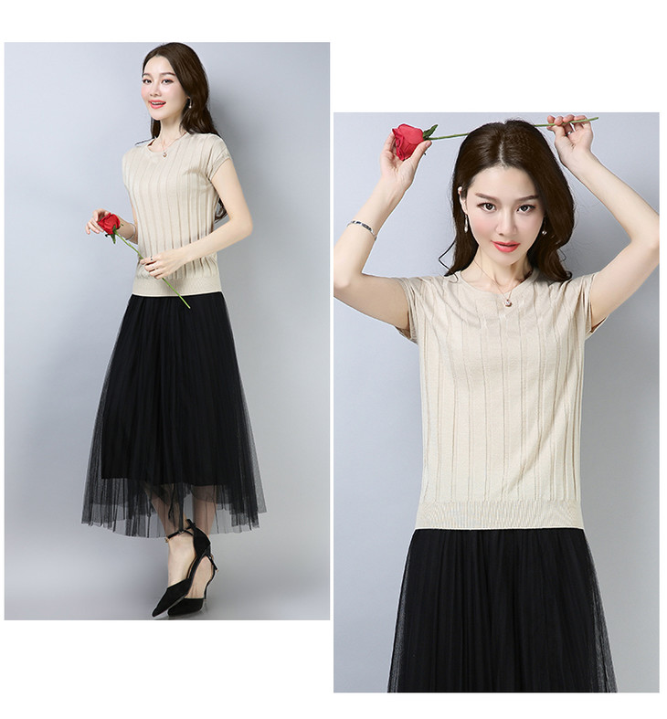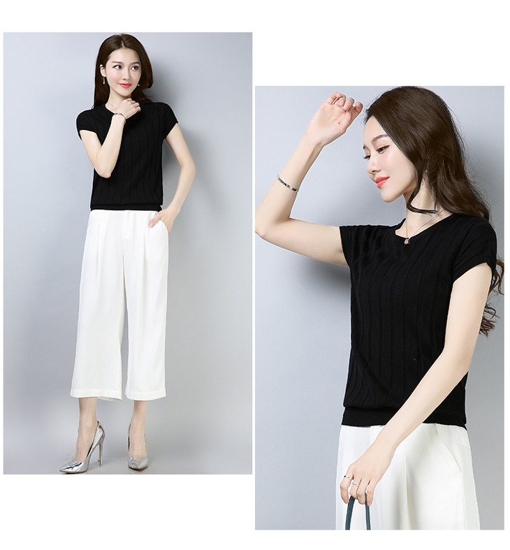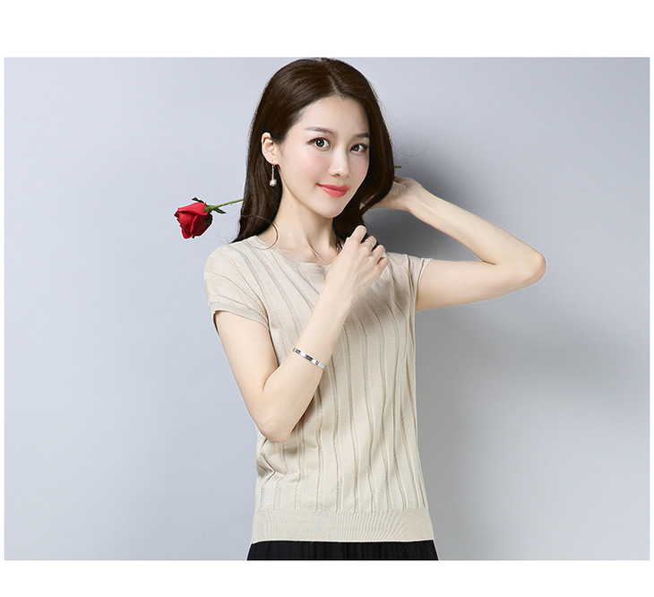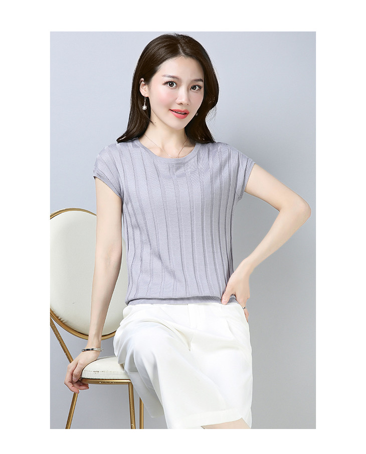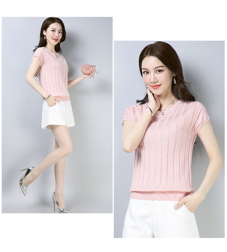 PY-39801 春夏季短袖t恤韩版新款冰丝针织衫套头打底衫T恤女上衣