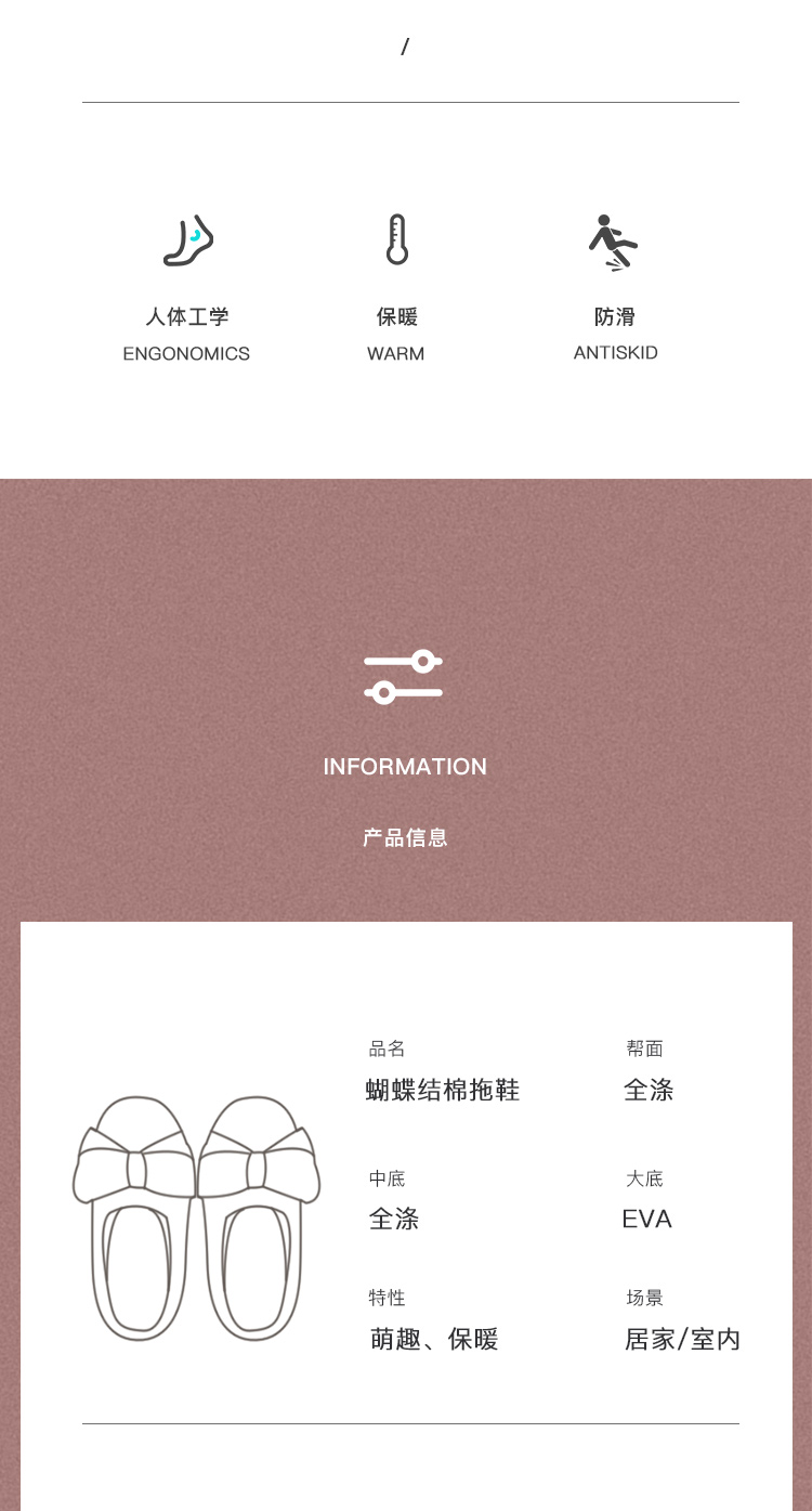 智庭可爱蝴蝶结秋冬居家棉拖鞋ZT2120
