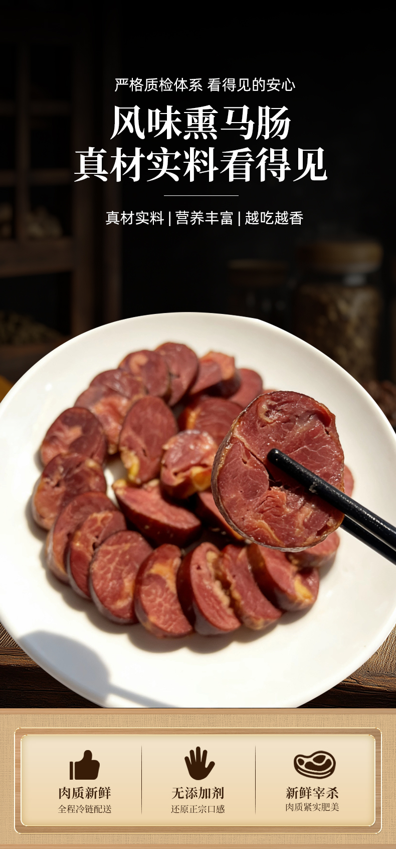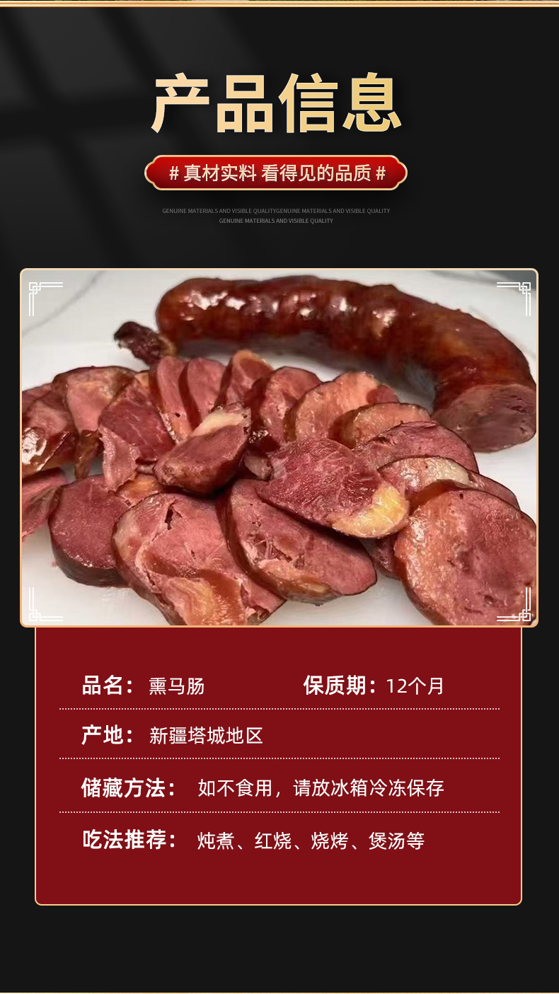 额雁·新疆塔城熏马肠1kg 传统熏制 口感鲜美