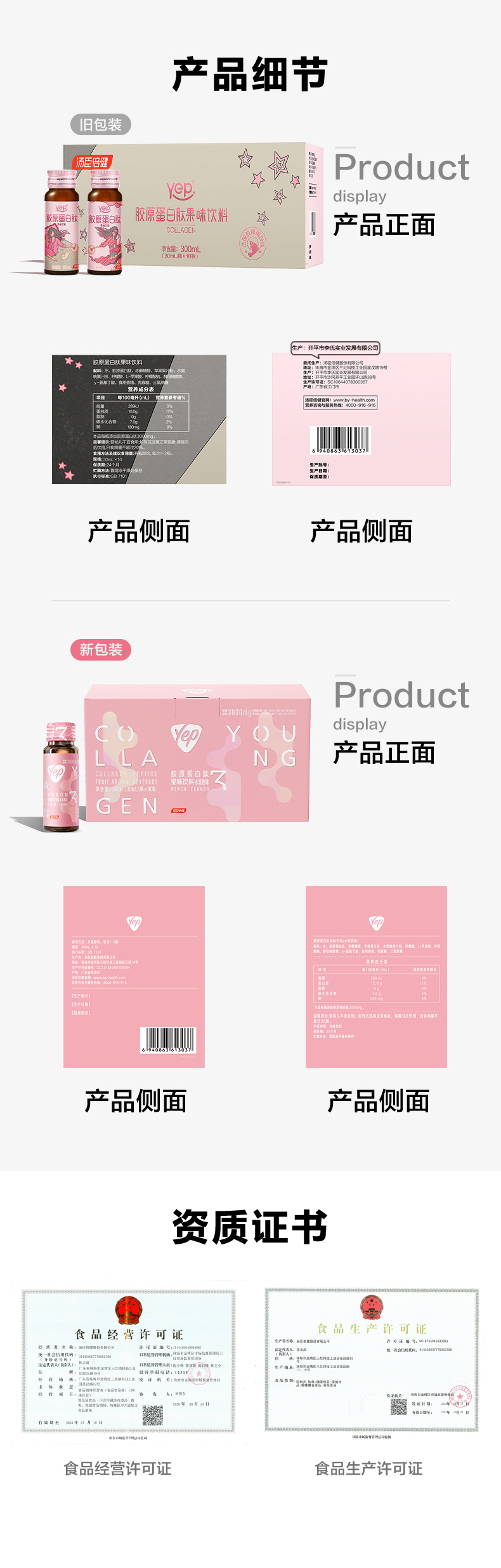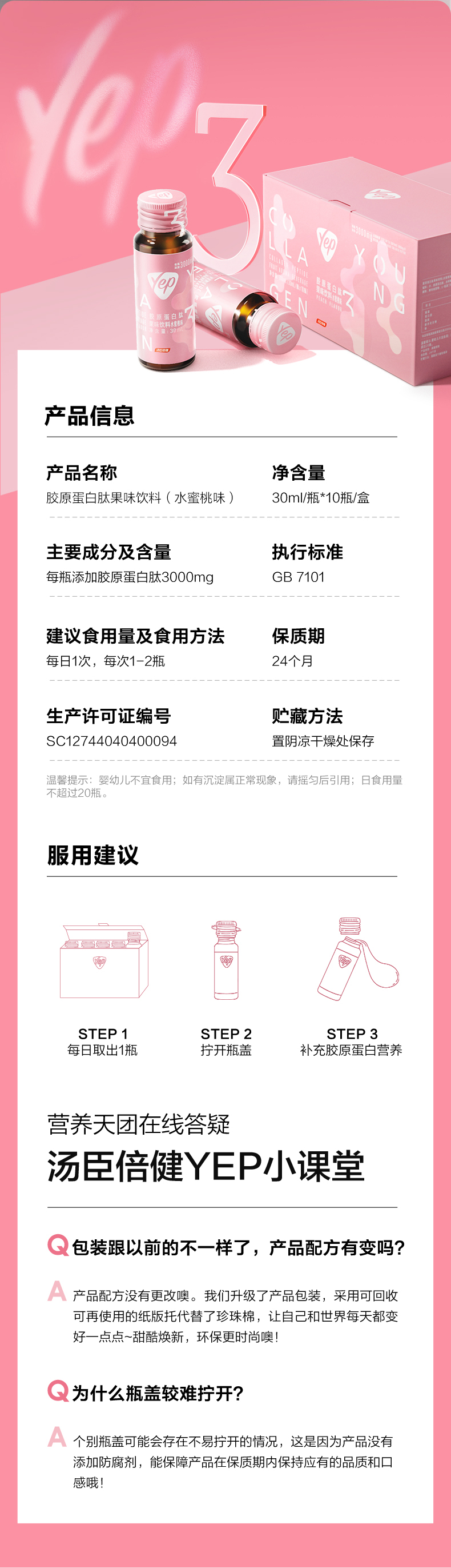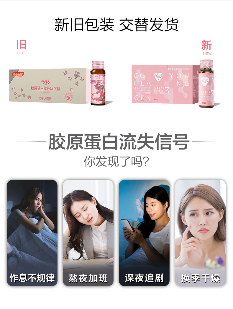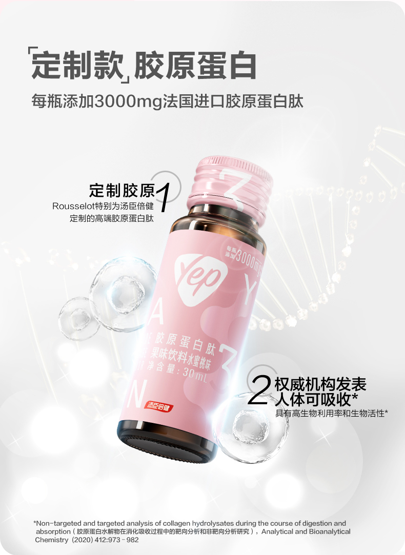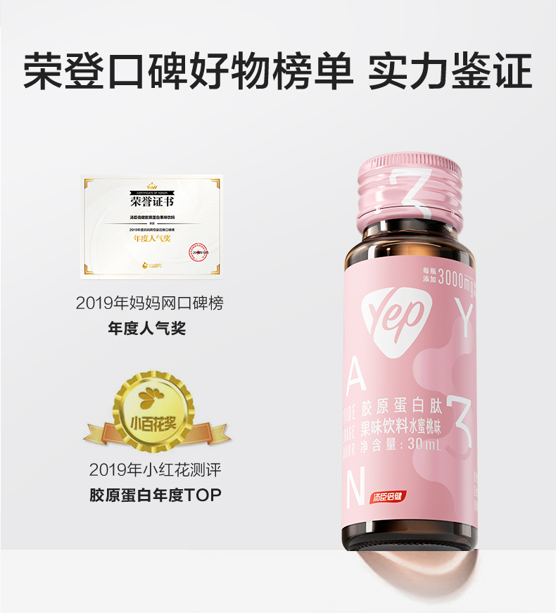 汤臣倍健yep小粉瓶胶原蛋白肽口服液果味饮料30ml*10支/盒