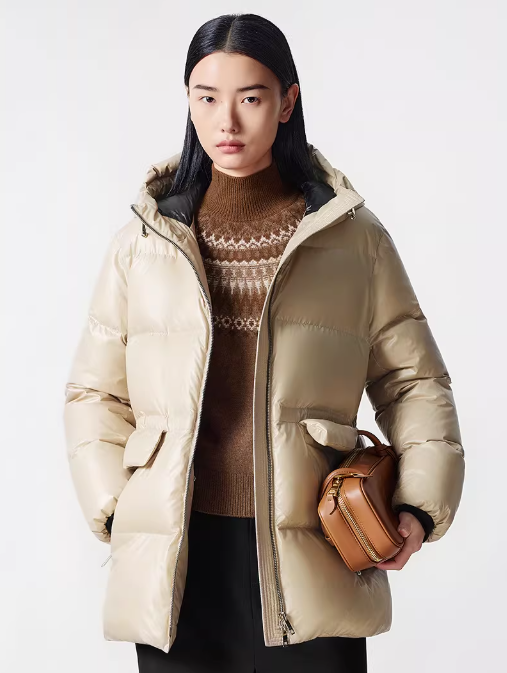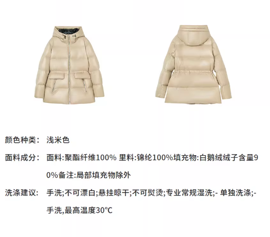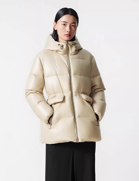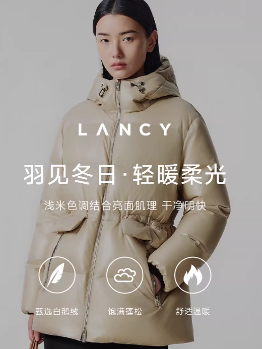 朗姿 【匈牙利白鹅绒】 亮面连帽收腰中长羽绒服LCGD98OYC007