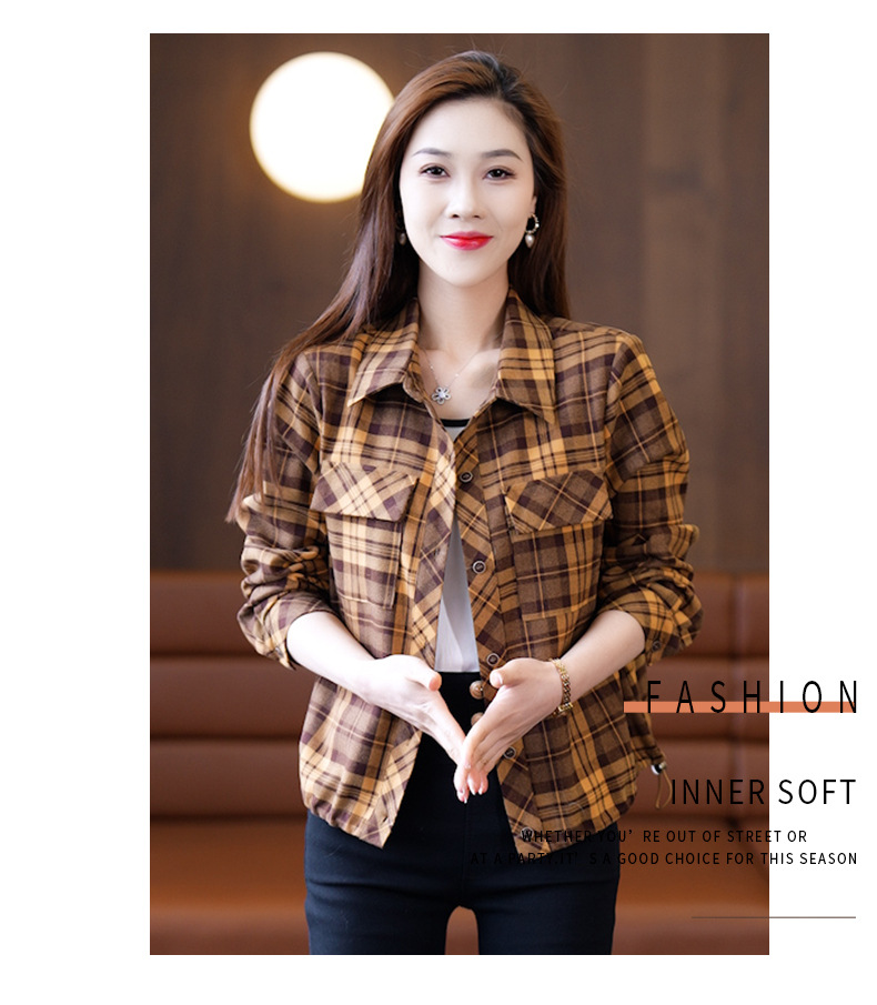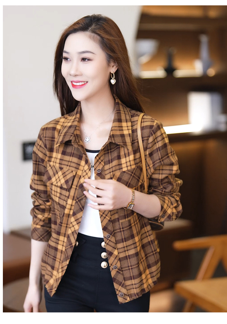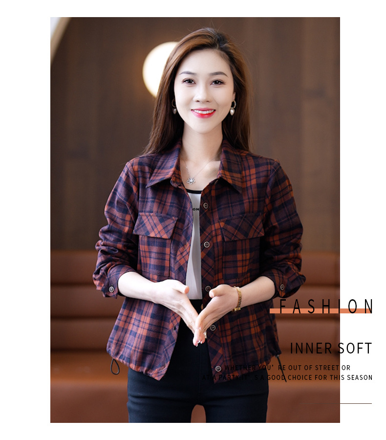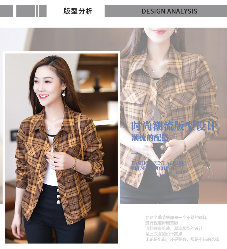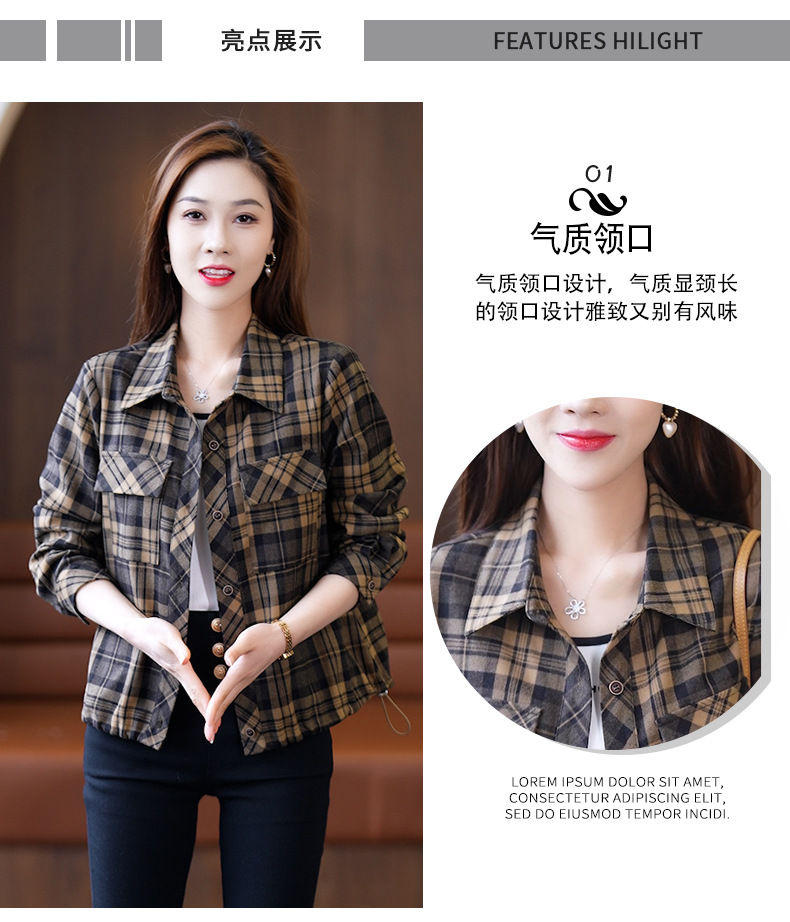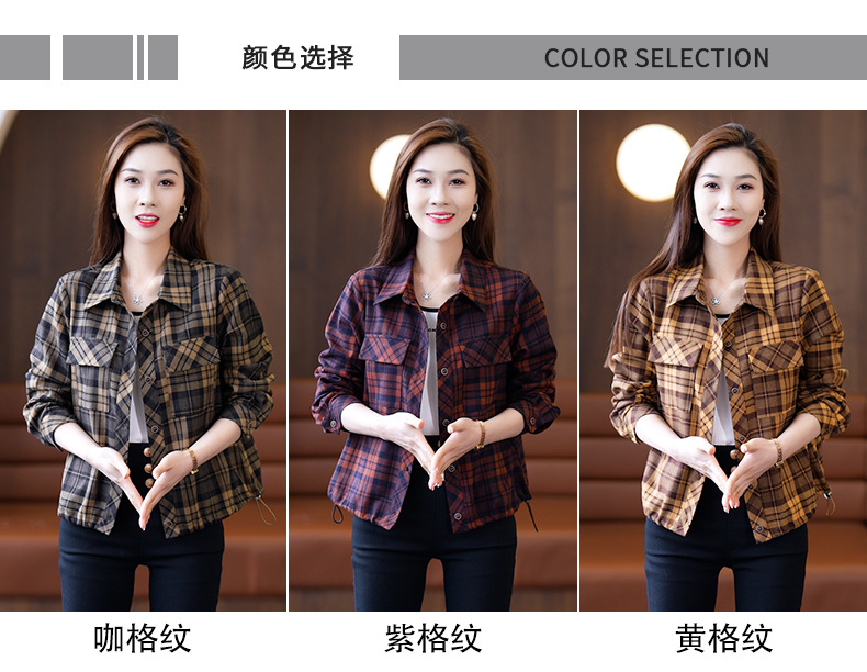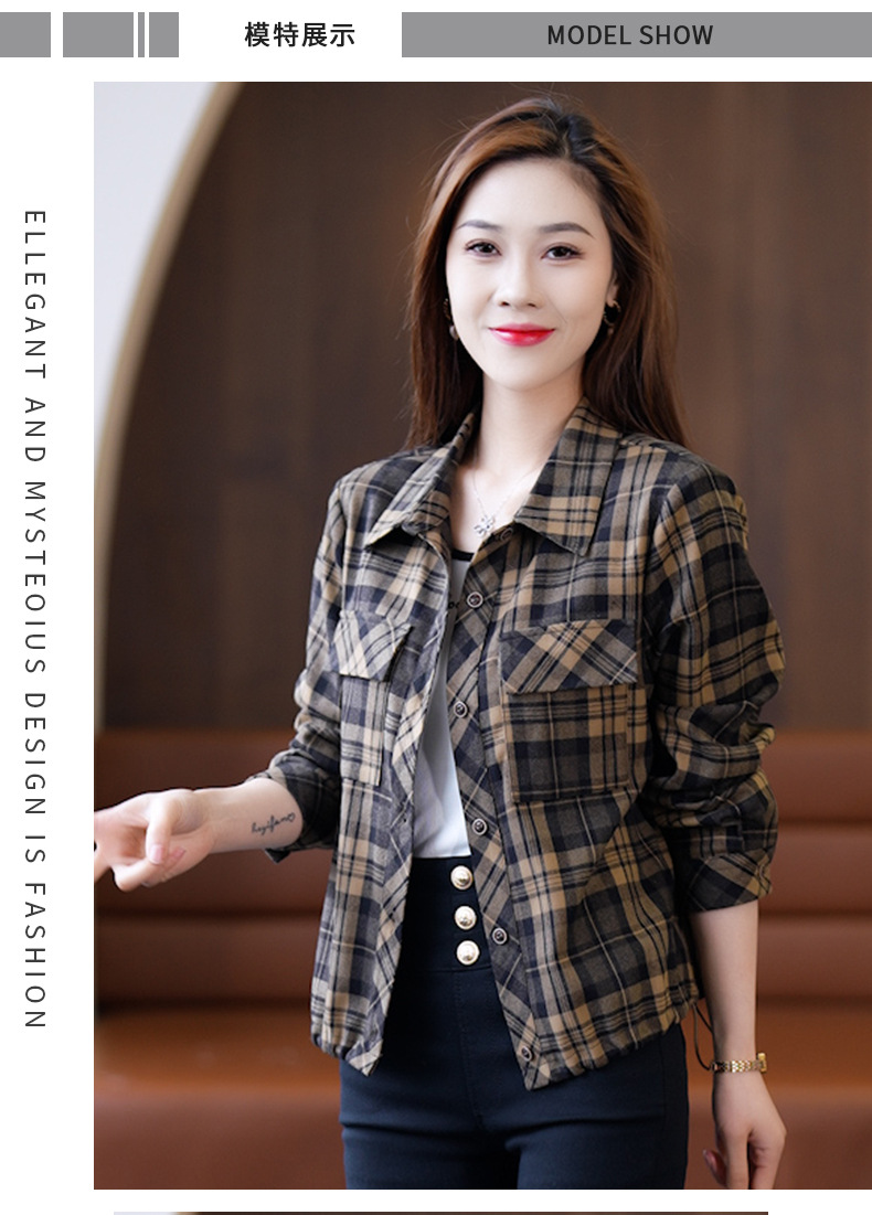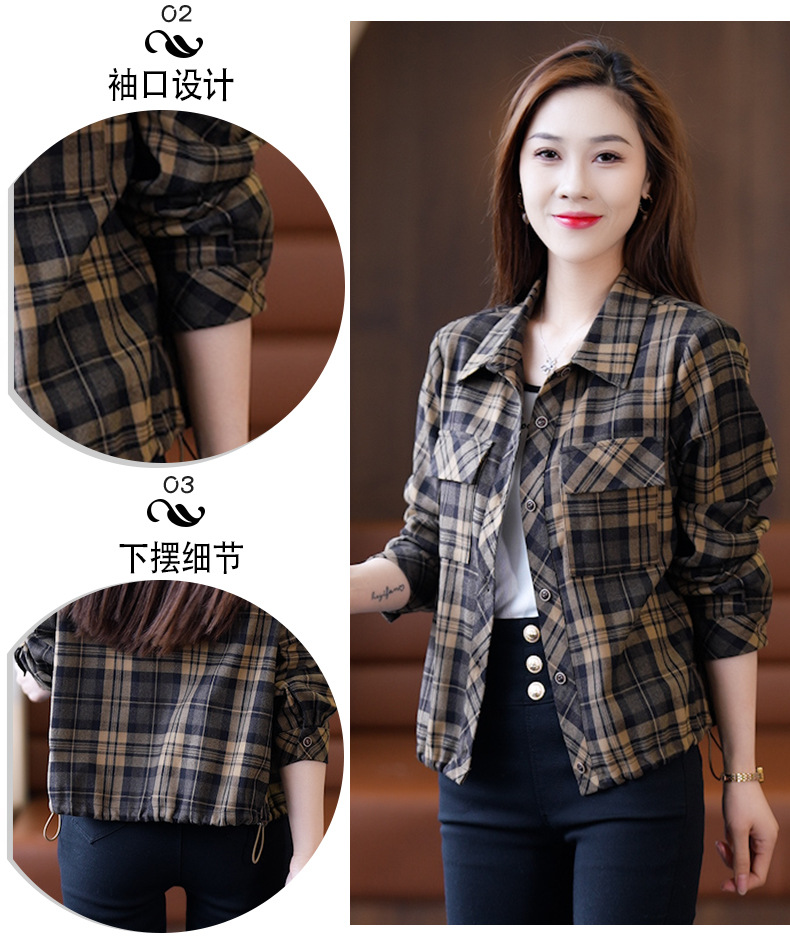 HT1000835129 长袖格子衬衫外套女春秋2024年早春新款短款衬衣显瘦韩版女士上衣