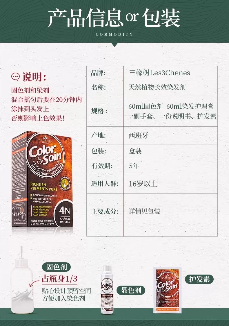 法国3chenes三橡树染发剂染发膏