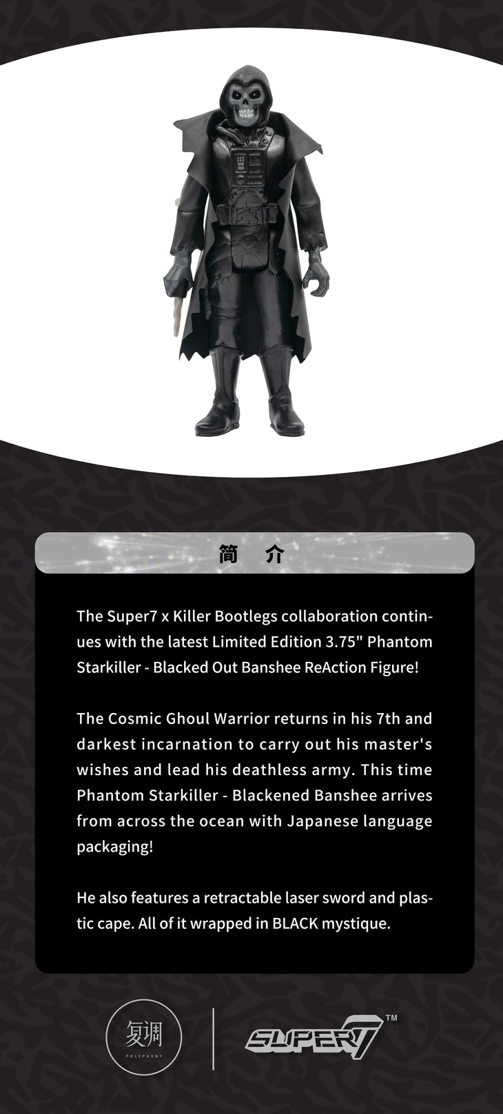 Super7 弑星幽灵 黑色 Phantom Starkiller 复古挂卡 Killer Bootlegs ReAction Figure Blacked Out Banshee