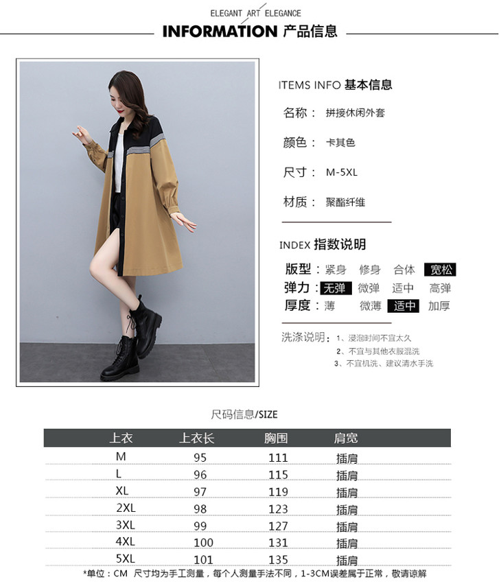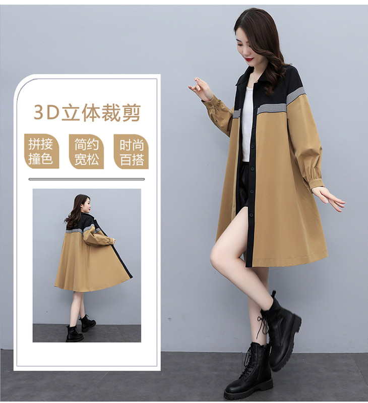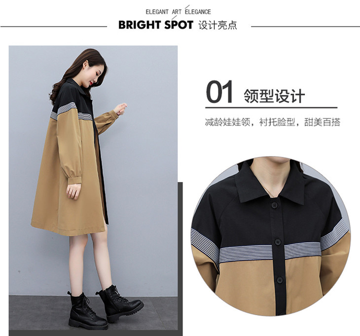 XYFS6203 早秋新款韩版拼接宽松休闲气质中长款女风衣外套