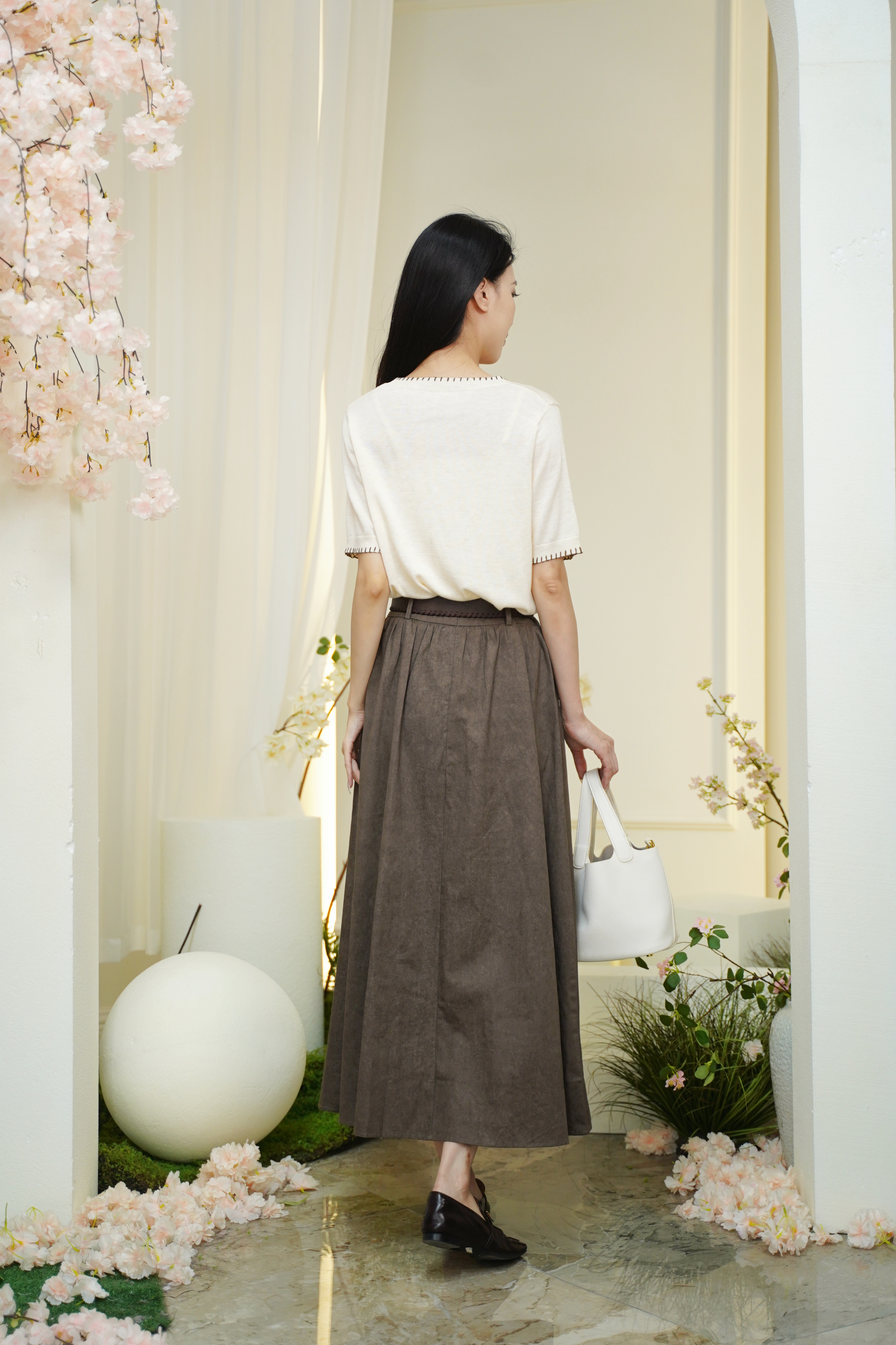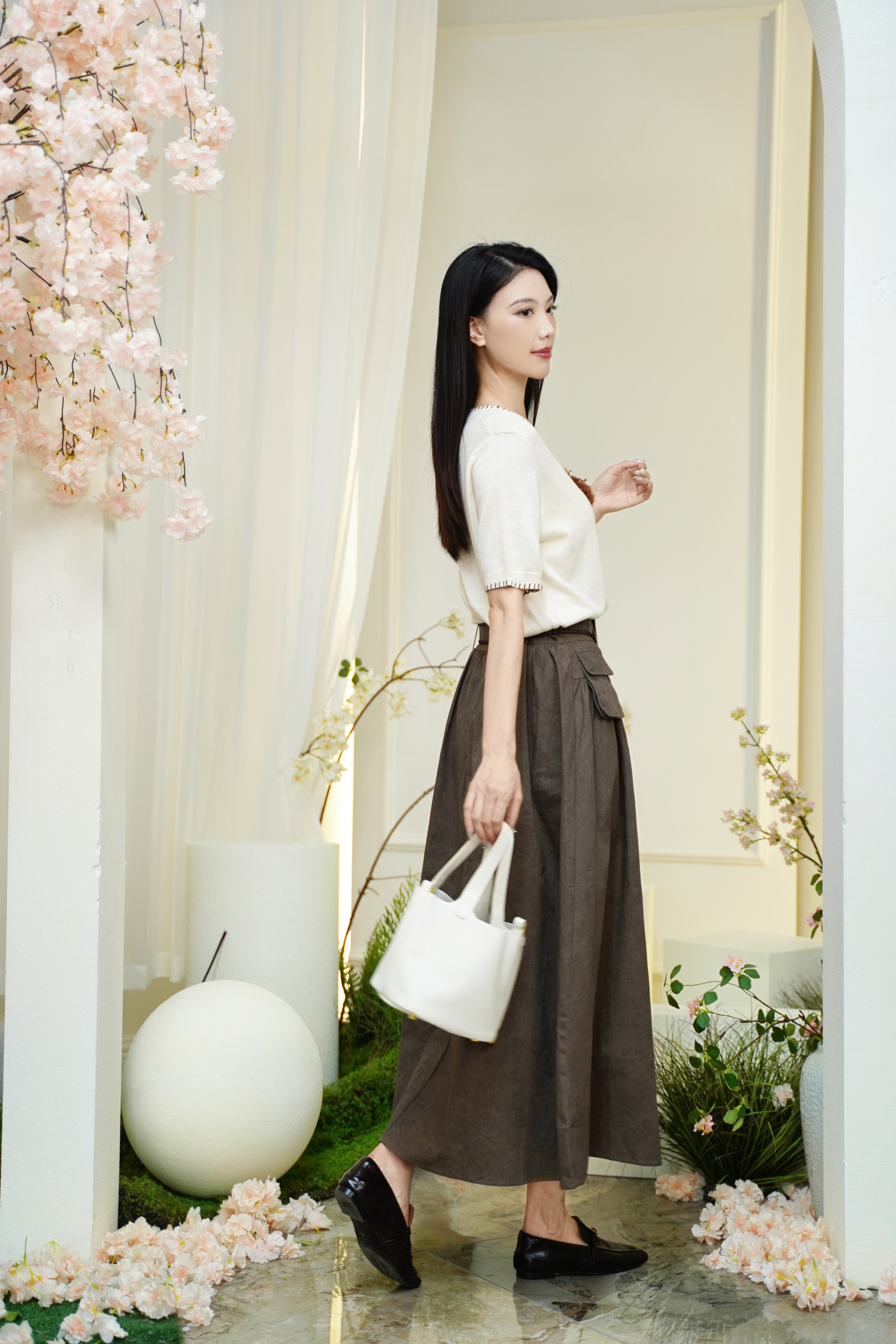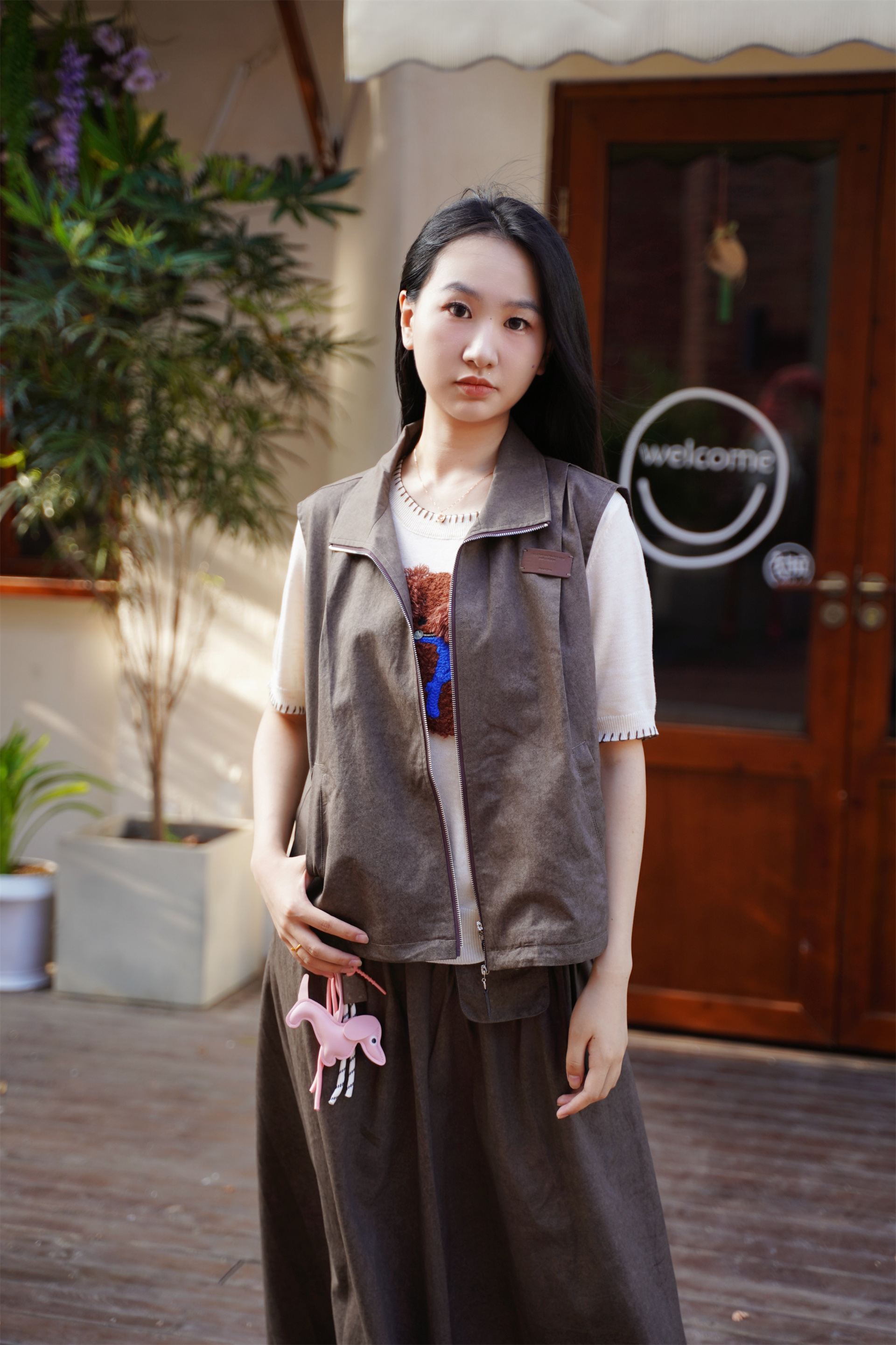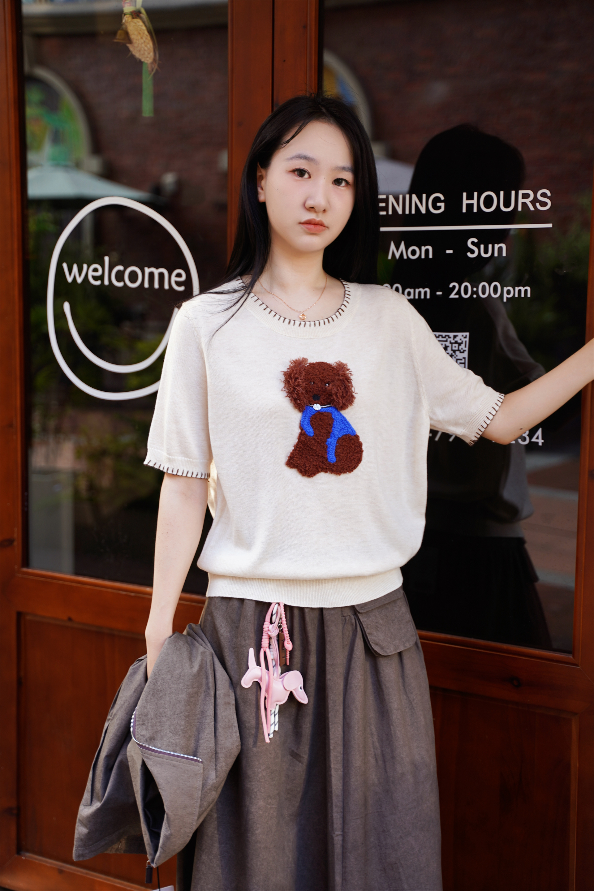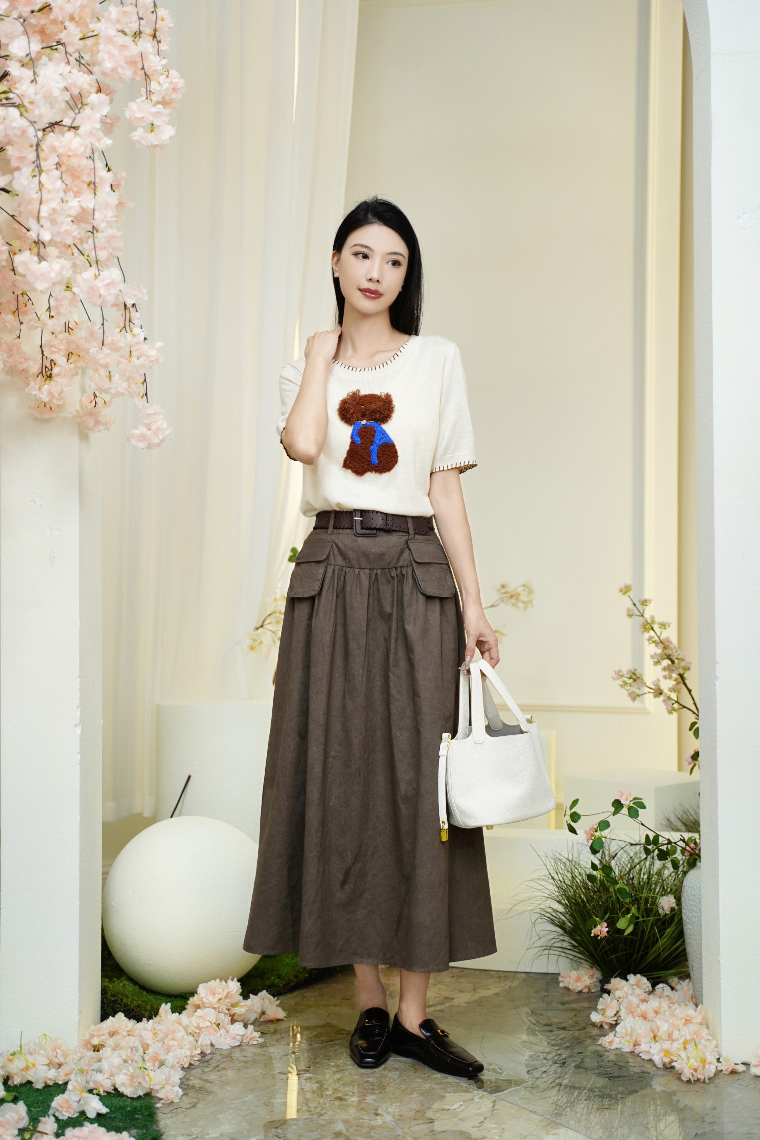 ✔针织短袖,卡通图案超灵动,✔搭配同色系显瘦马甲+同色系垂感半裙,摩卡慕斯色调把温柔值拉满🍂