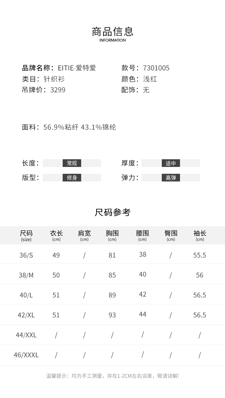 EITIE爱特爱春季新款时尚简约修身显瘦针织衫7301005
