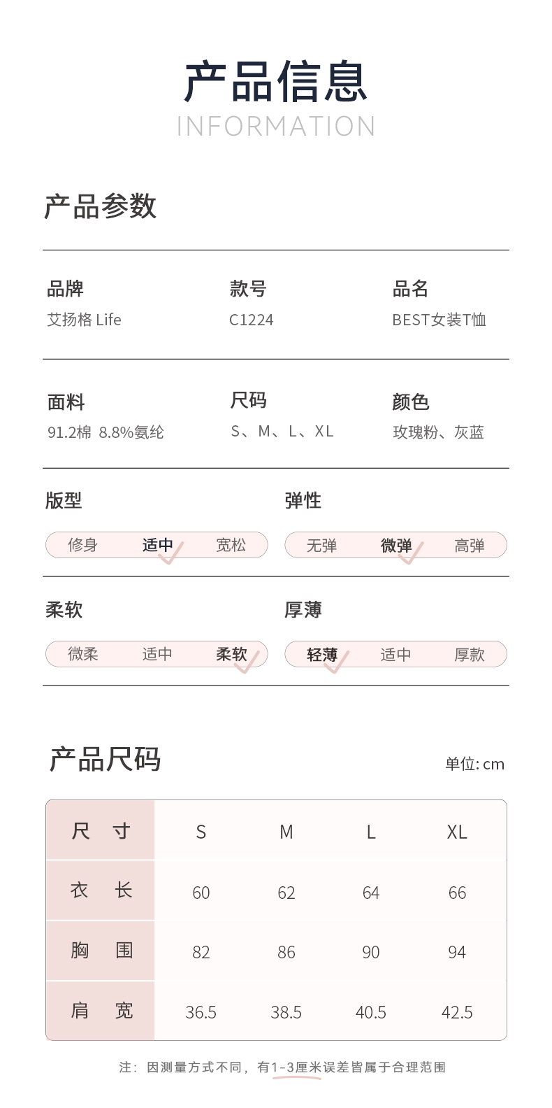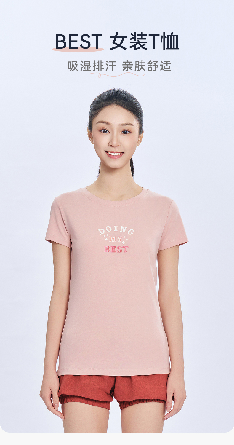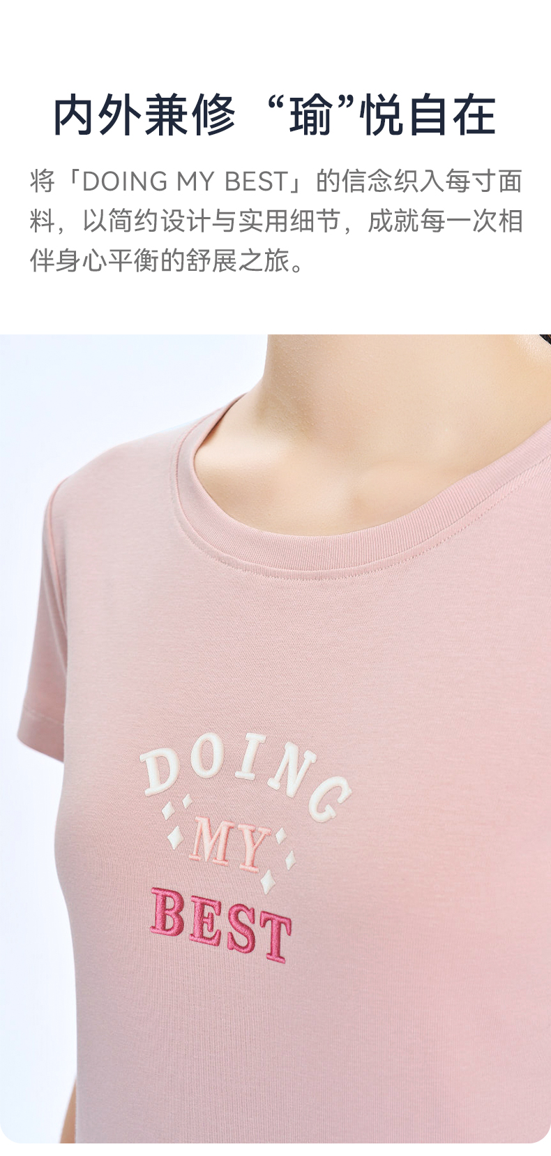 艾扬格 life C1224瑜伽BEST女装T恤 短袖 棉质面料柔软亲肤 内外兼修“瑜”悦自在将「DOINGMYBEST」的信念织入每寸面料