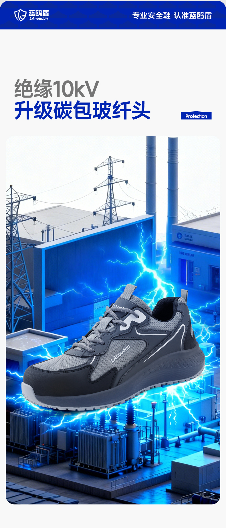 蓝鸥盾防砸防刺绝缘防滑安全鞋钢包头耐磨劳保鞋工作鞋欧标玻纤头 商品图0