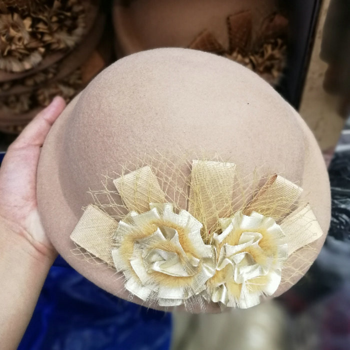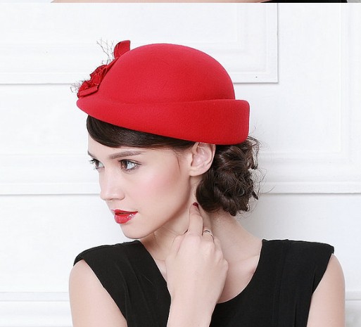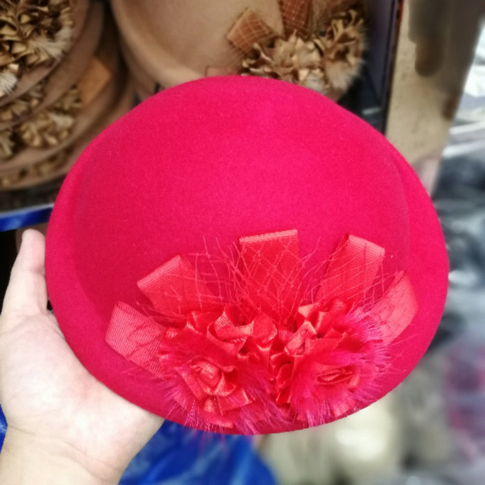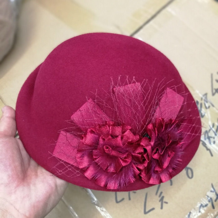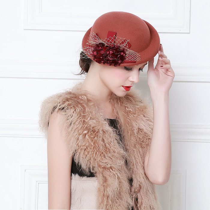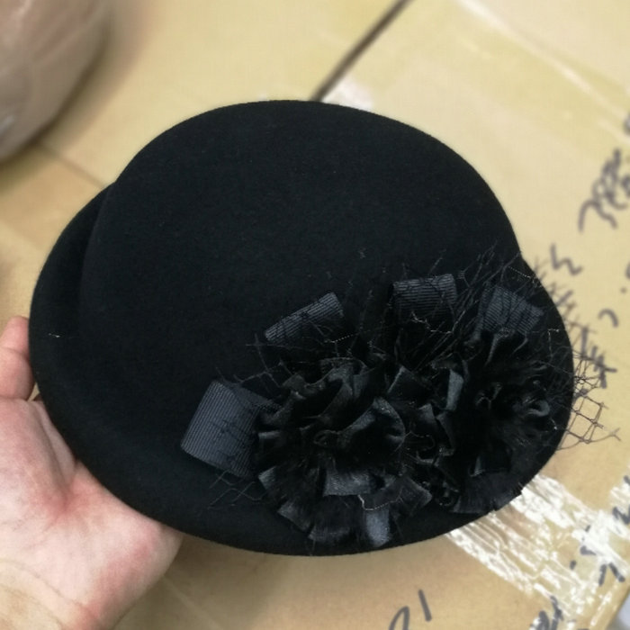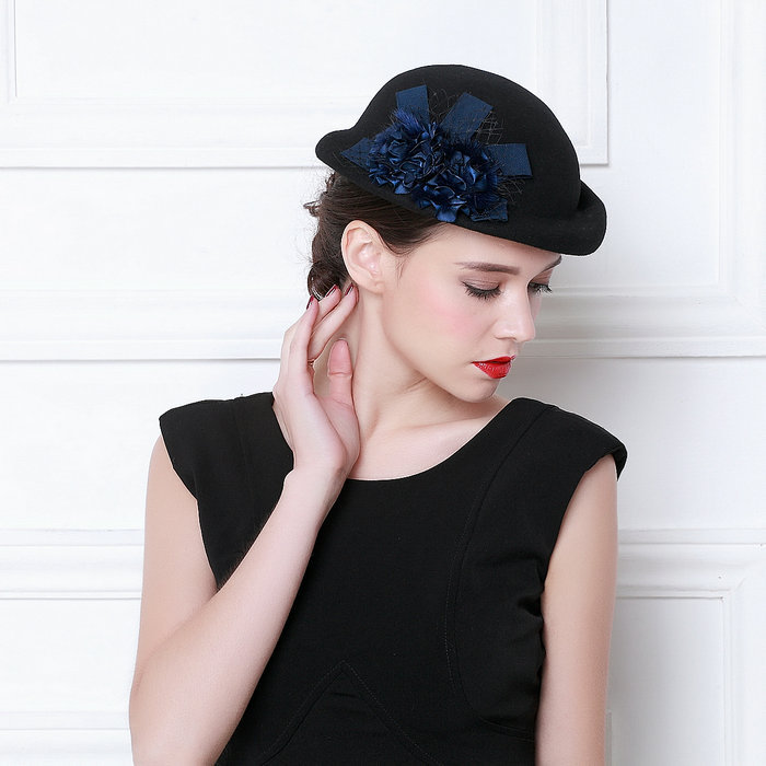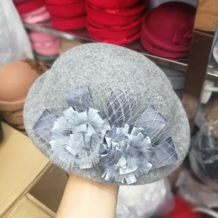 BL-秋冬季帽子女韩版潮贝雷帽英伦花朵发箍卷边空姐帽