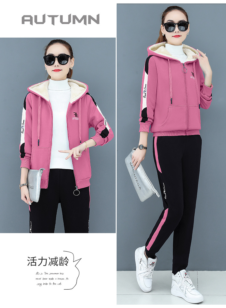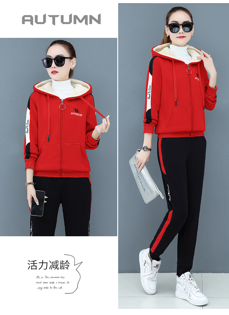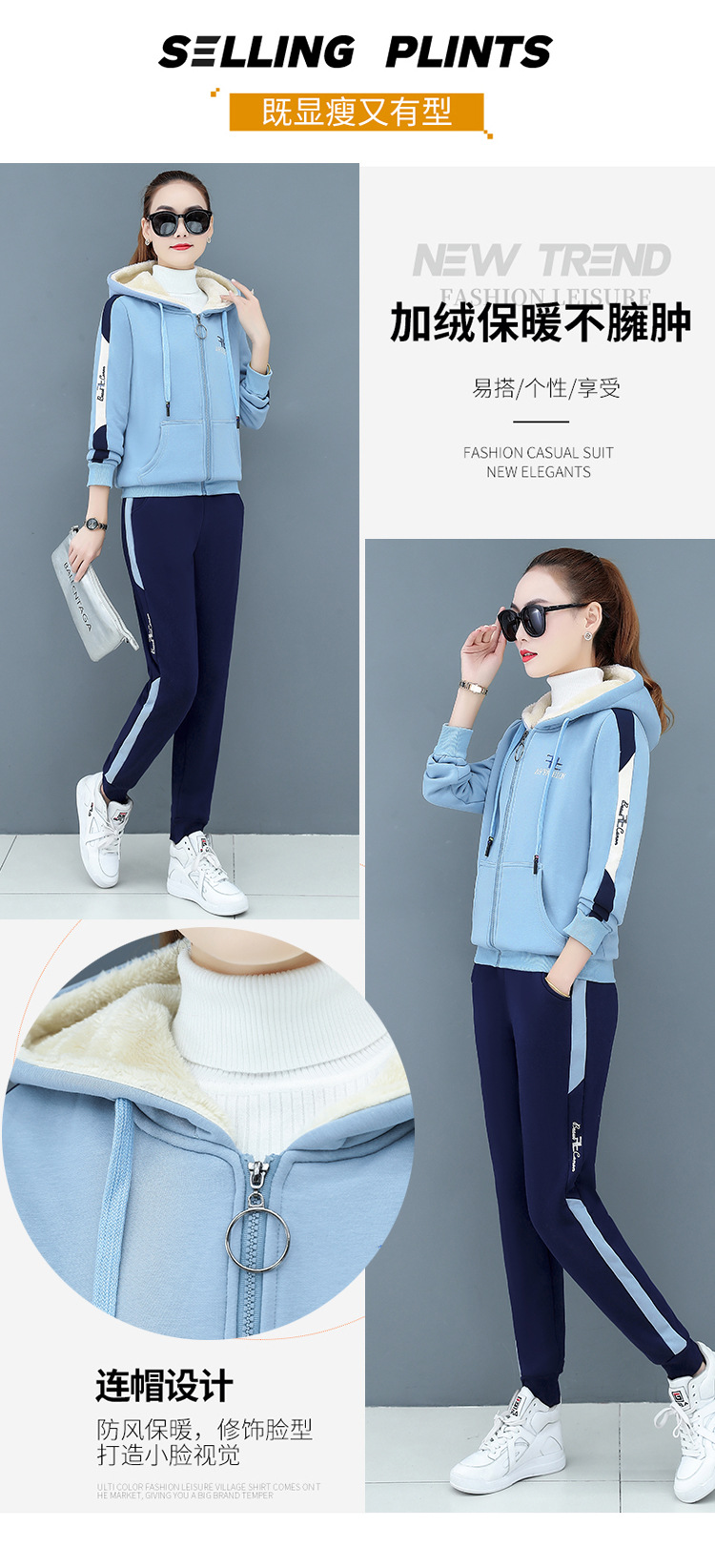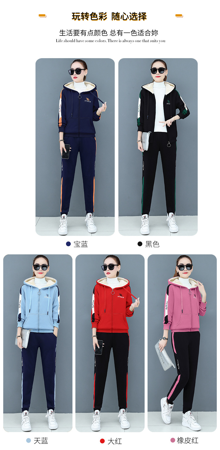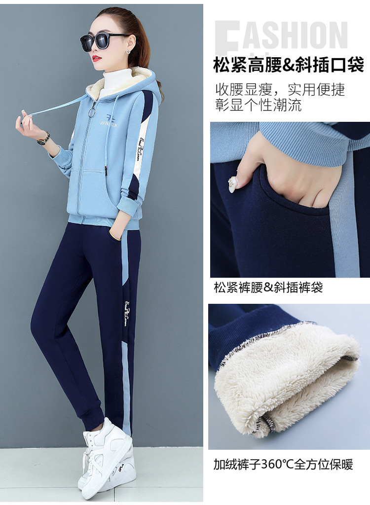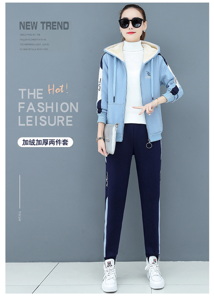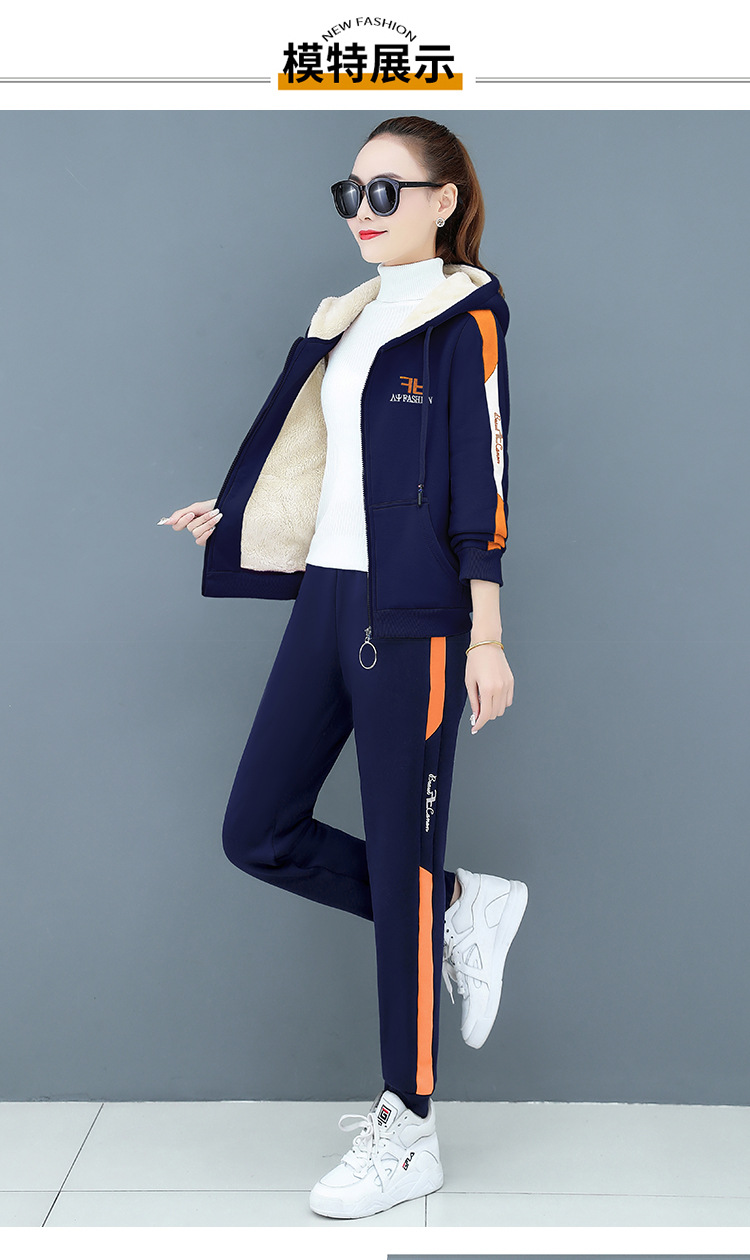 HT-1255休闲时尚显瘦加绒两件套运动套装