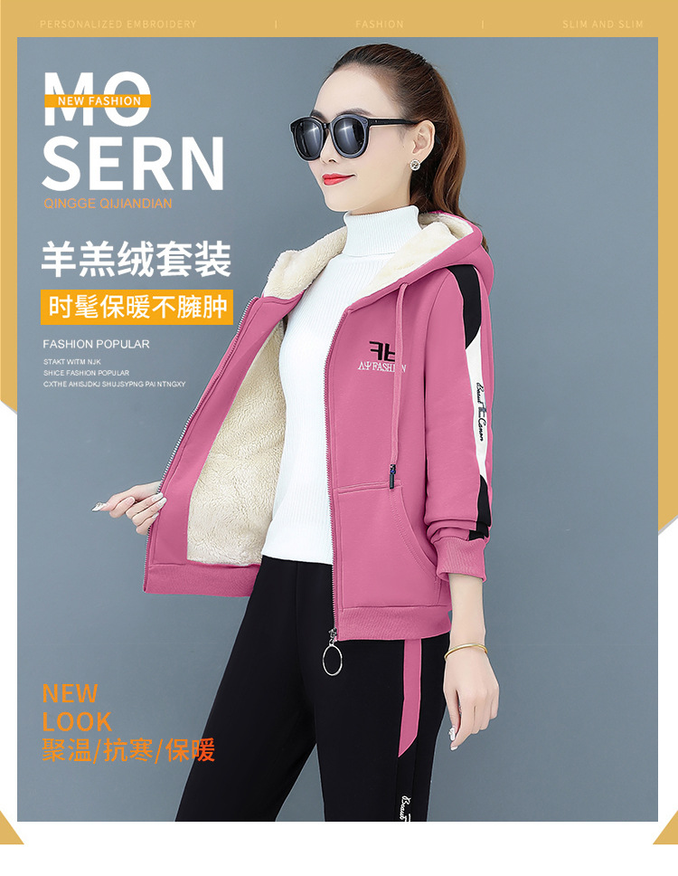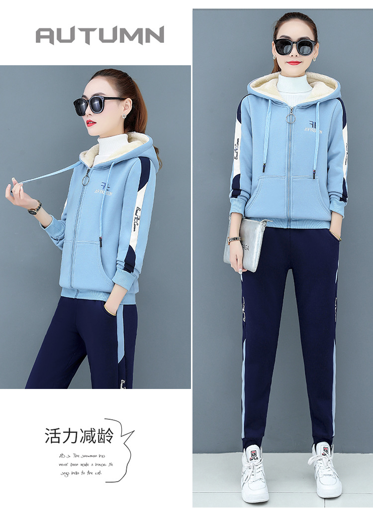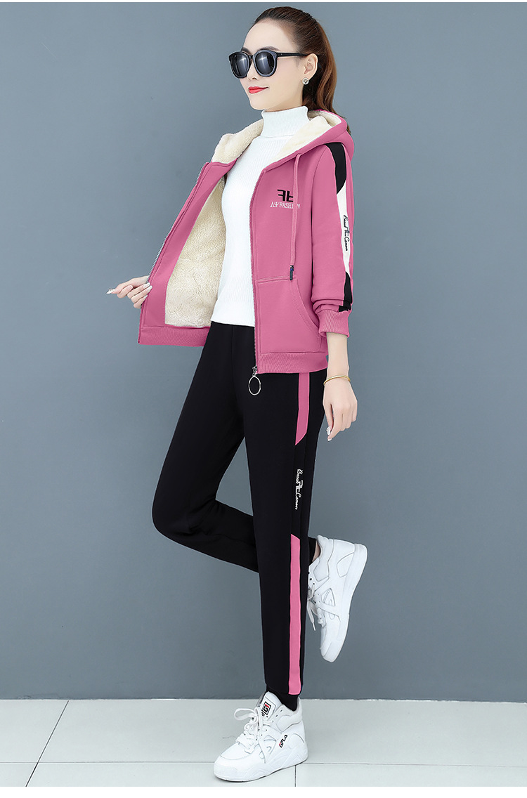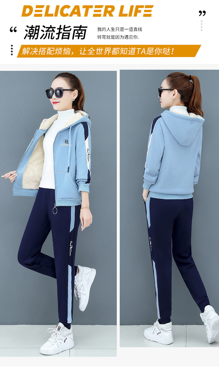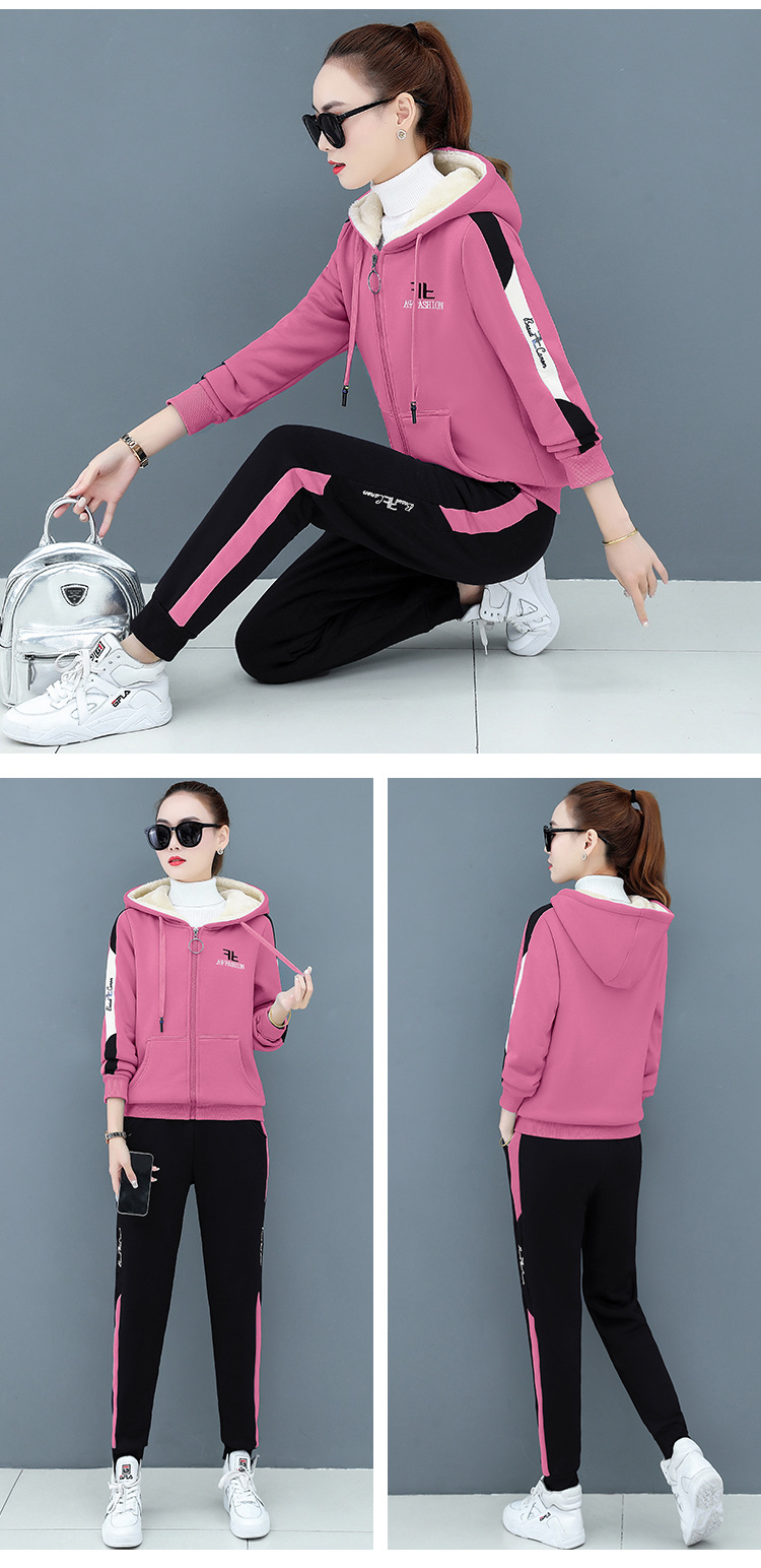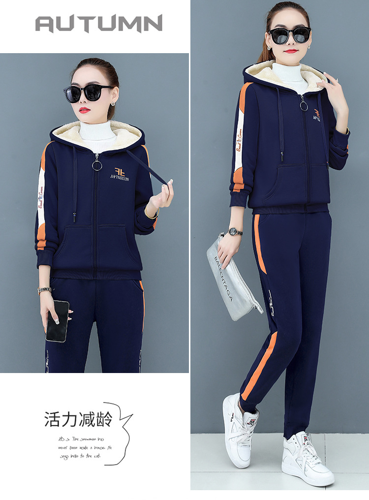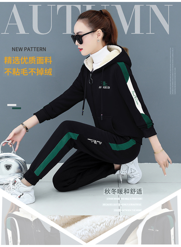 HT-1255休闲时尚显瘦加绒两件套运动套装