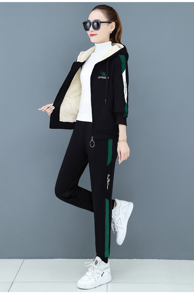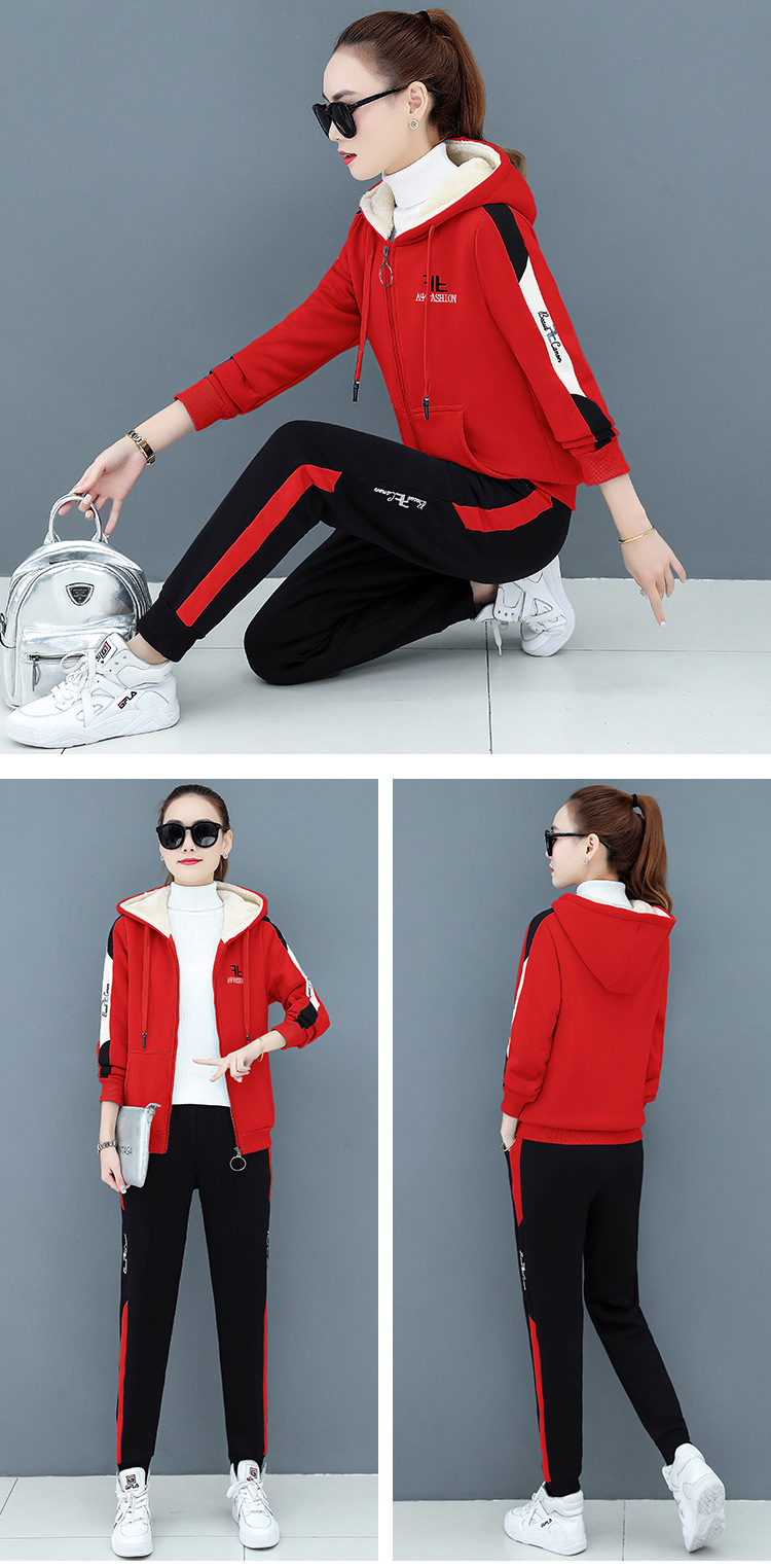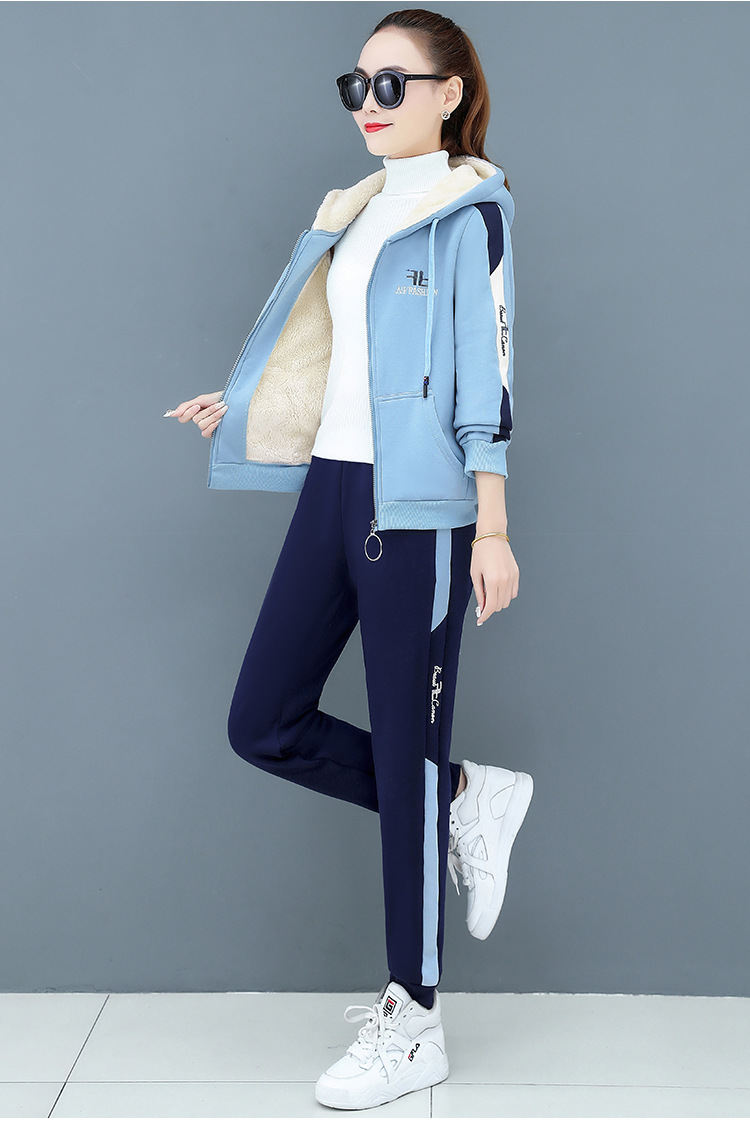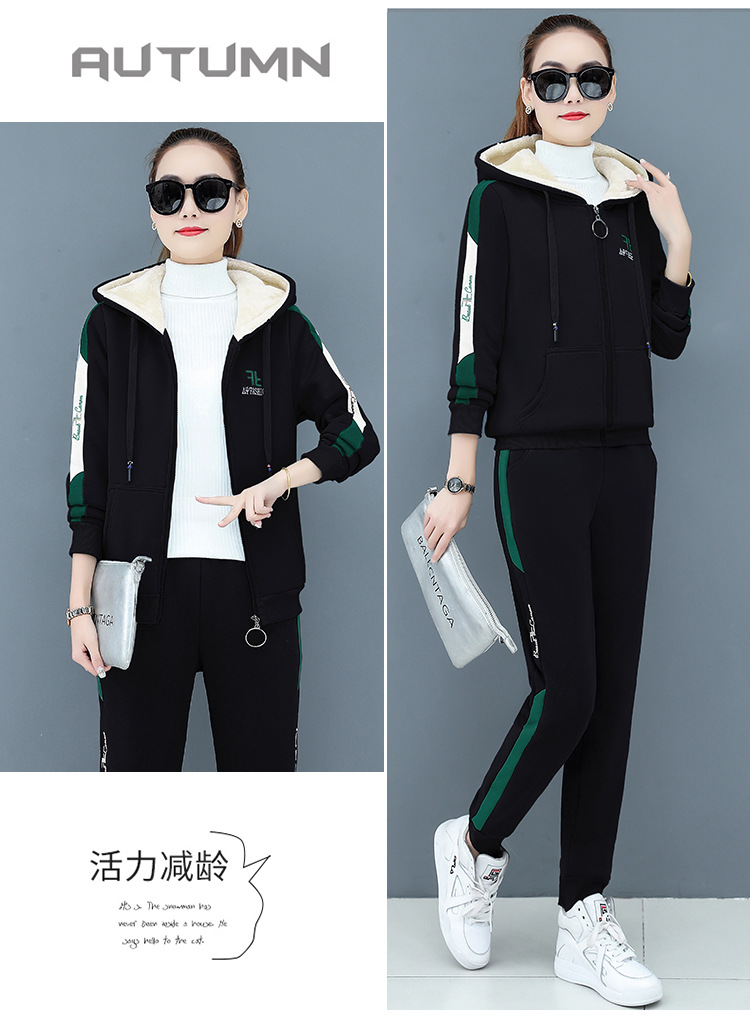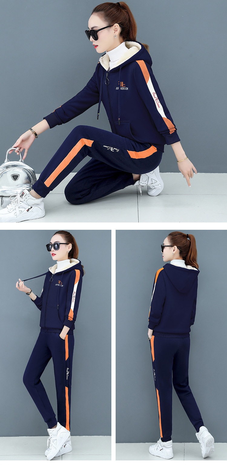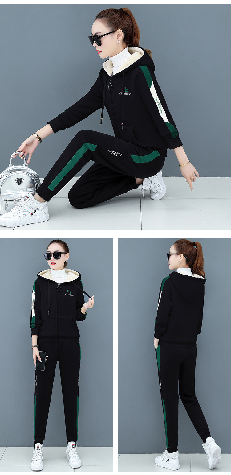 HT-1255休闲时尚显瘦加绒两件套运动套装