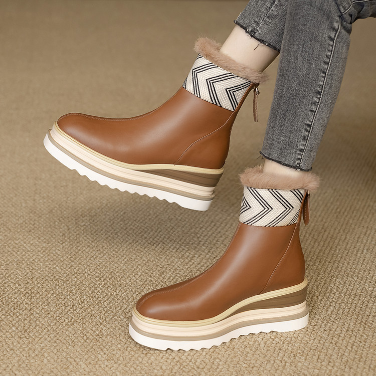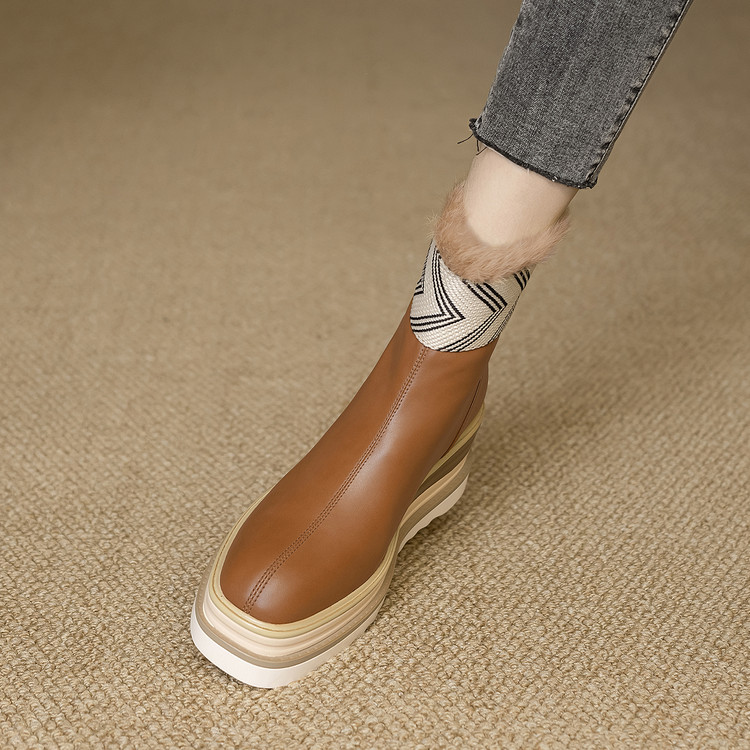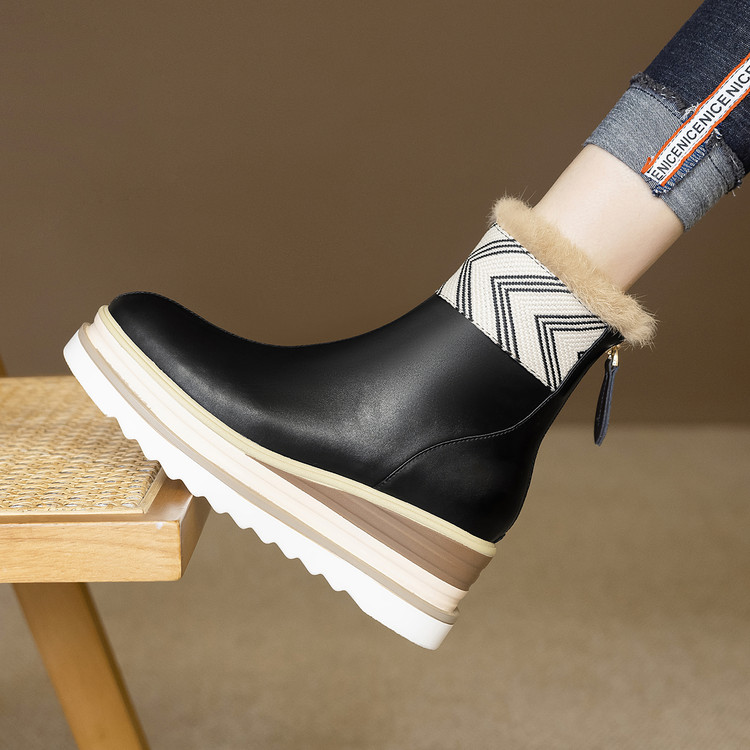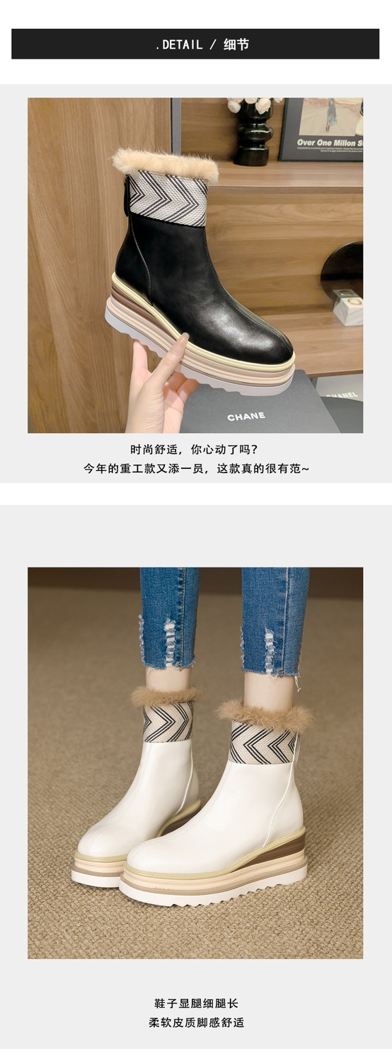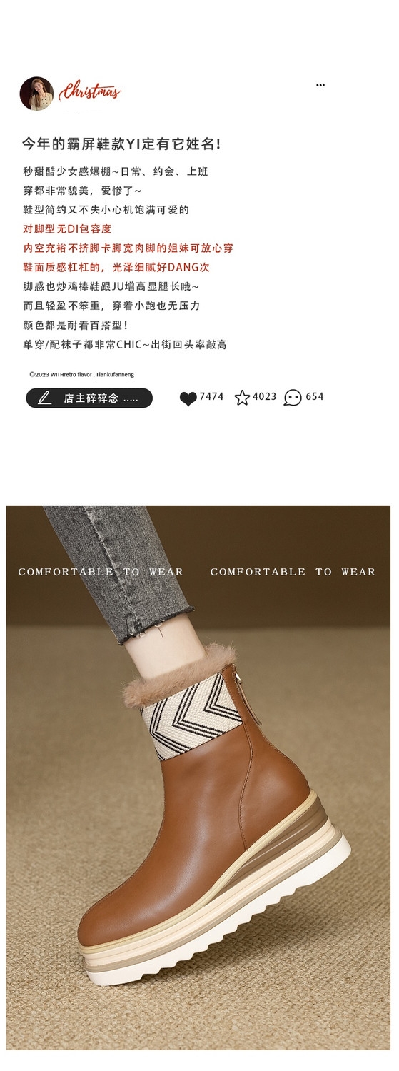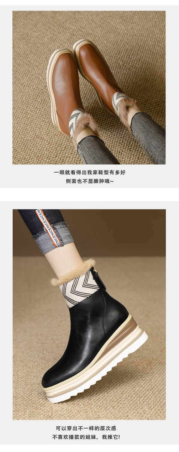 【预售5天】厚底马丁靴女坡跟高跟切尔西短靴秋冬真皮英伦加绒女靴ZMXY&ZM2567-1